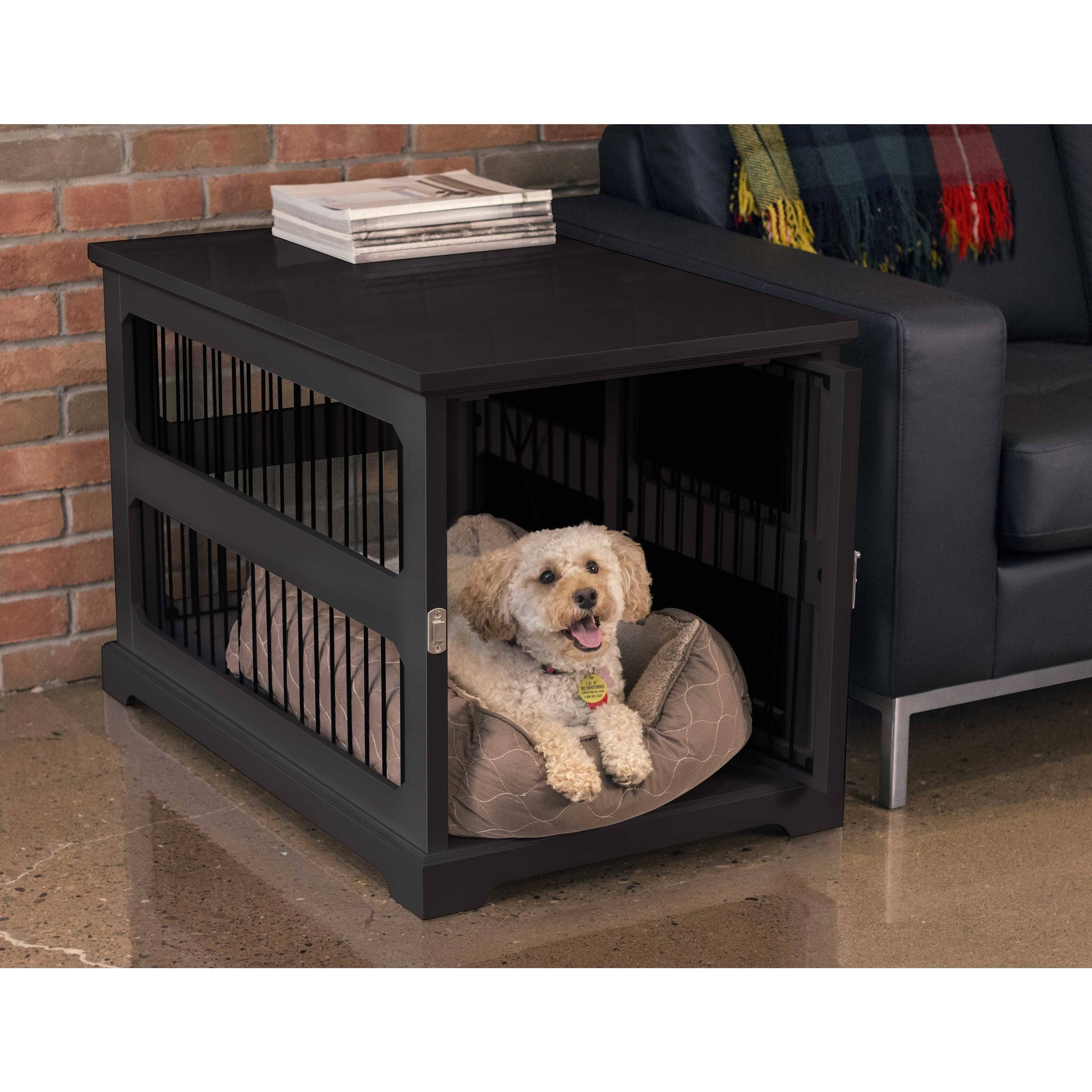 Merry Product Black Wood Slide Aside Dog Crate and Kennel End Table - Megean