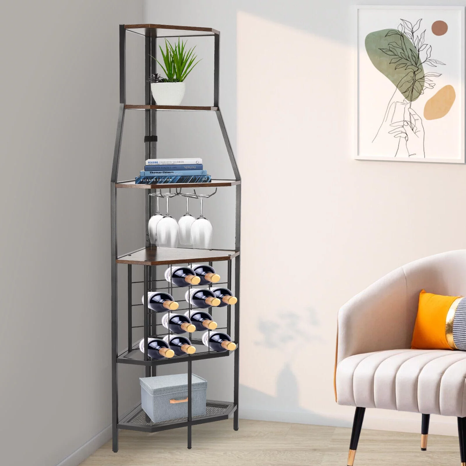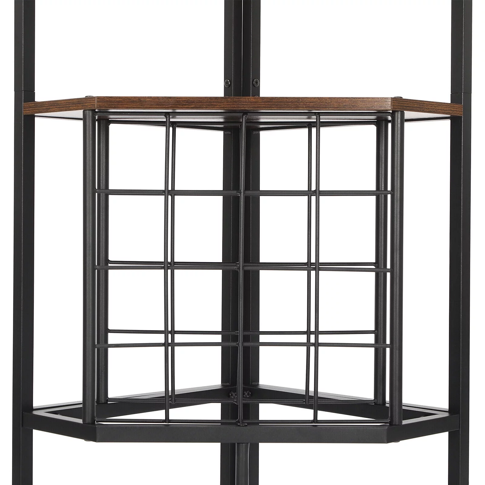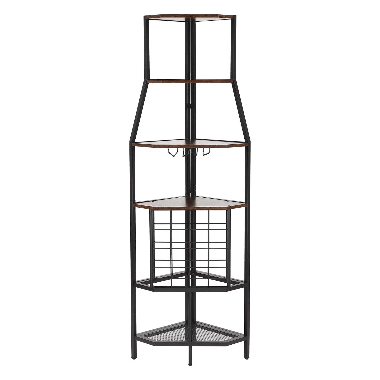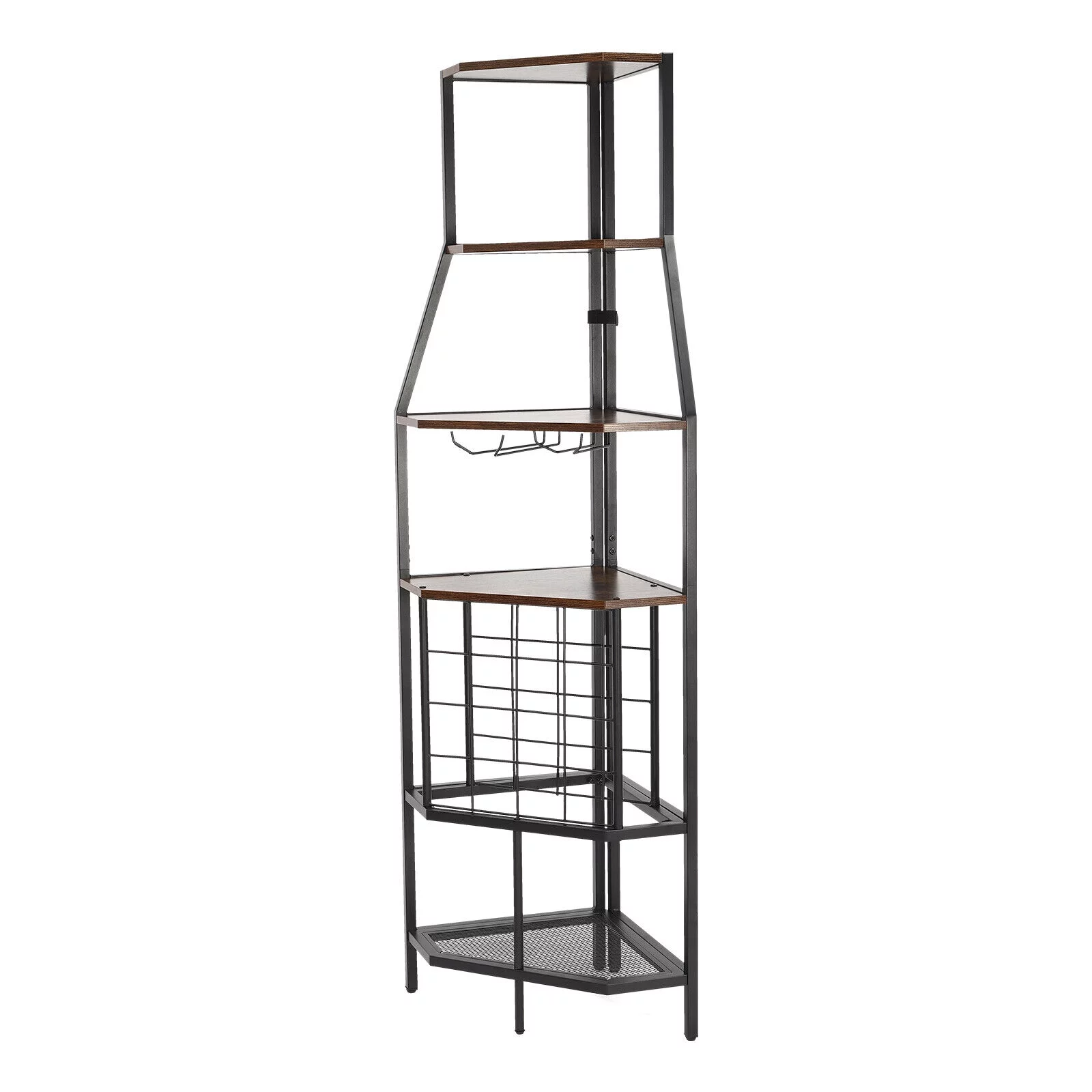 5-Tier Corner Wine Rack W/Glass Holder+Storage Shelf Industrial Corner Bar Shelf Triangle Corner Shelf (Brown/Gray) - Curated Treasures Market