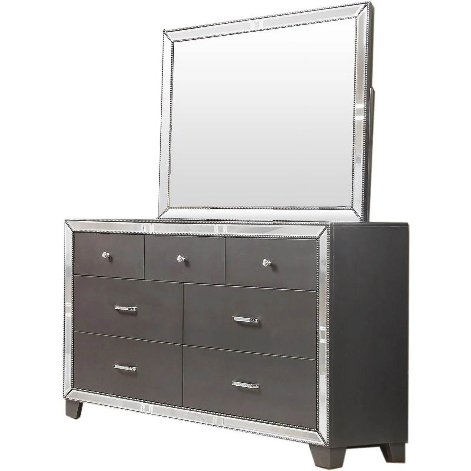 Pemberly Row Modern Transitional Wood Dresser and Mirror in Silver