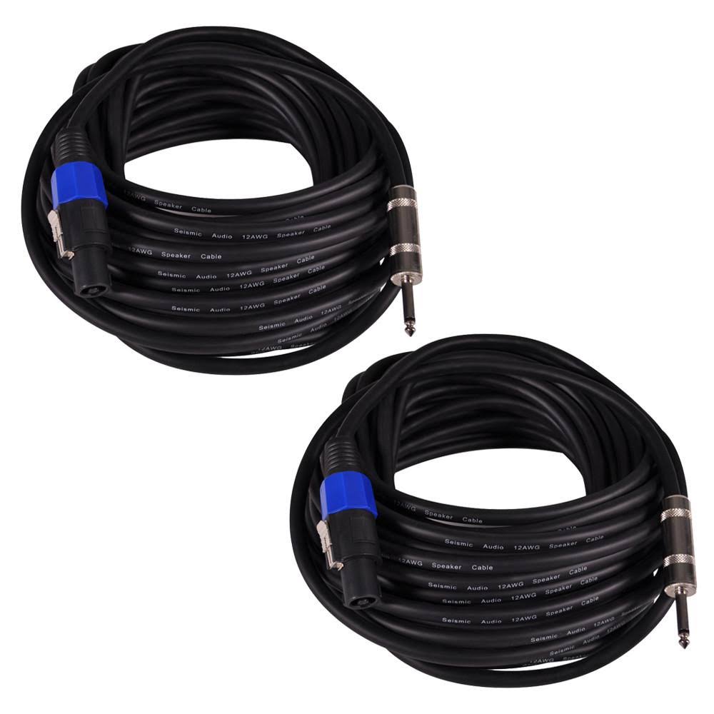 Seismic Audio Pair of 50 Foot 12 Gauge Speakon to 1/4 inch Pro Audio Speaker Cables - 50' Black - SASPT12-50-2Pack - Megean