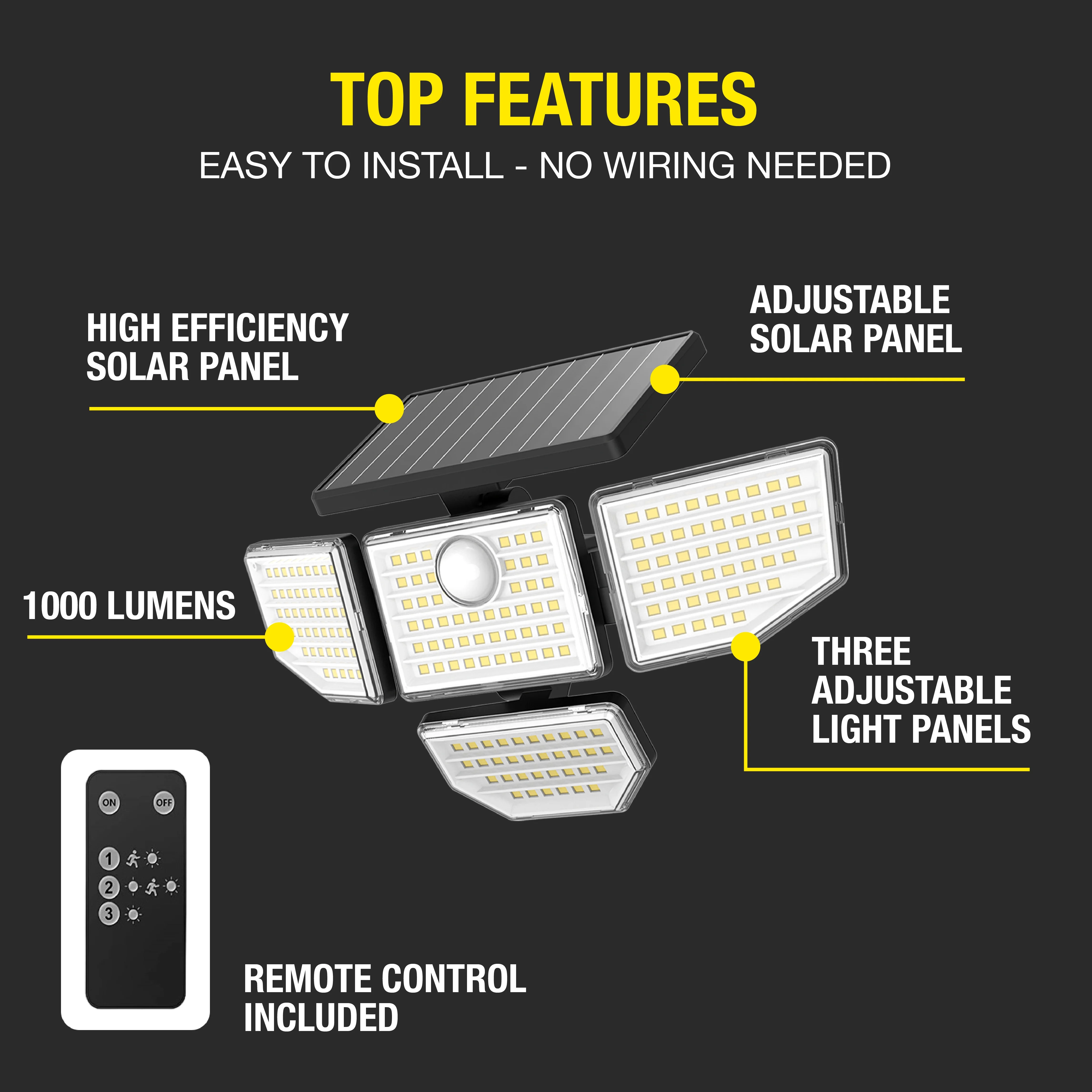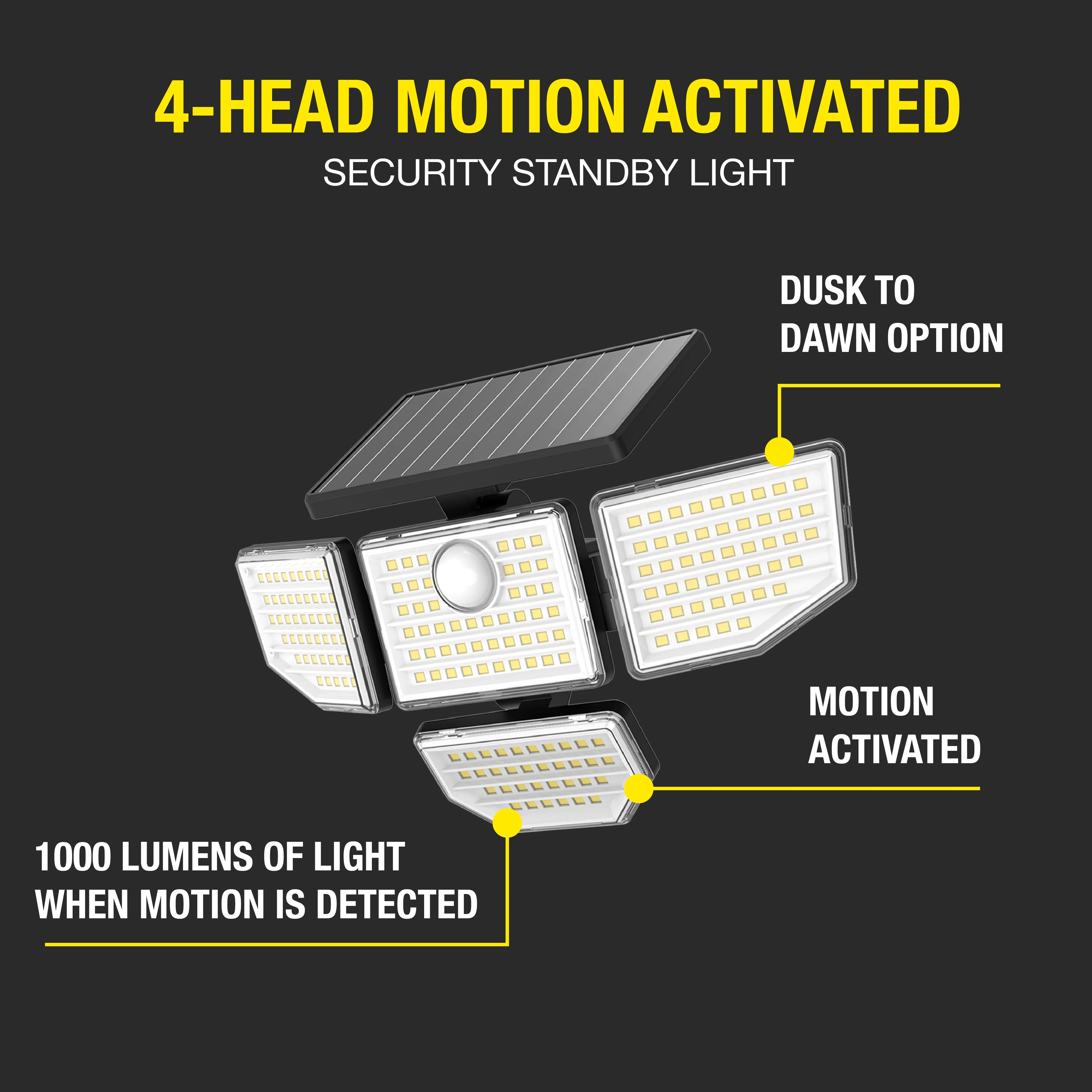 Hyper Tough Solar Motion 4-Head Adjustable LED Security Light with Remote Control, 1000 LM, 2-Pack
