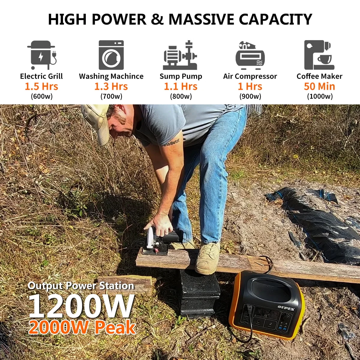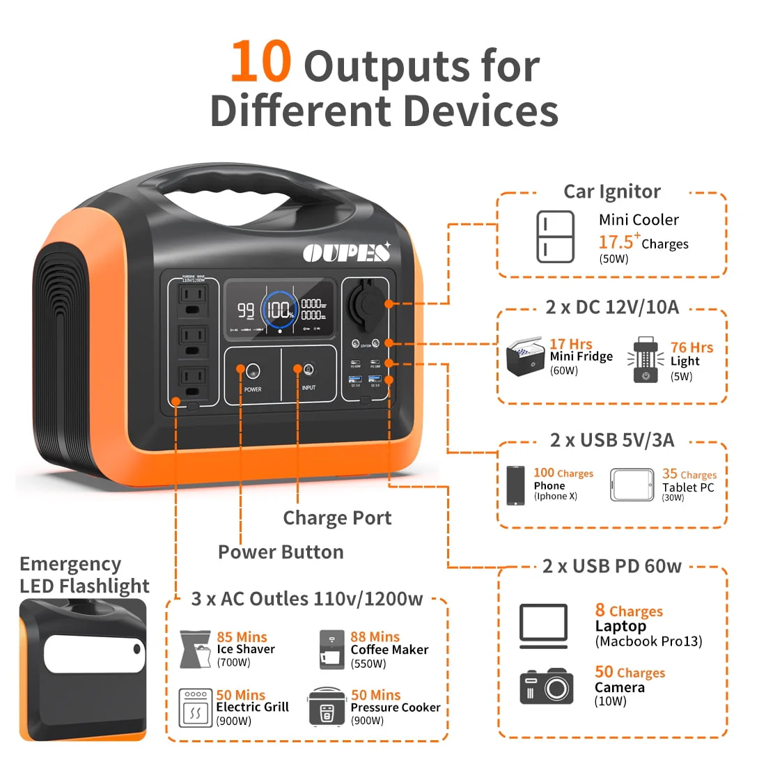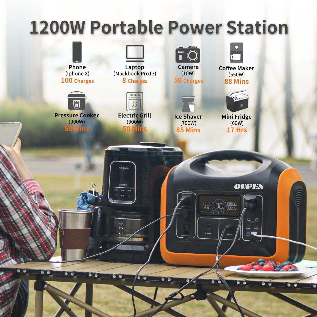 OUPES 1200W Portable Power Station, 992Wh LiFePO4 Solar Generator, Battery Powered Backup for Home Use Camping Outdoors Travel