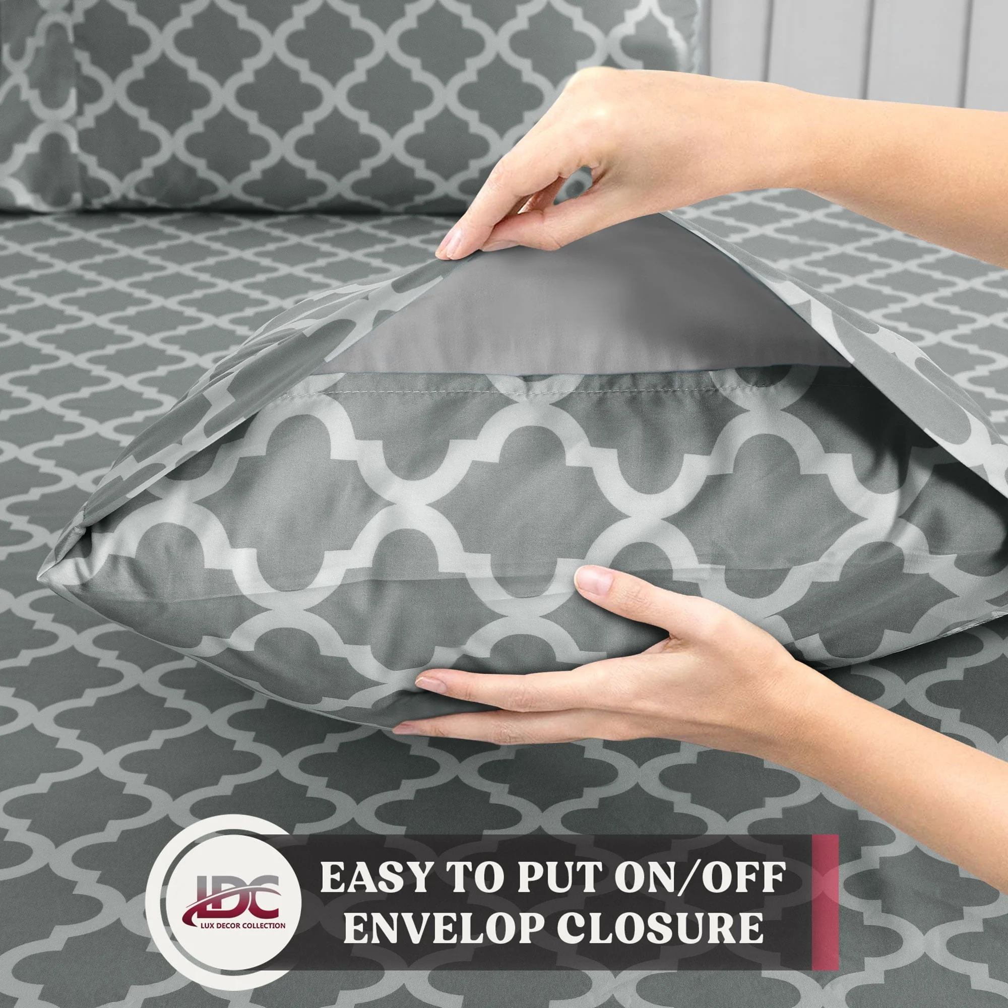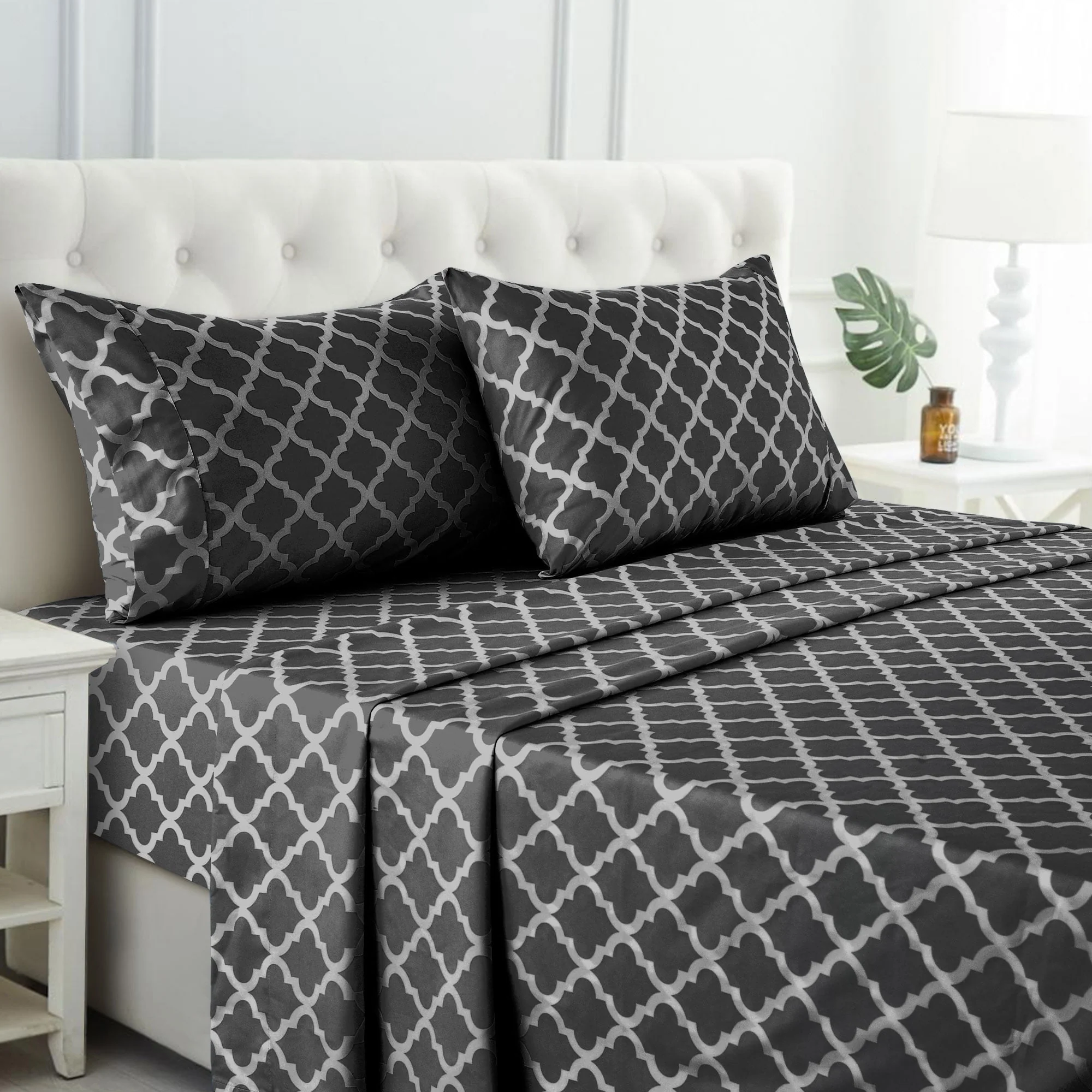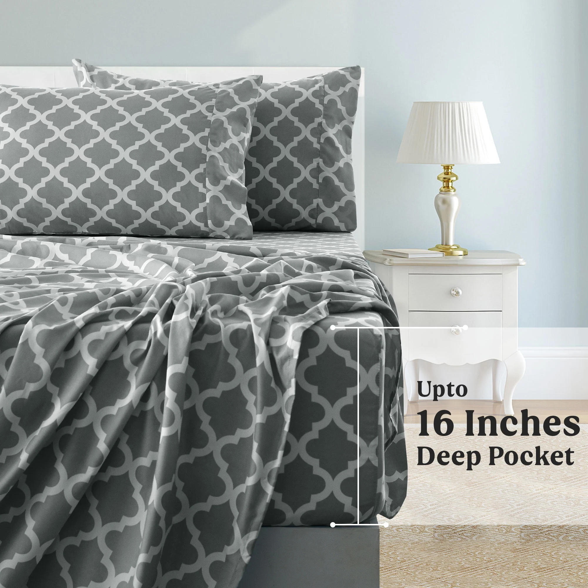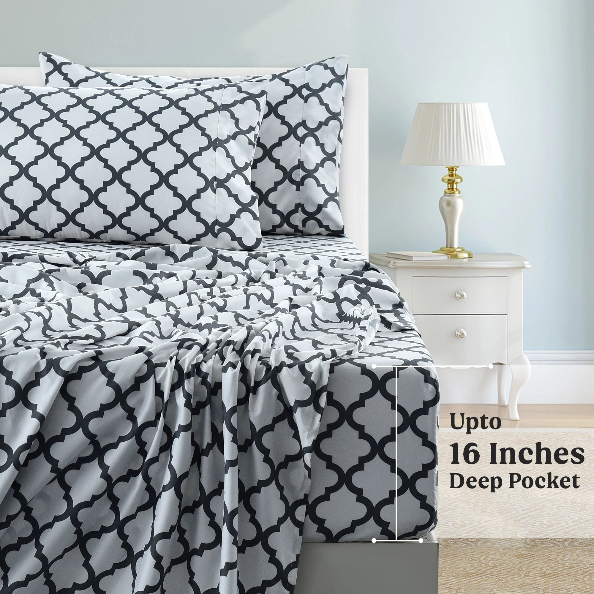 Lux Decor Collection Queen Size Bed Sheets Set, Luxury 4 Piece Microfiber Deep Pocket Fitted Sheet, Flat Sheet & Pillowcases Bedding Sheets Set - Gray White
