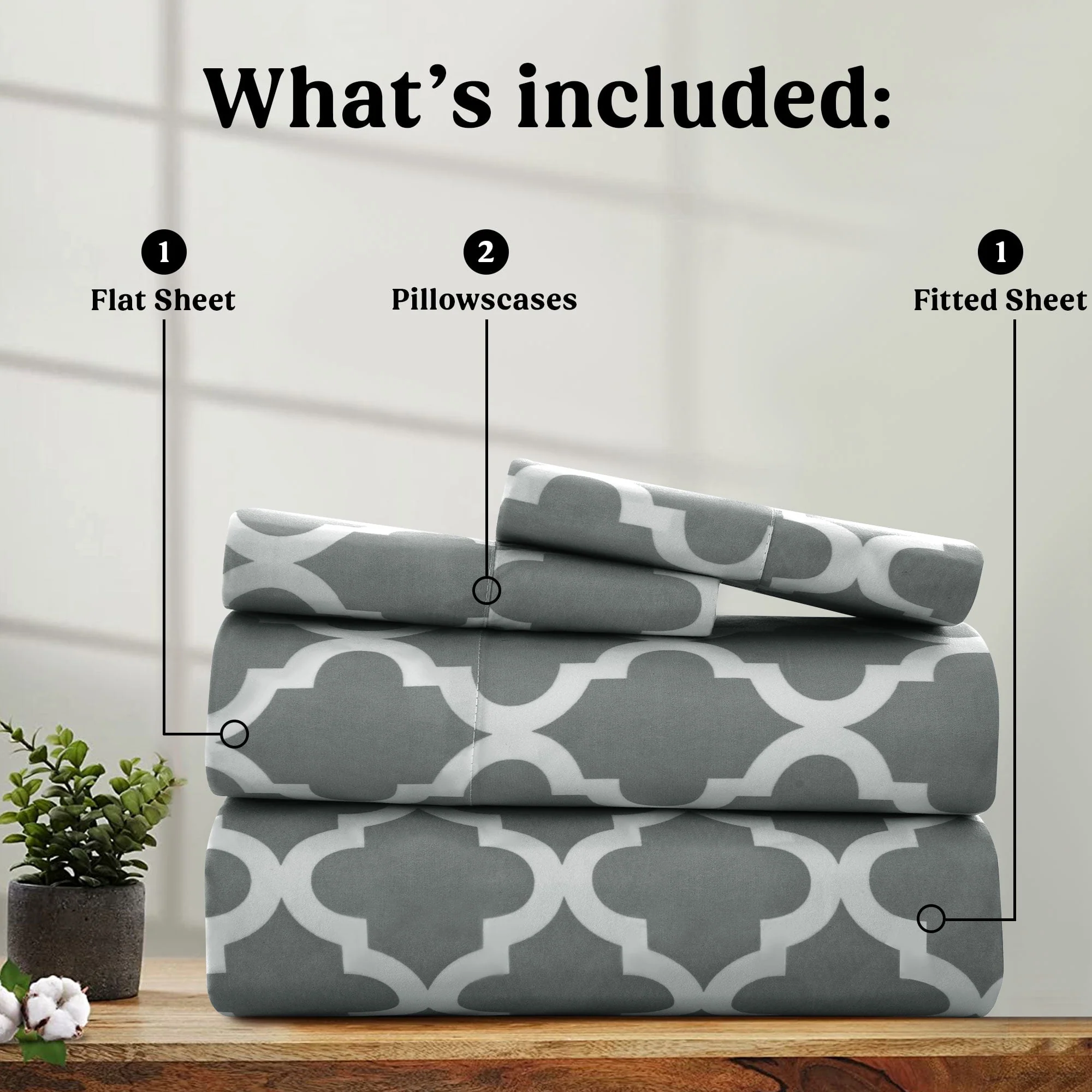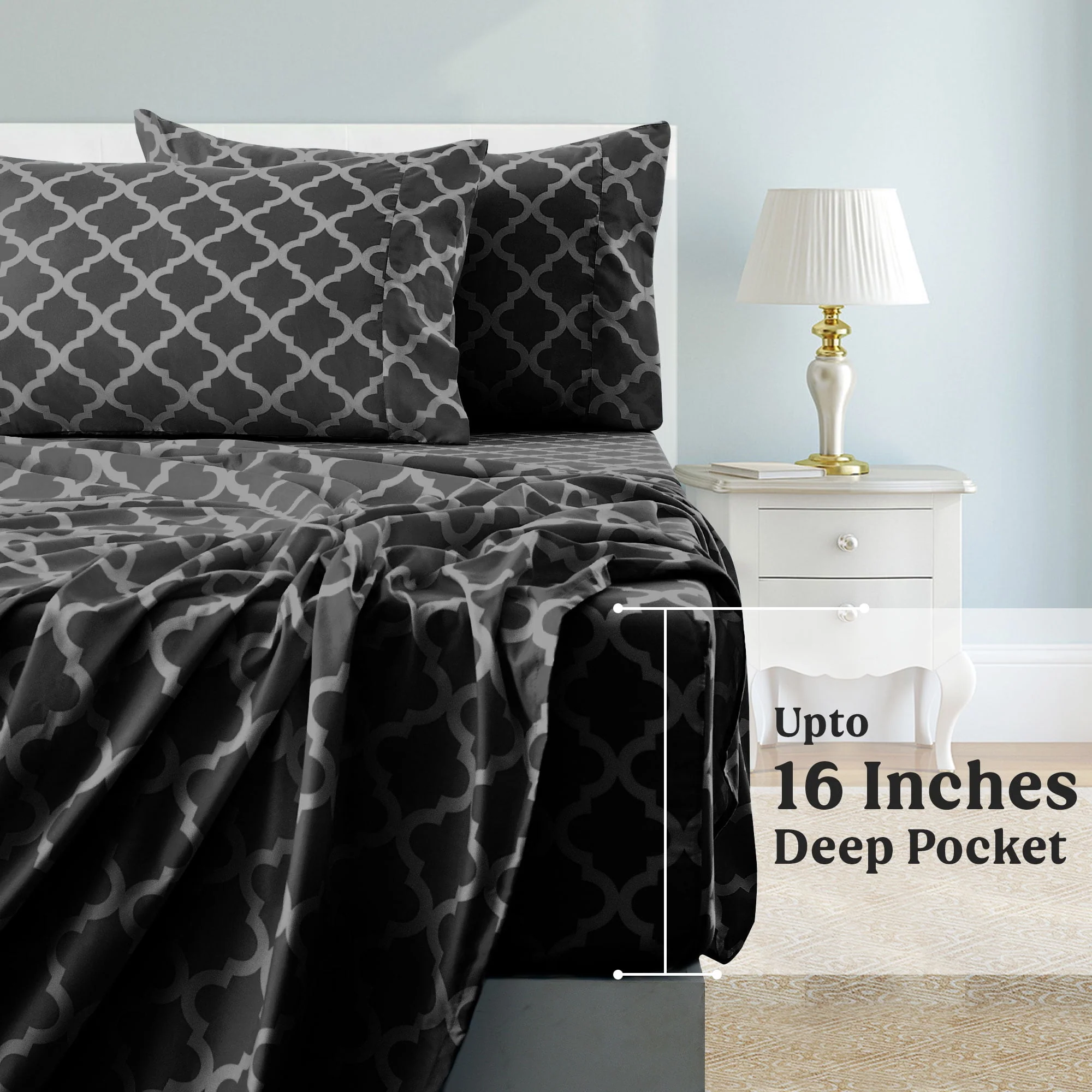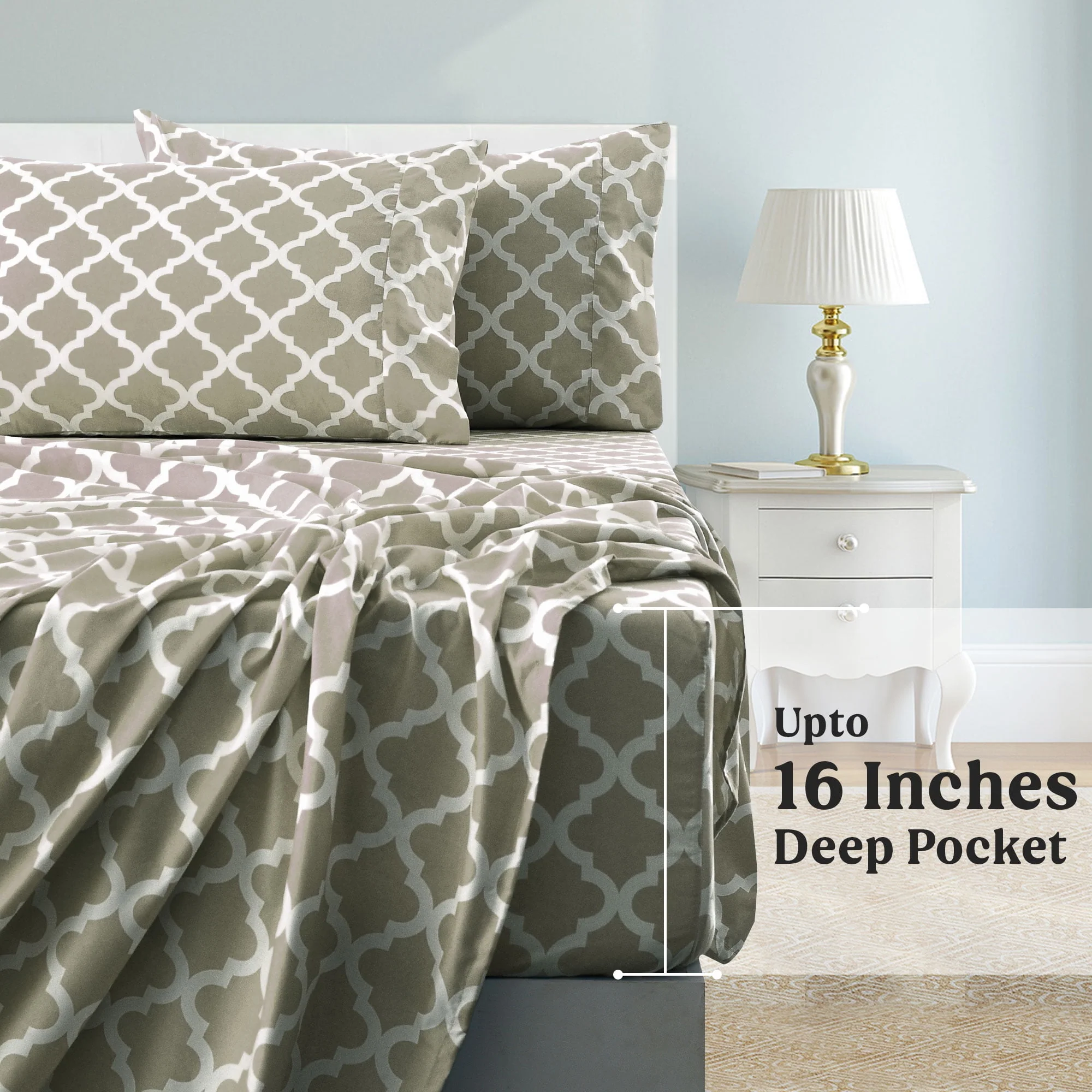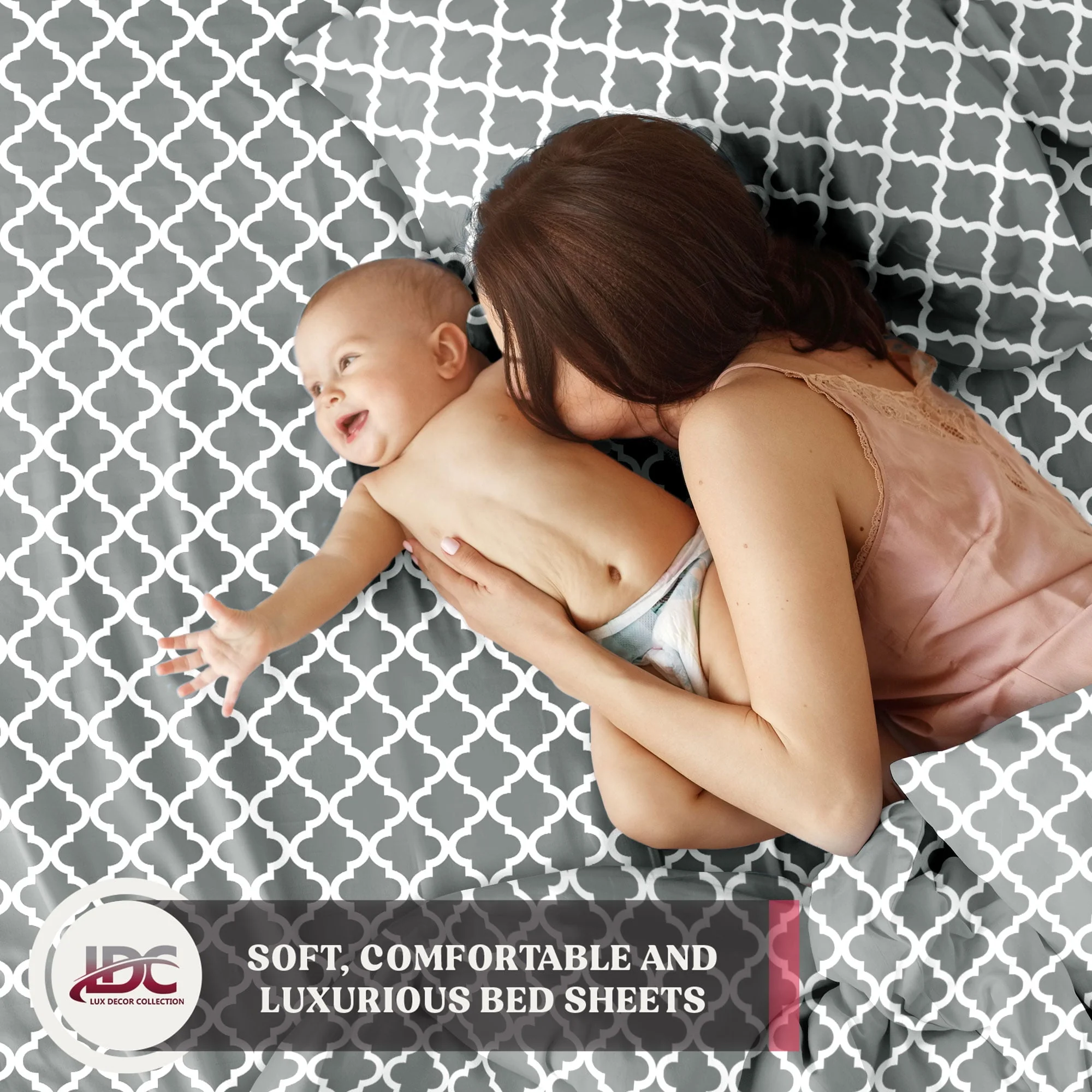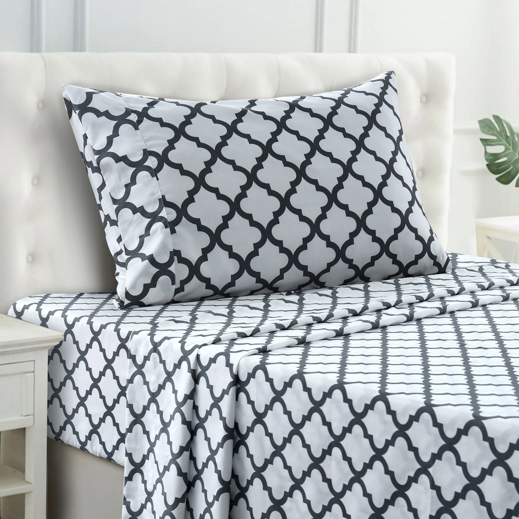 Lux Decor Collection Queen Size Bed Sheets Set, Luxury 4 Piece Microfiber Deep Pocket Fitted Sheet, Flat Sheet & Pillowcases Bedding Sheets Set - Gray White