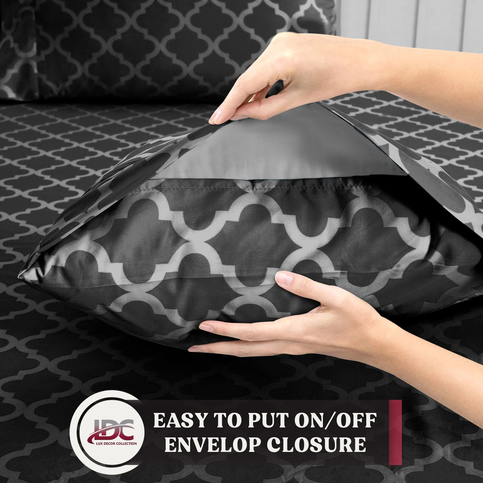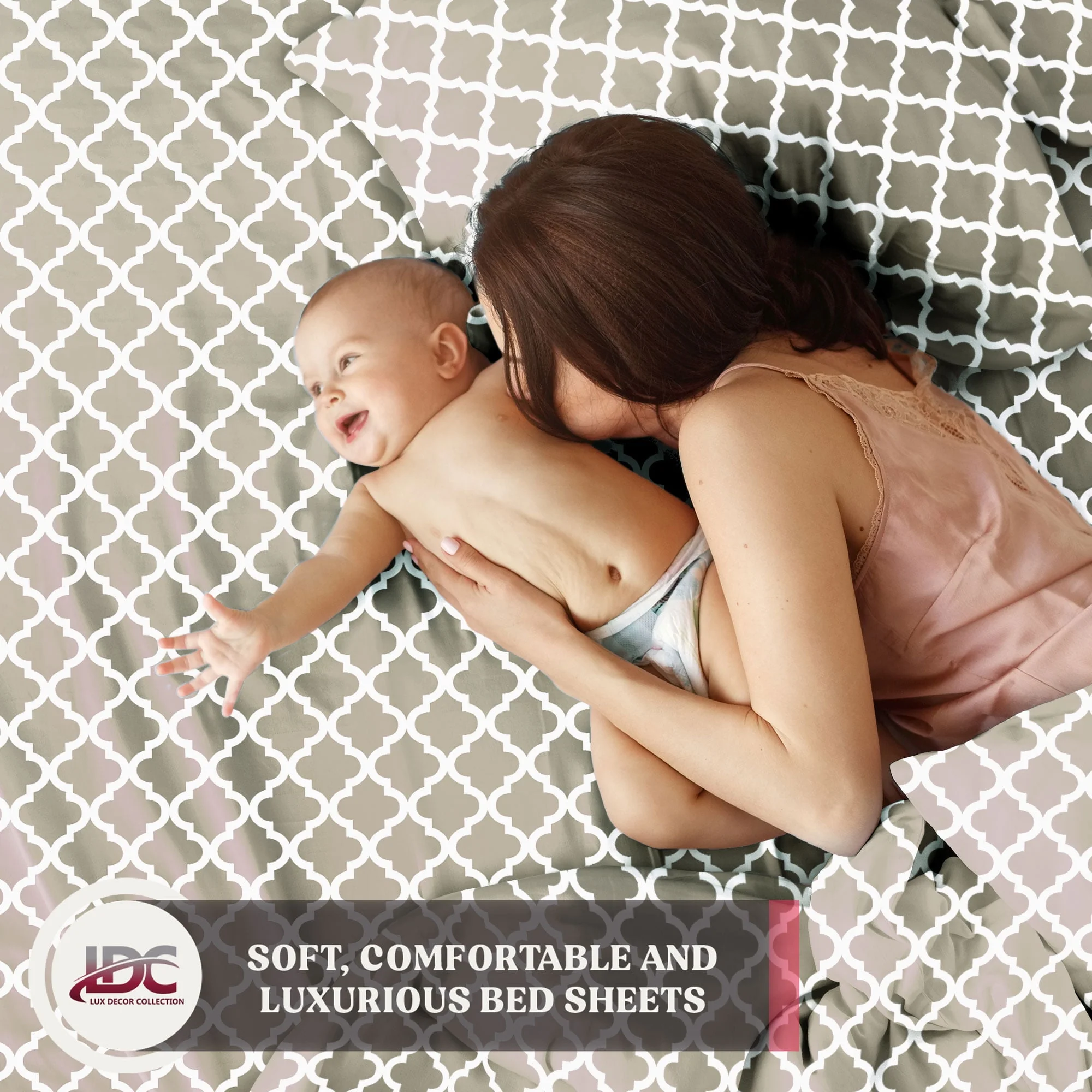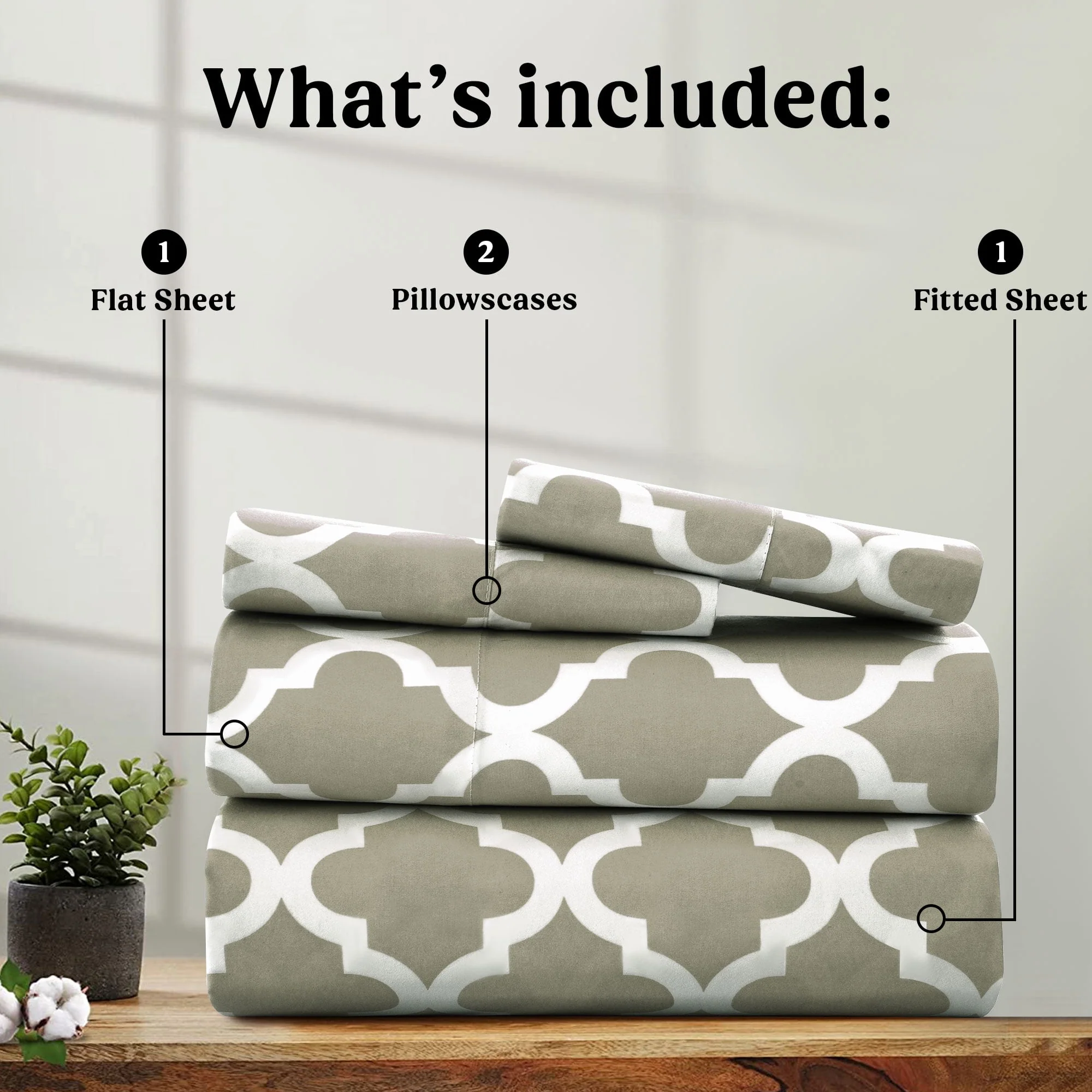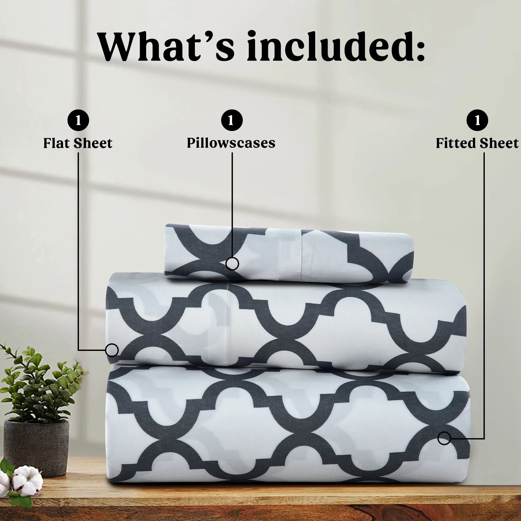 Lux Decor Collection Queen Size Bed Sheets Set, Luxury 4 Piece Microfiber Deep Pocket Fitted Sheet, Flat Sheet & Pillowcases Bedding Sheets Set - Gray White