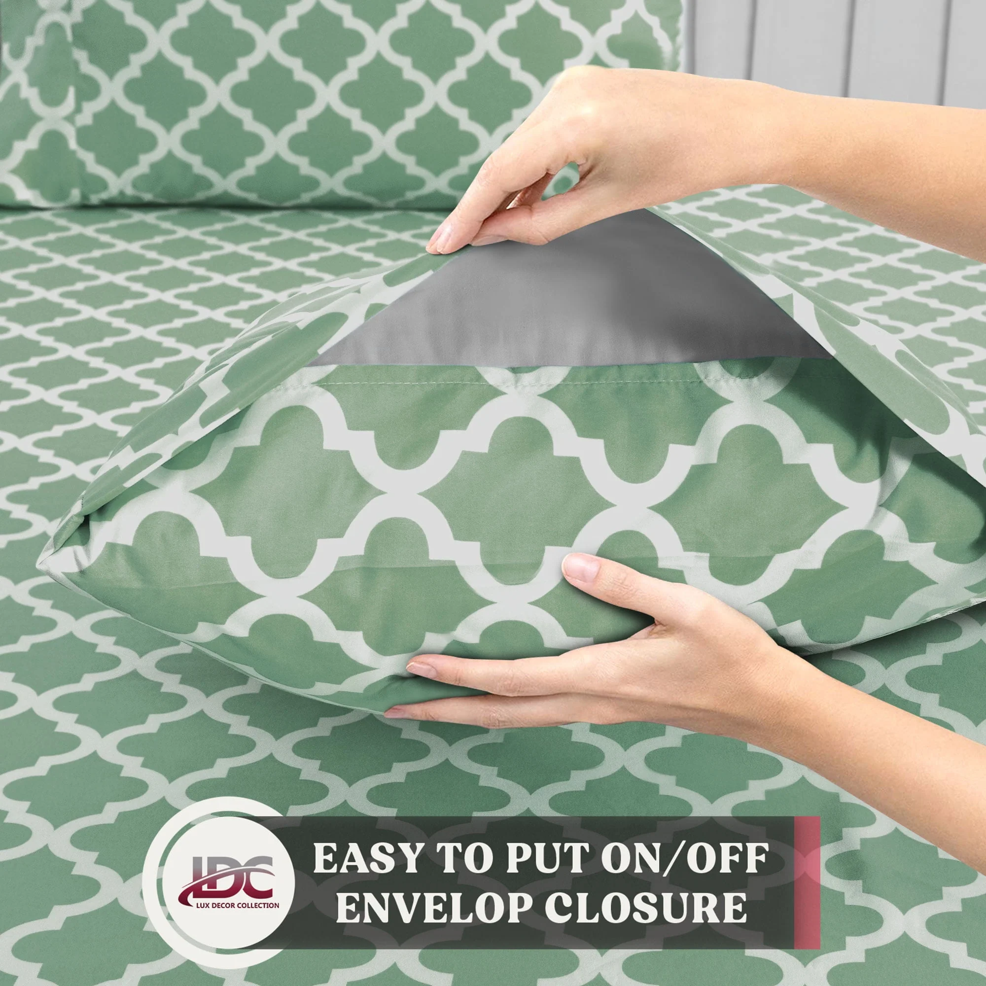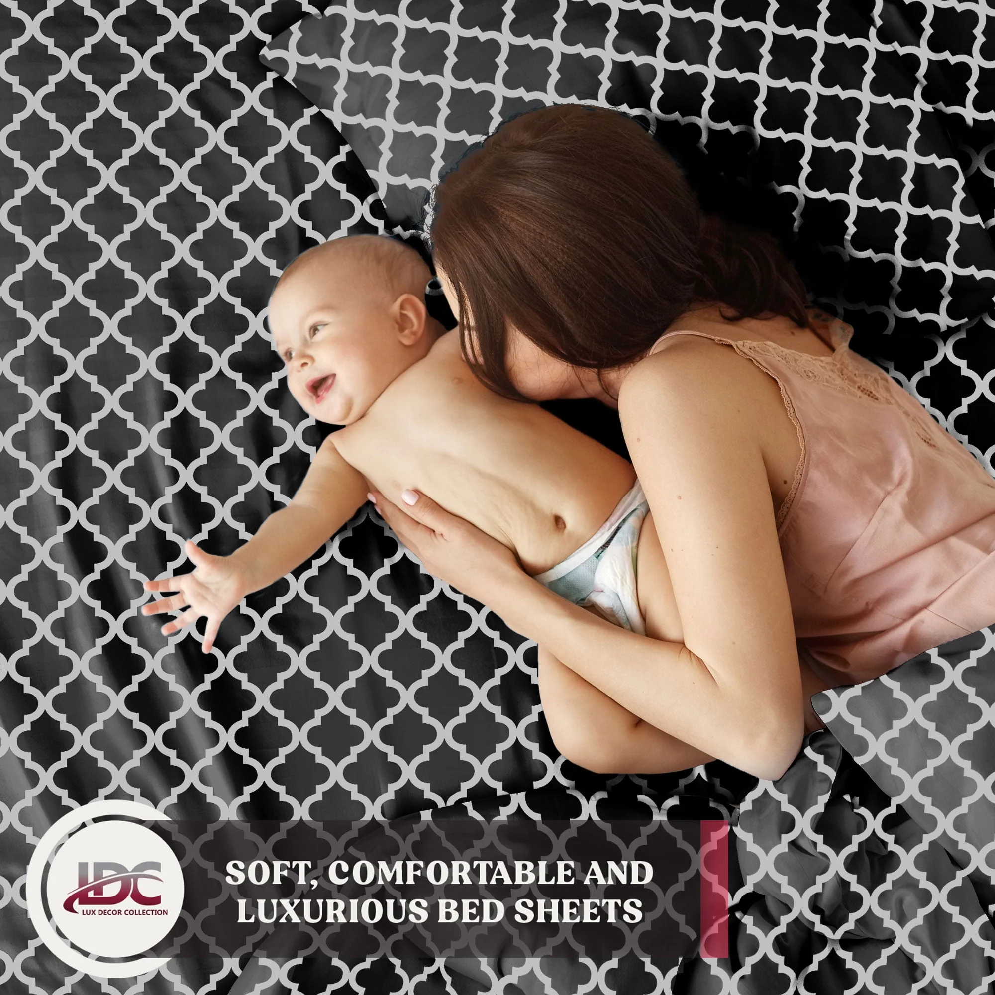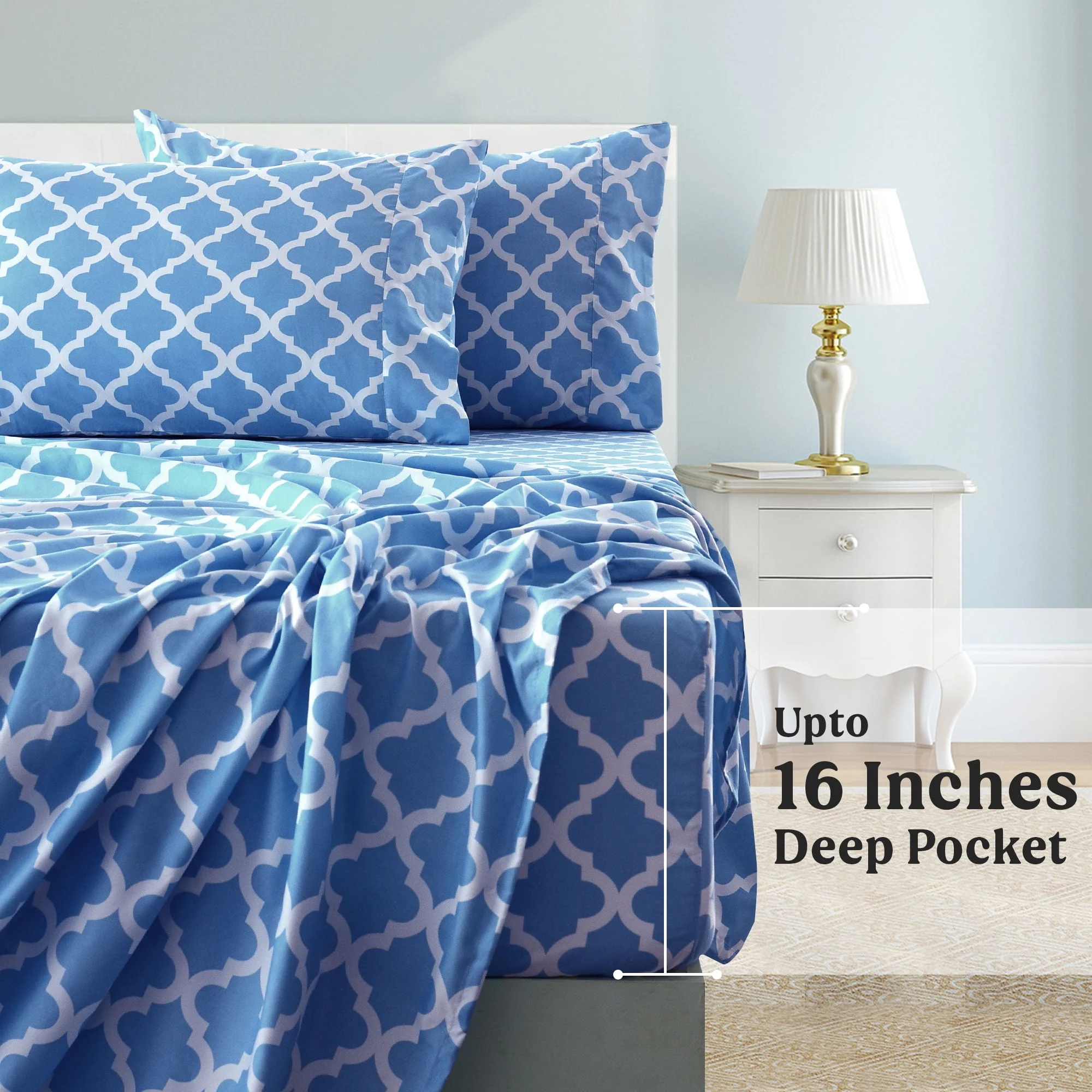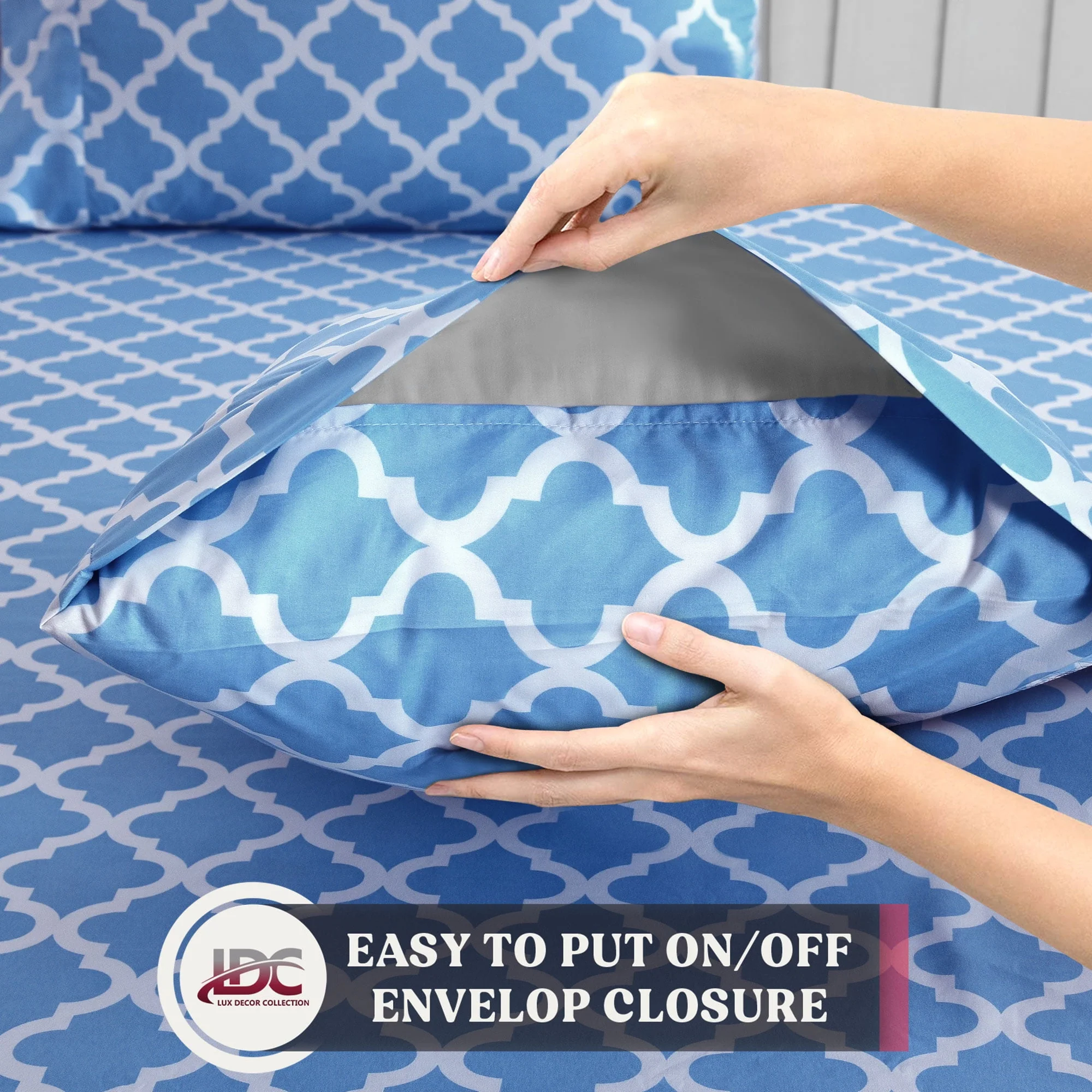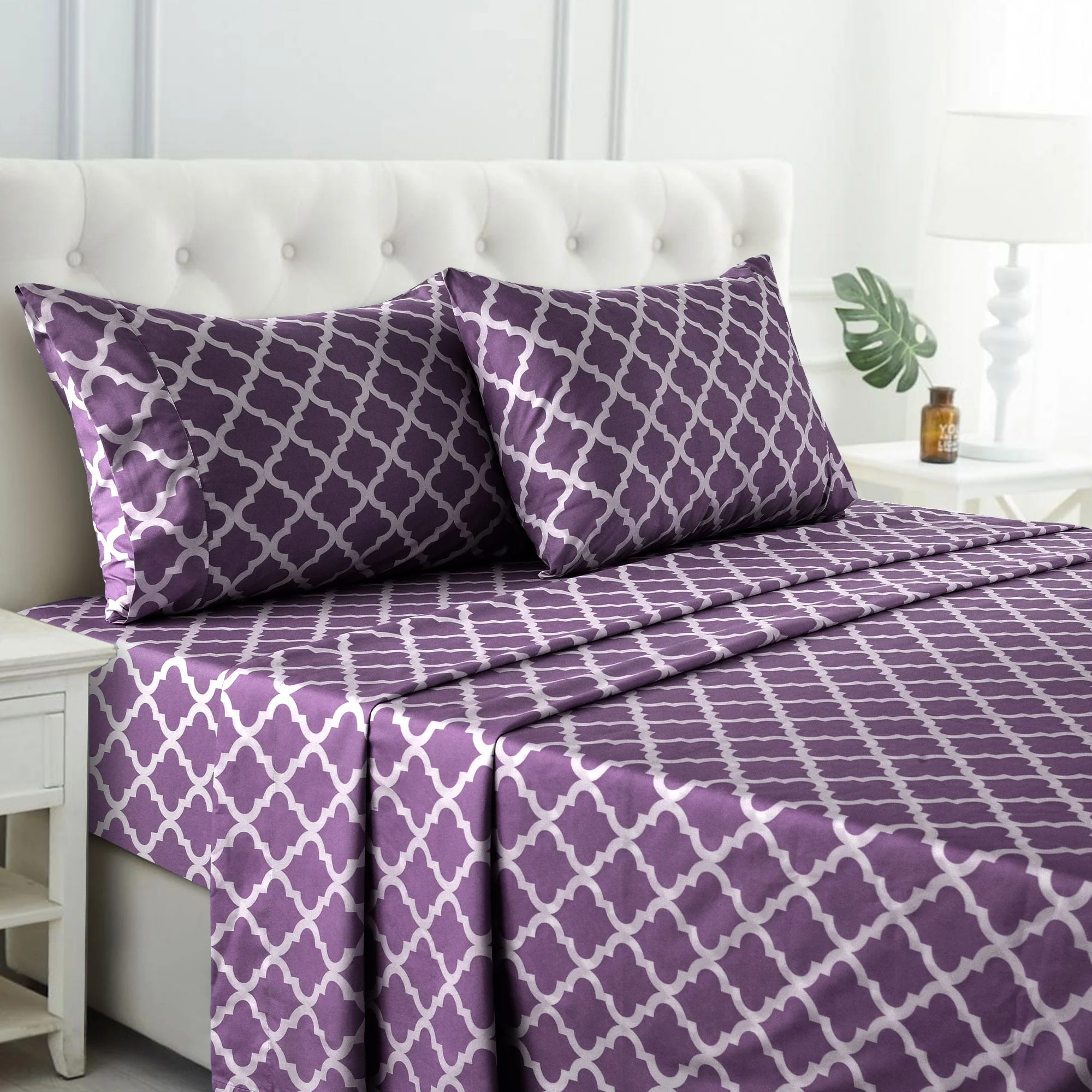 Lux Decor Collection Queen Size Bed Sheets Set, Luxury 4 Piece Microfiber Deep Pocket Fitted Sheet, Flat Sheet & Pillowcases Bedding Sheets Set - Gray White