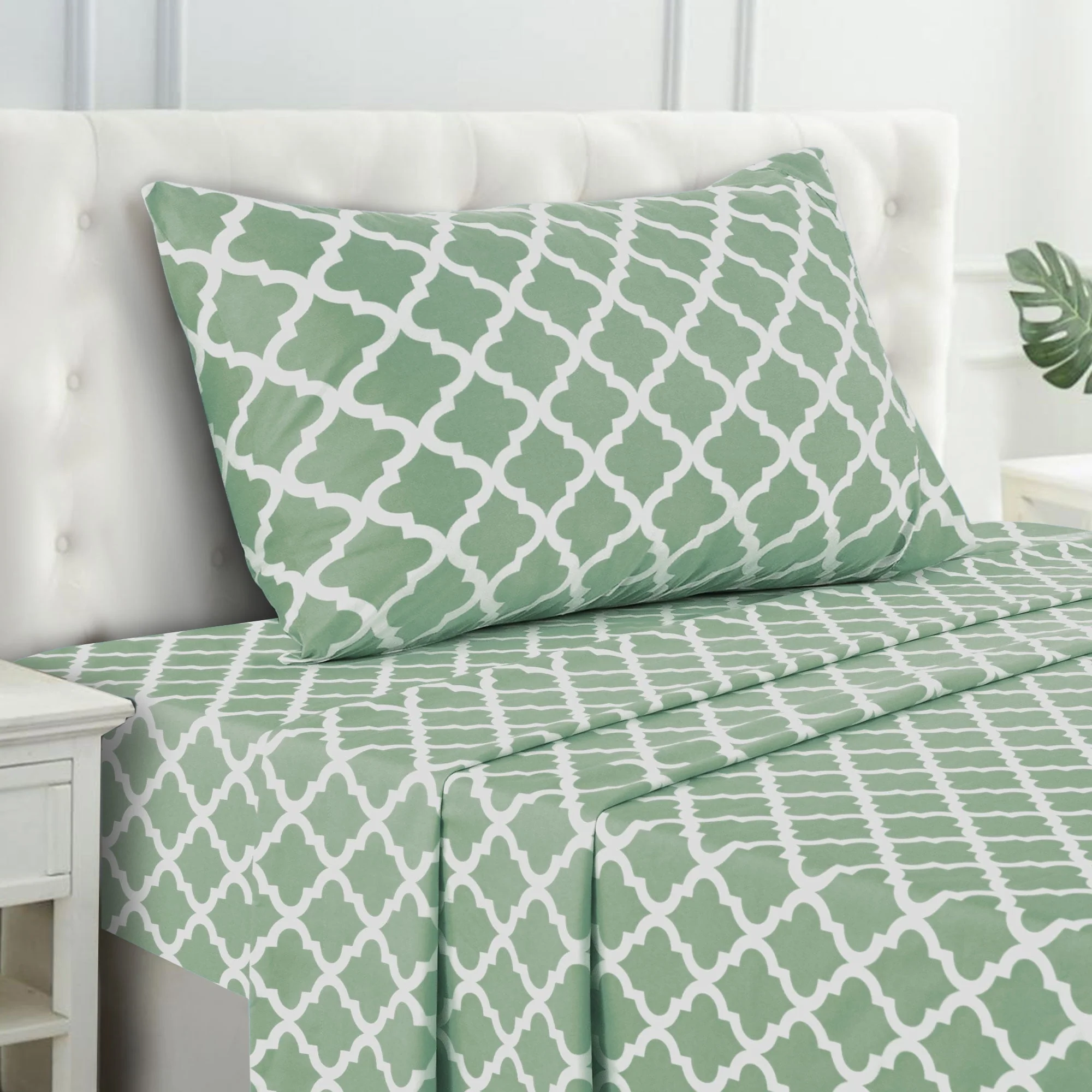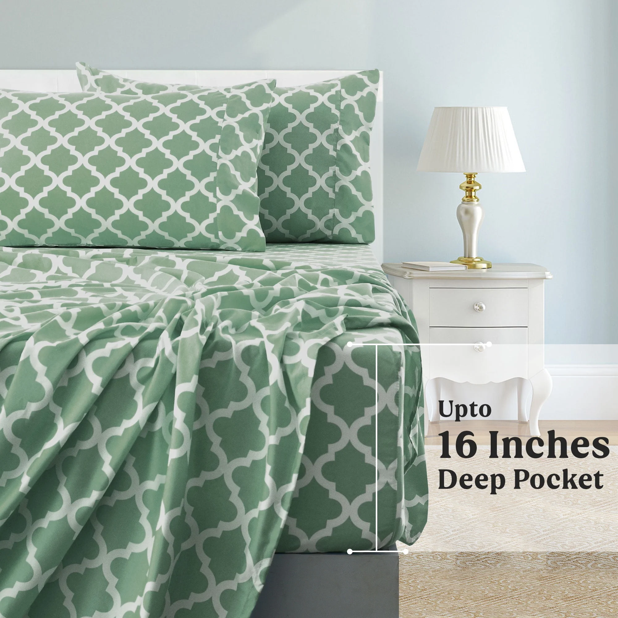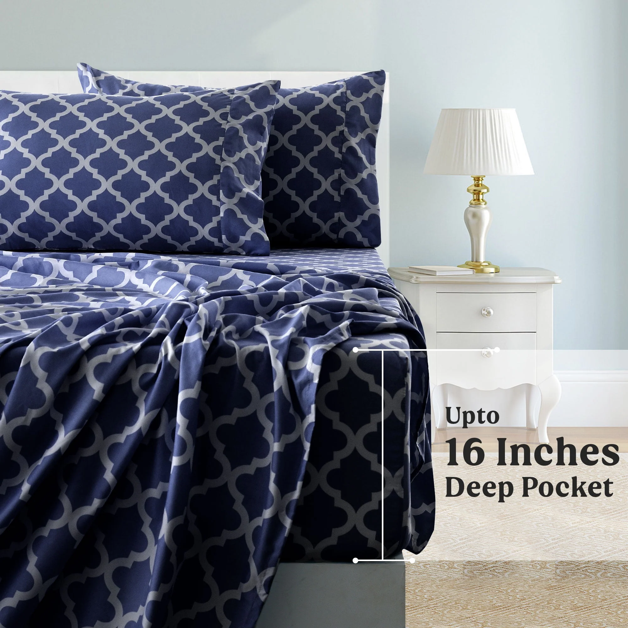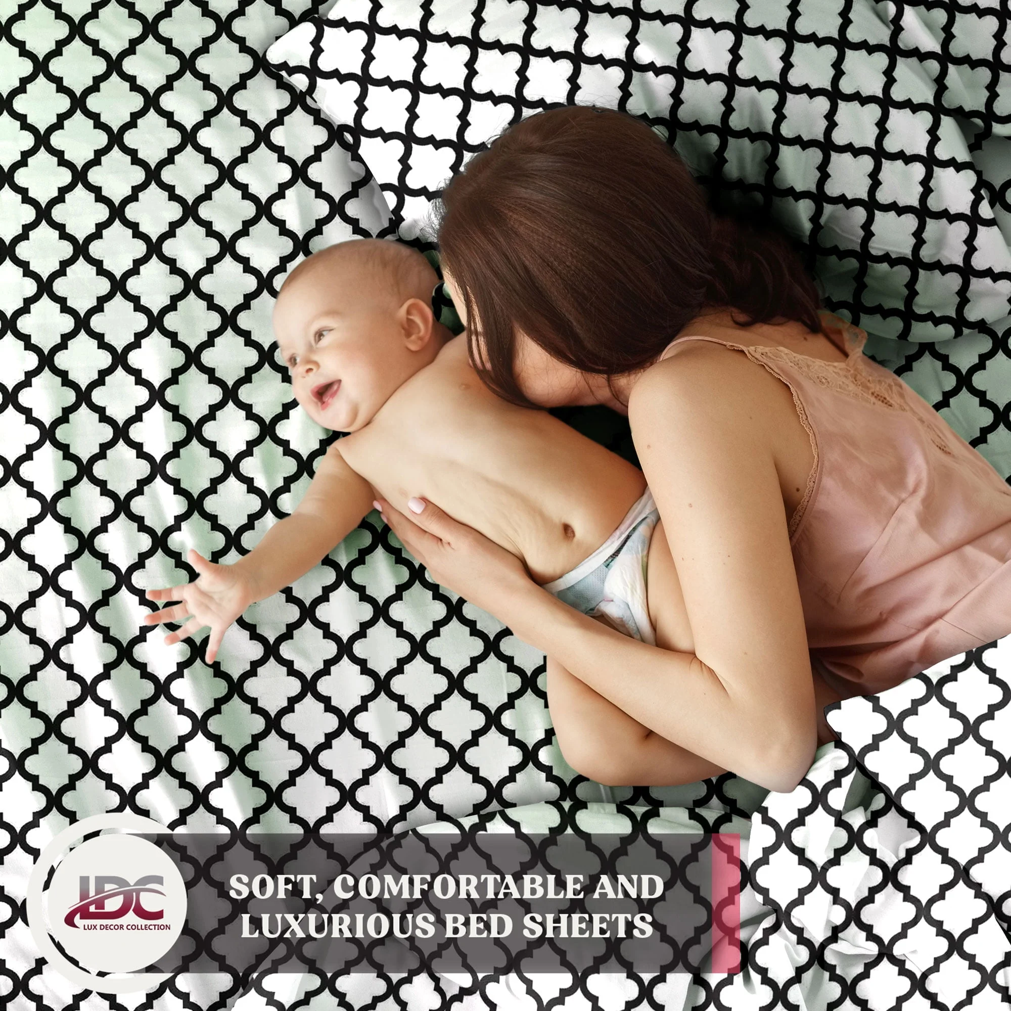 Lux Decor Collection Queen Size Bed Sheets Set, Luxury 4 Piece Microfiber Deep Pocket Fitted Sheet, Flat Sheet & Pillowcases Bedding Sheets Set - Gray White