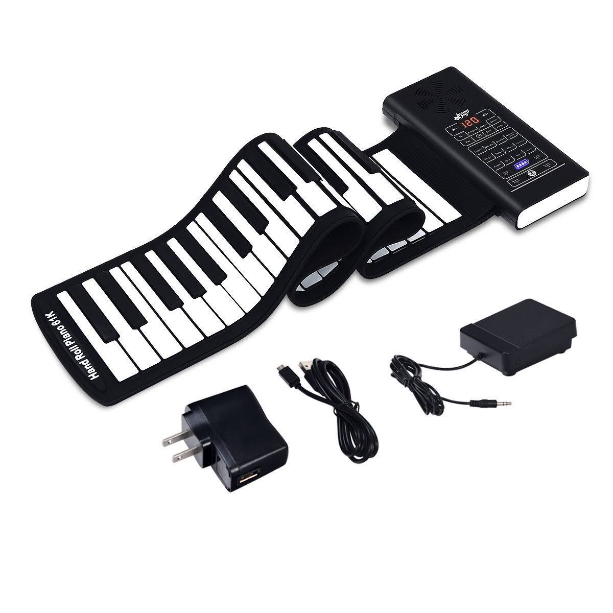 61 Key Electronic Roll Up Silicone Rechargeable Piano Keyboard-Black - Megean