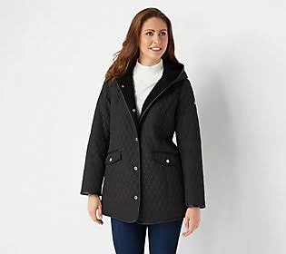 Dennis Basso Quilted Water-Resistant Snap-Front Jacket, Size Medium, Black - Megean
