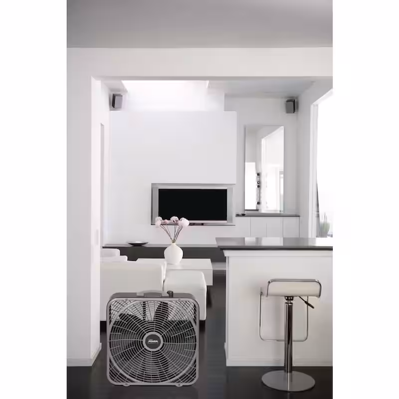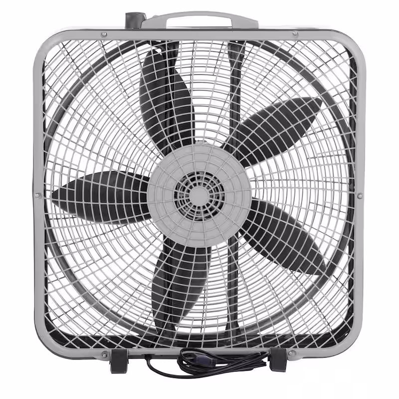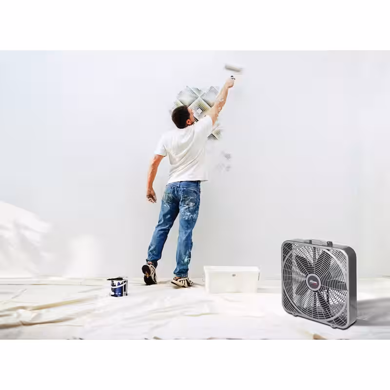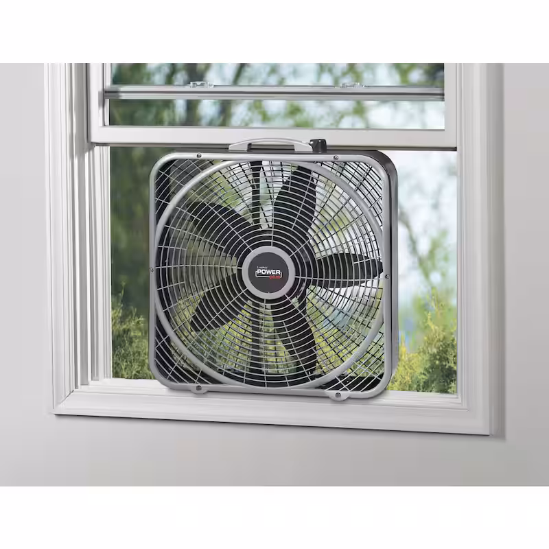 20 in. 3 Speeds Box Fan in Gray with Weather-Shield Design for Window Use, Energy Efficent, Carry Handle, Steel Body