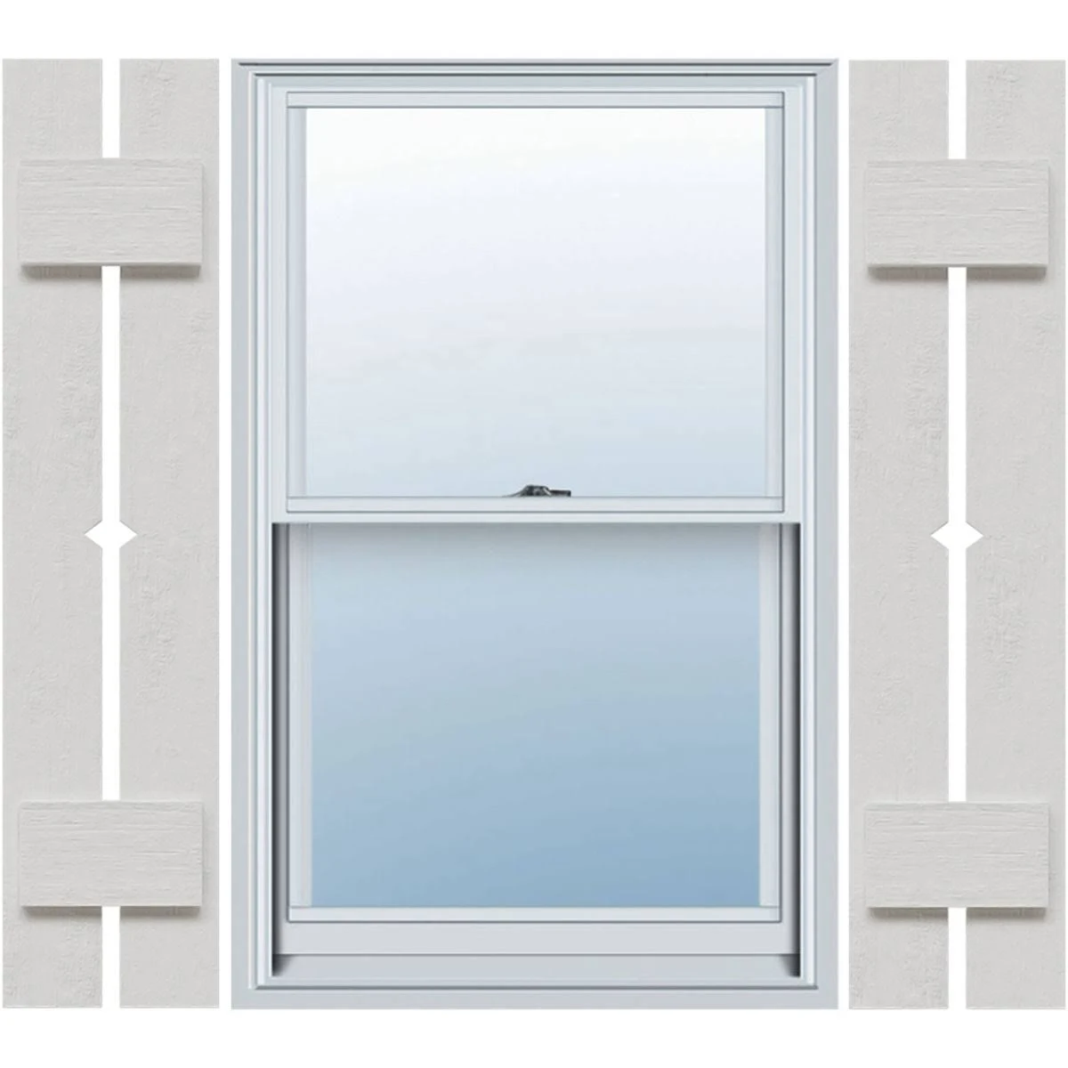 Ekena Millwork FBS06D11X078RUF 11 1/4x22W x 78x22H Rustic Two Board Spaced Board-n-Batten Faux Wood Shutters w/Diamond Cut Outs - Megean