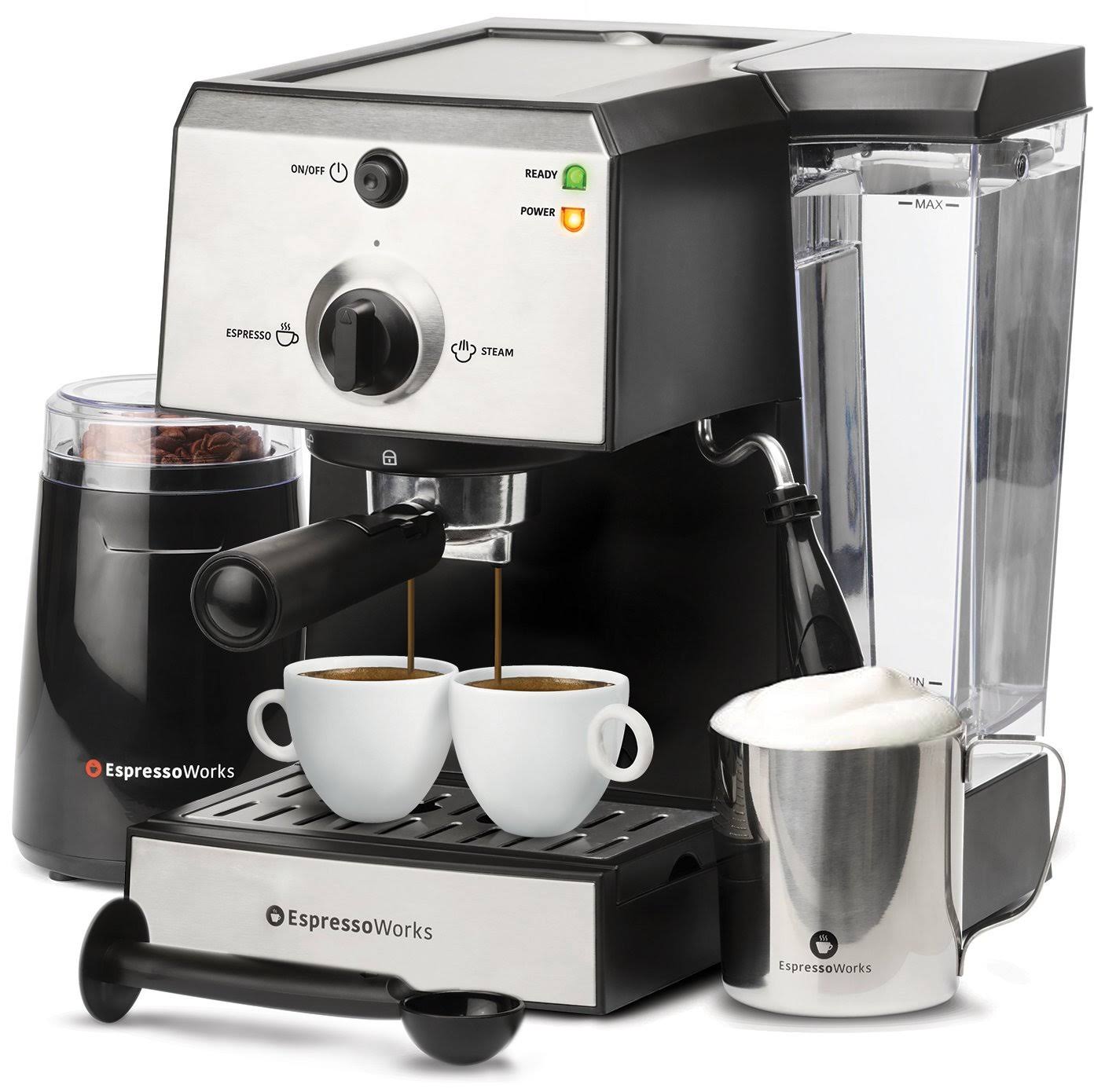 EspressoWorks 7 PC All-in-One Espresso Machine u0026 Cappuccino Maker Barista Bundle Set w/ Built-in Steamer u0026 Frother - Megean