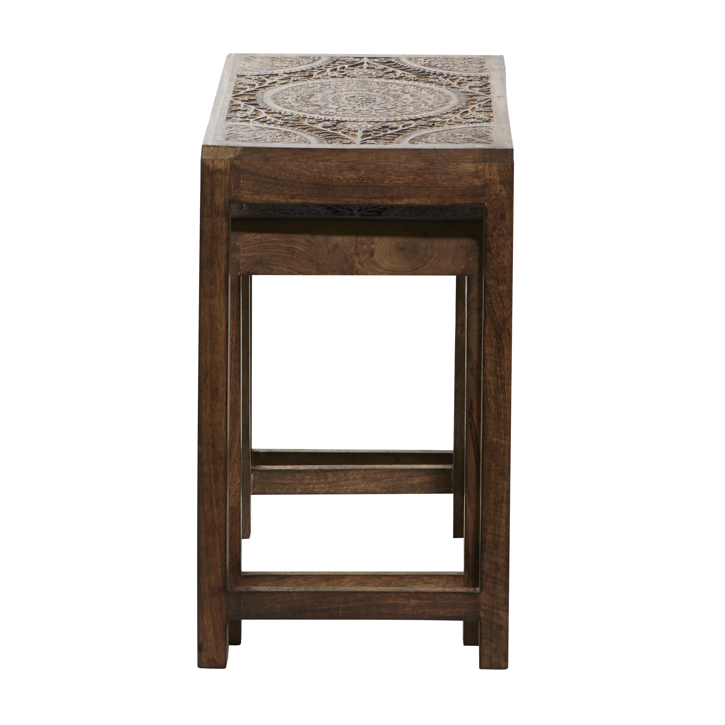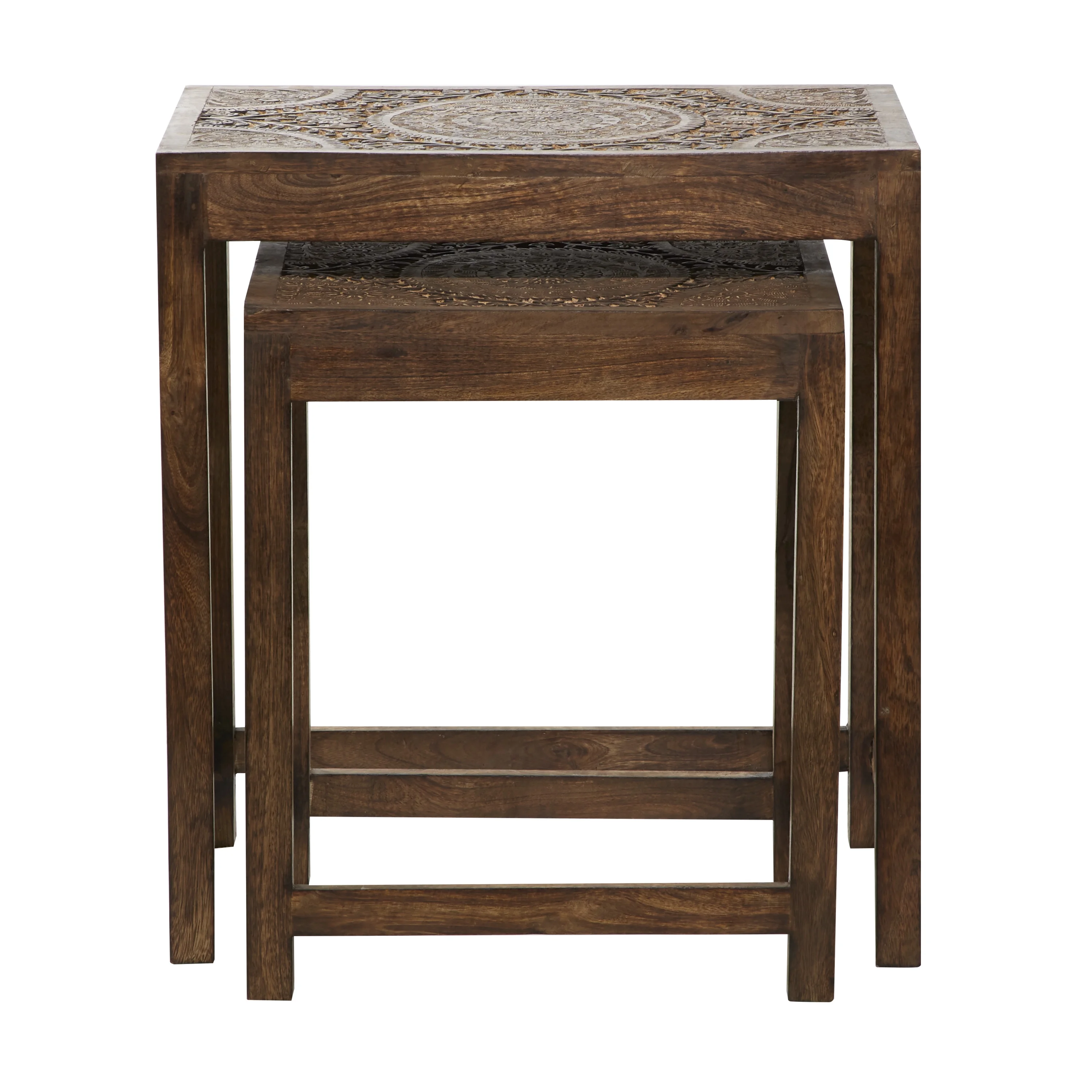 DecMode 22" x 24" Brown Mango Wood Handmade Intricately Carved Floral Accent Table, 2-Pieces - Curated Treasures Market