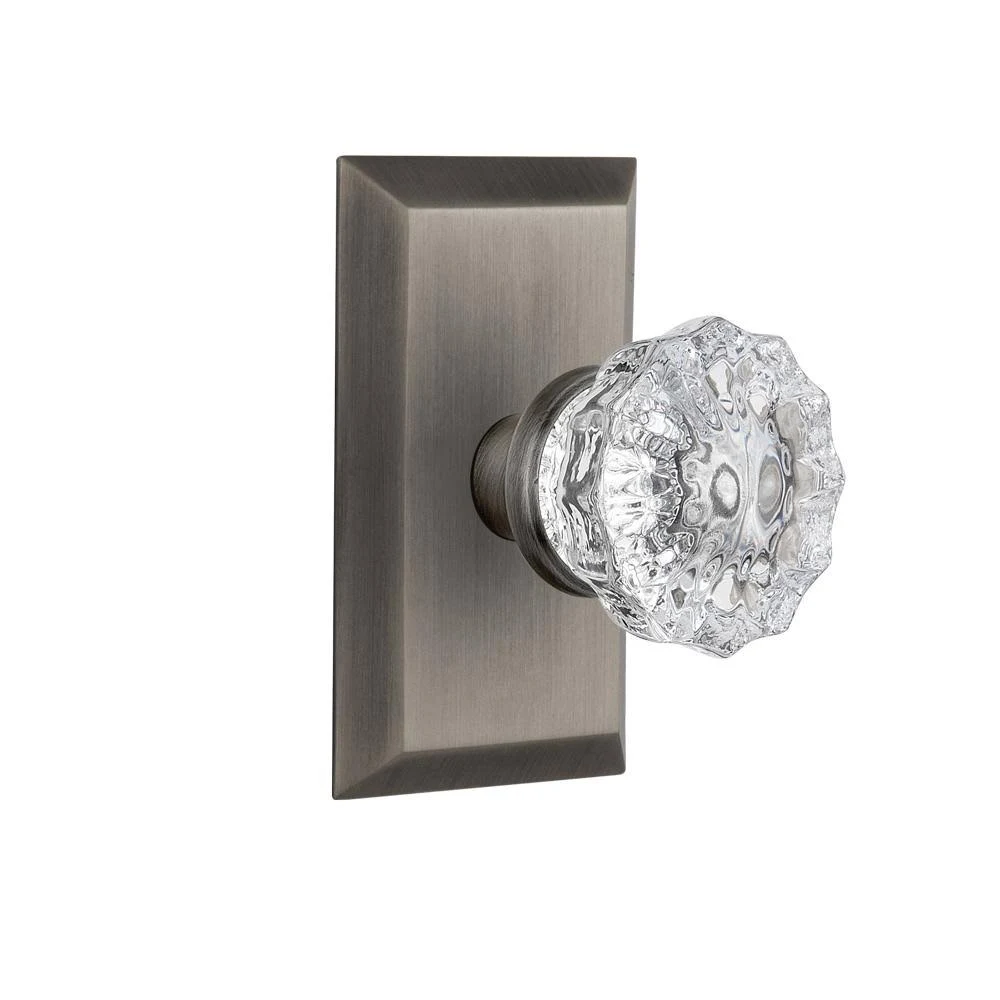 Nostalgic Warehouse 713305 Studio Plate Privacy Crystal Glass Door Knob, Antique Pewter - Megean