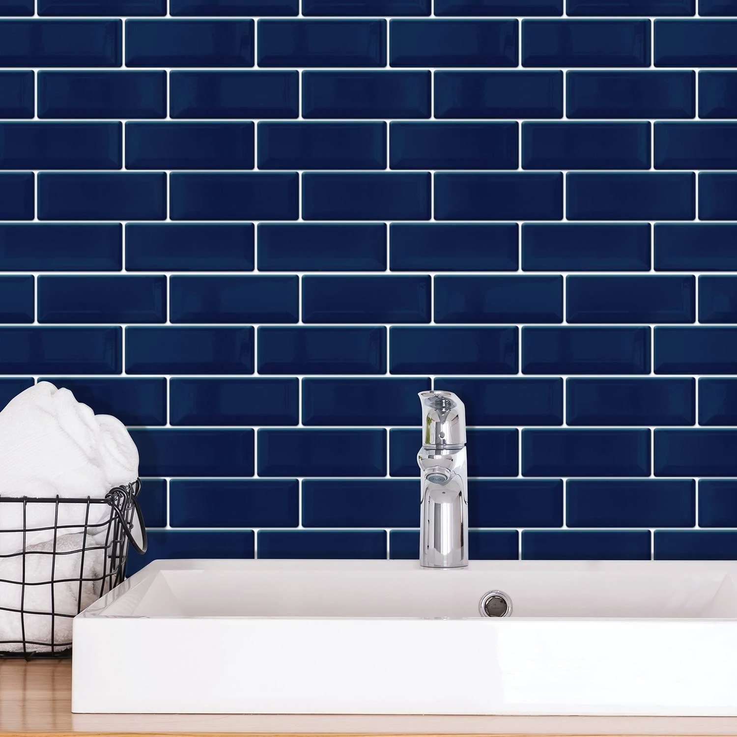 Walplus Glossy Metro Peel and Stick Backsplash Tile Stickers Removable - Blue - 48pcs - Megean
