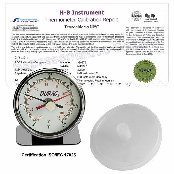 H-B B60215-0000 DURAC Maximum Registering/Autoclave Bi-Metal Thermometer - Megean