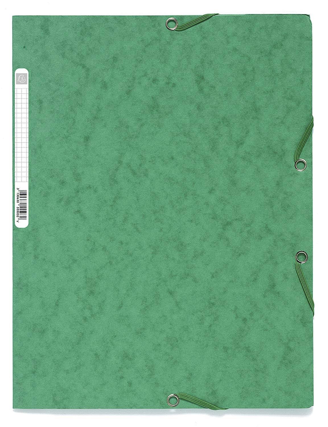 Exacompta Europa Elasticated 3 Flap Folders, 400 gsm, A4 - Green, Pack of 25 - Megean