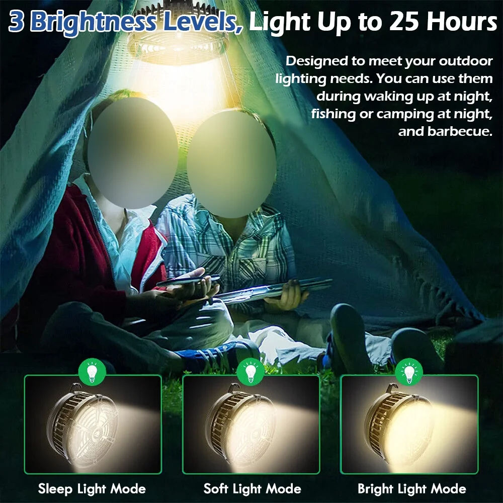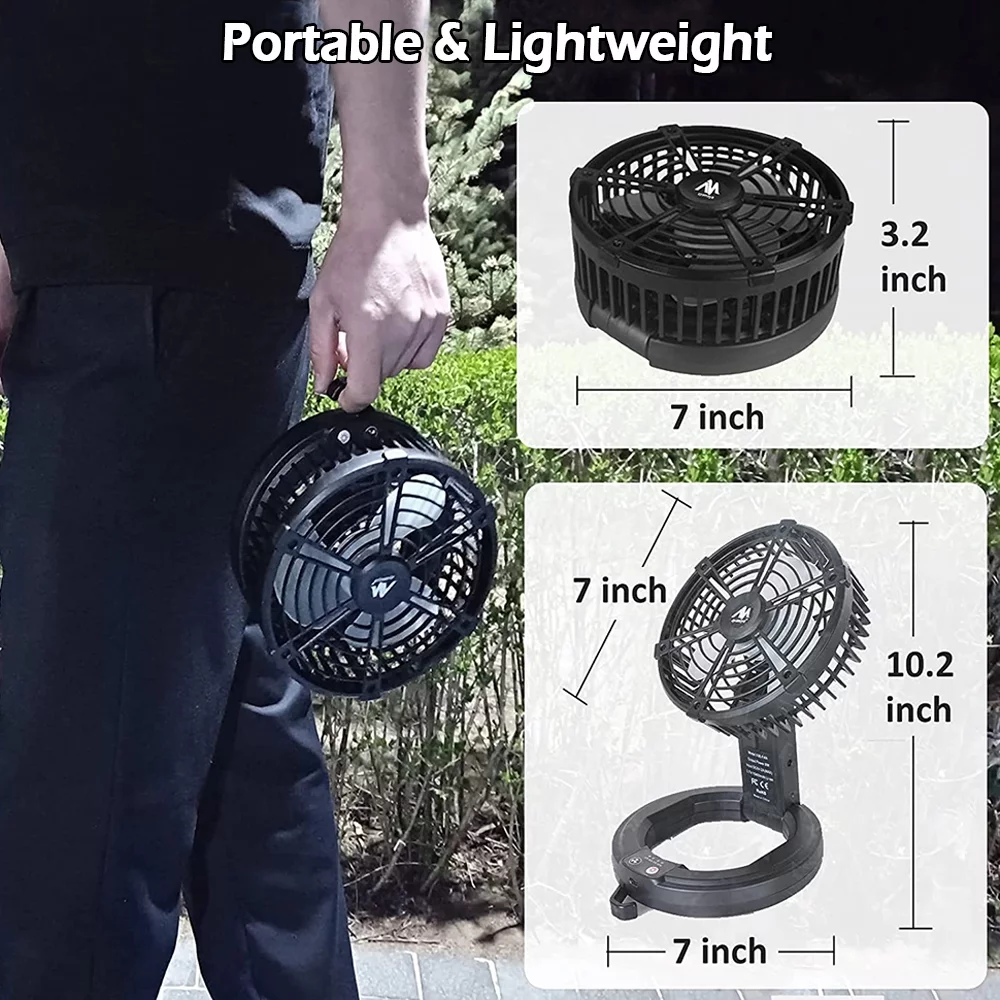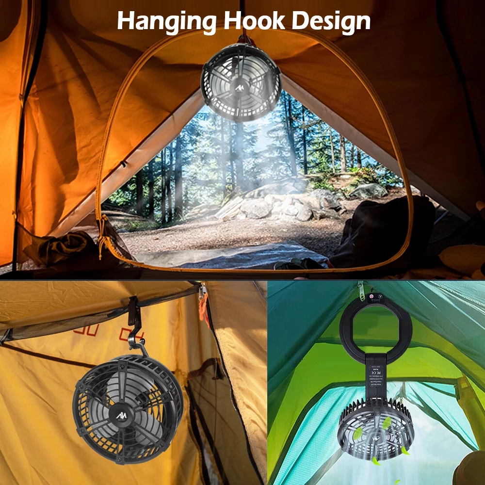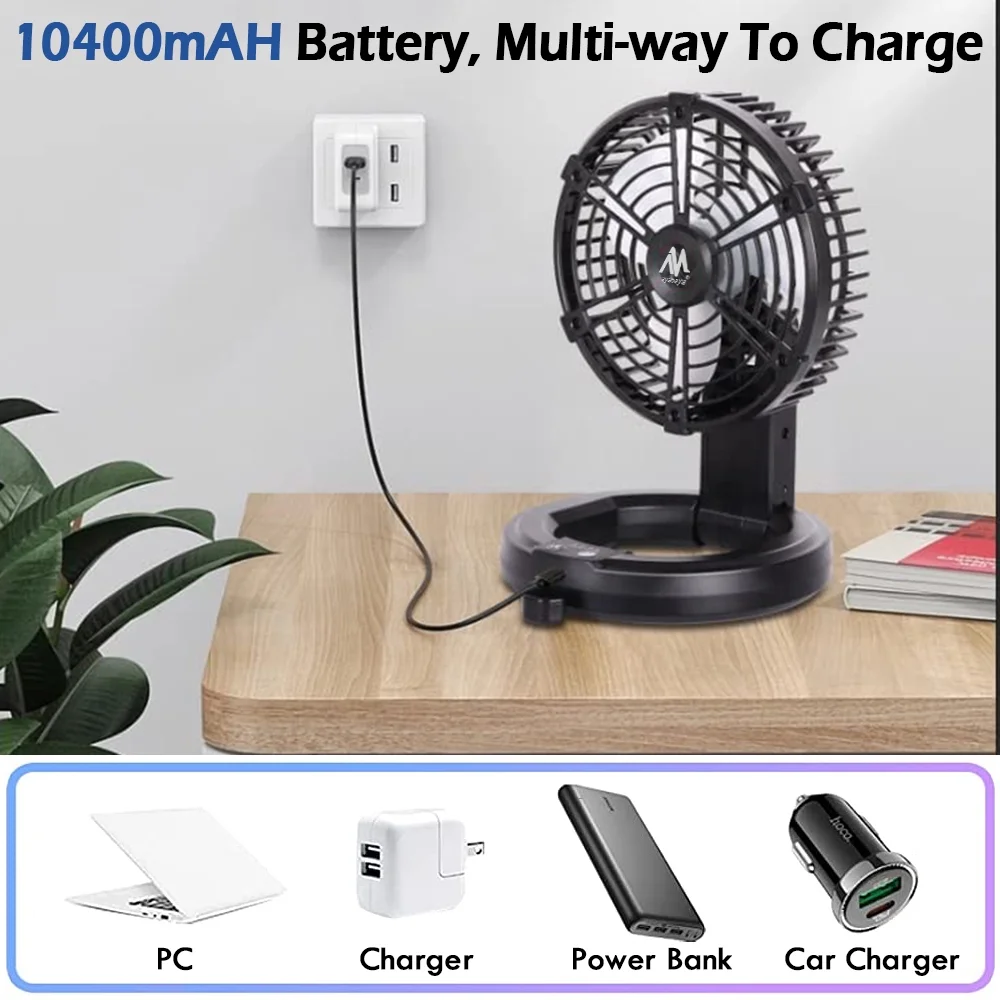 IC ICLOVER Rechargeable Camping Fan with LED Lantern & Hanging Hook, 10400mAh Portable Electric Household Table Desk Fan, Tent Fan Light Lamp with 3 Speed