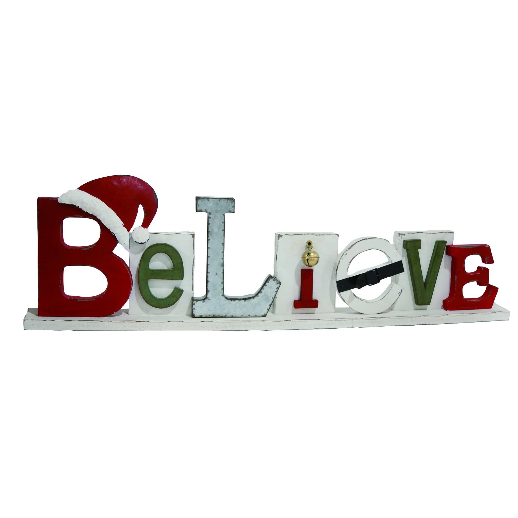 Transpac Wood 31 in. Multicolor Christmas Believe Decor - Megean