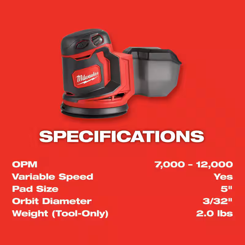 M18 18V Lithium-Ion Cordless 5 in. Random Orbit Sander with (2) M18 5.0Ah Batteries