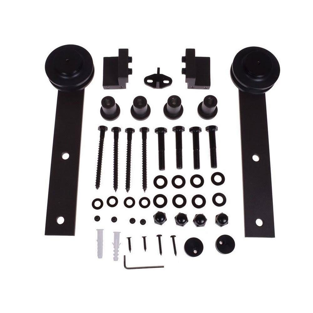 CALHOME 72 in. Matte Black Classic Straight Strap Barn Style Sliding Door Track and Hardware Set SDH-TSQ04-MK-72 - Megean