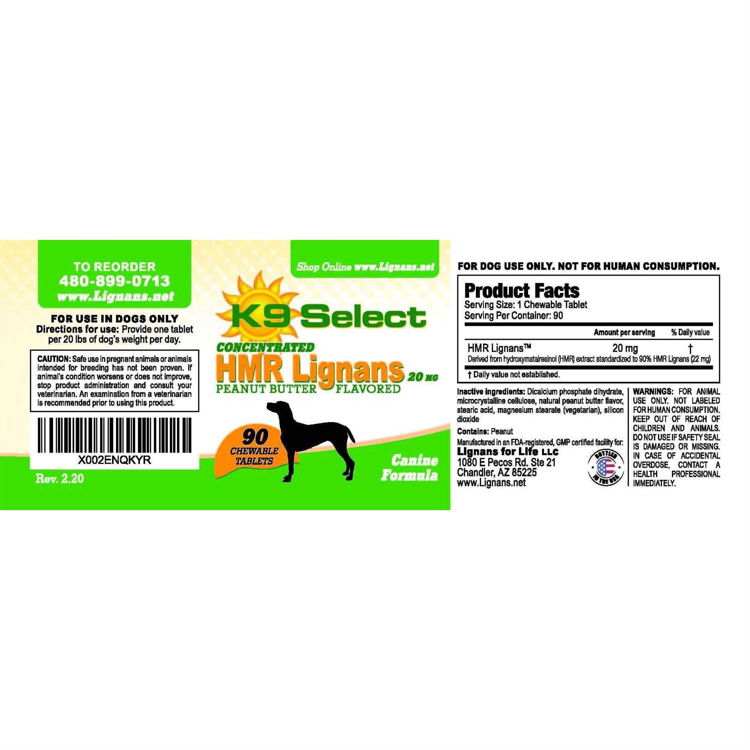 K9 Select Peanut Butter HMR Lignans Dog Hormone Supplement