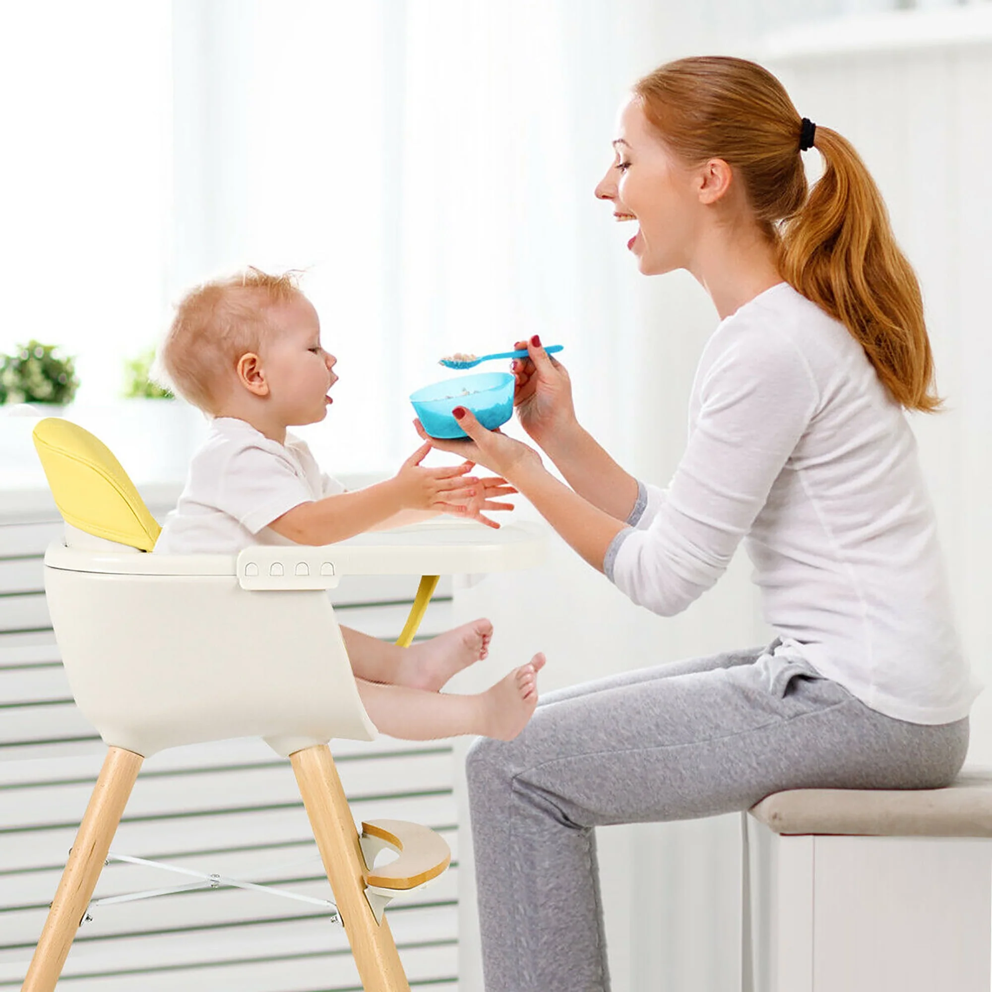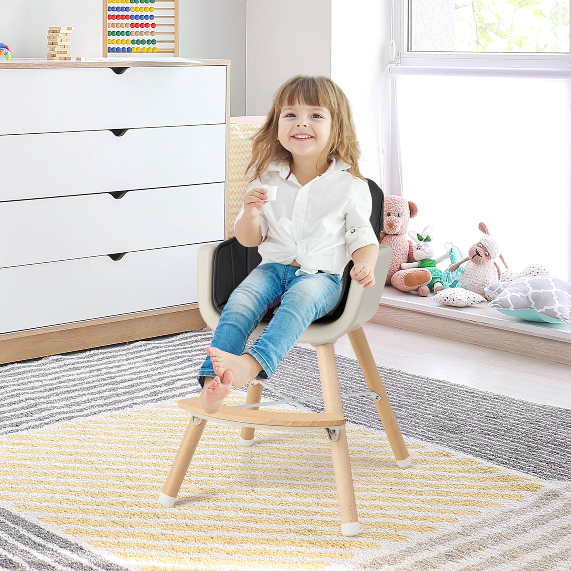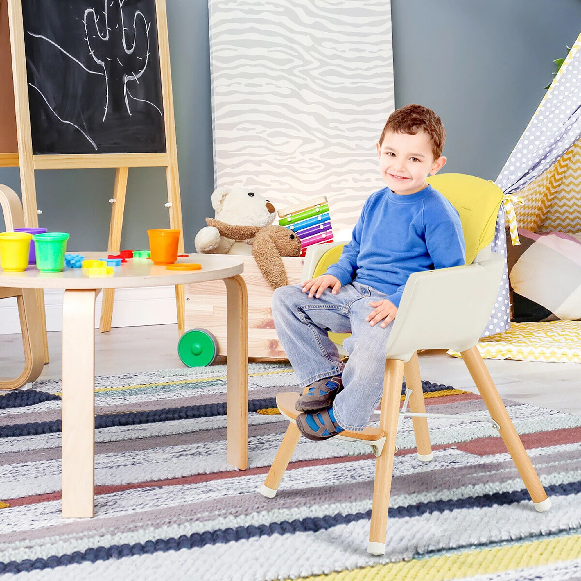 Babyjoy 3 in 1 Convertible Wooden High Chair Toddler Feeding Chair with Cushion Beige