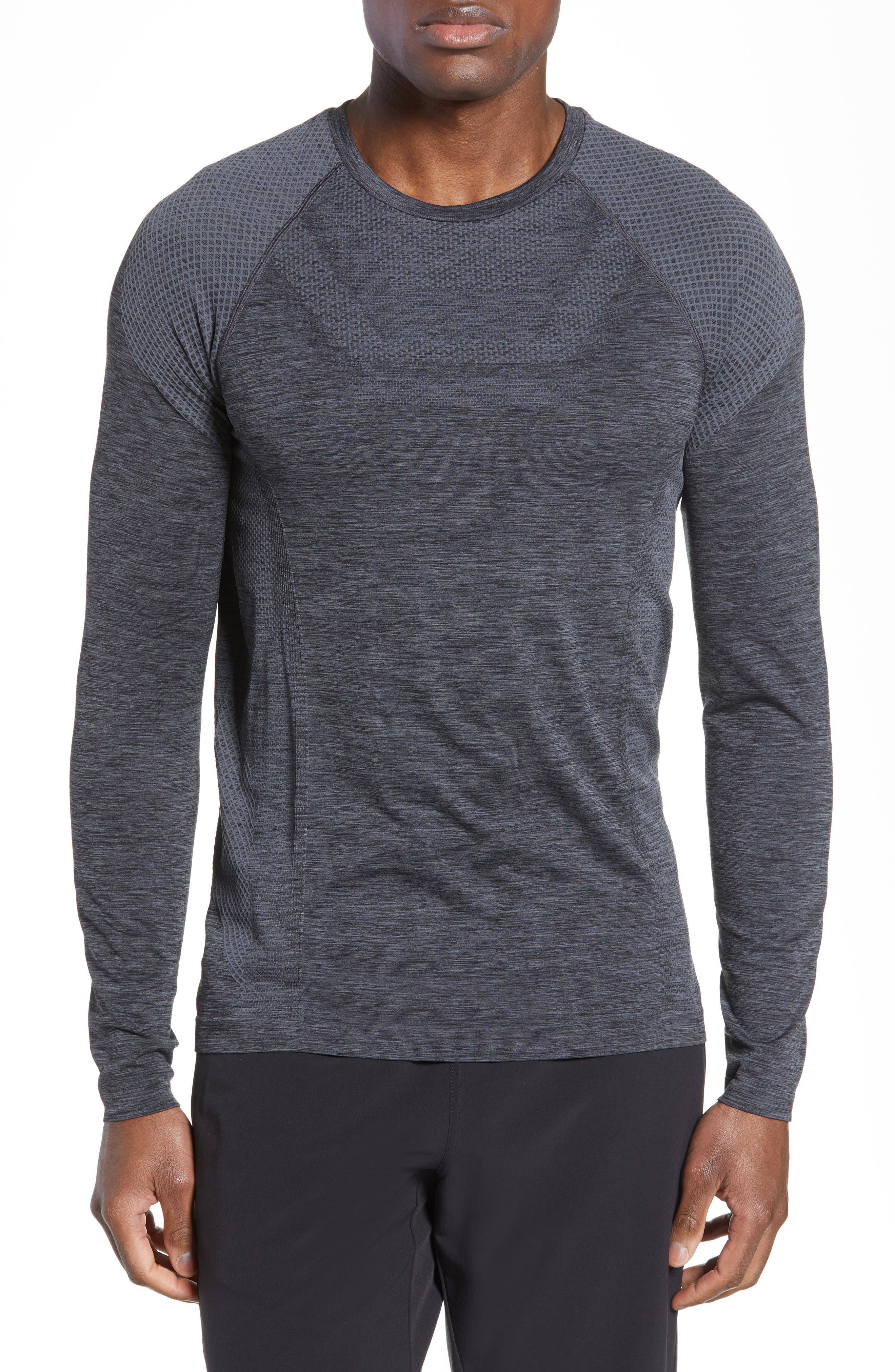 Alo Yoga Amplify Slim Fit Long-Sleeve Tee Black Heather - Megean
