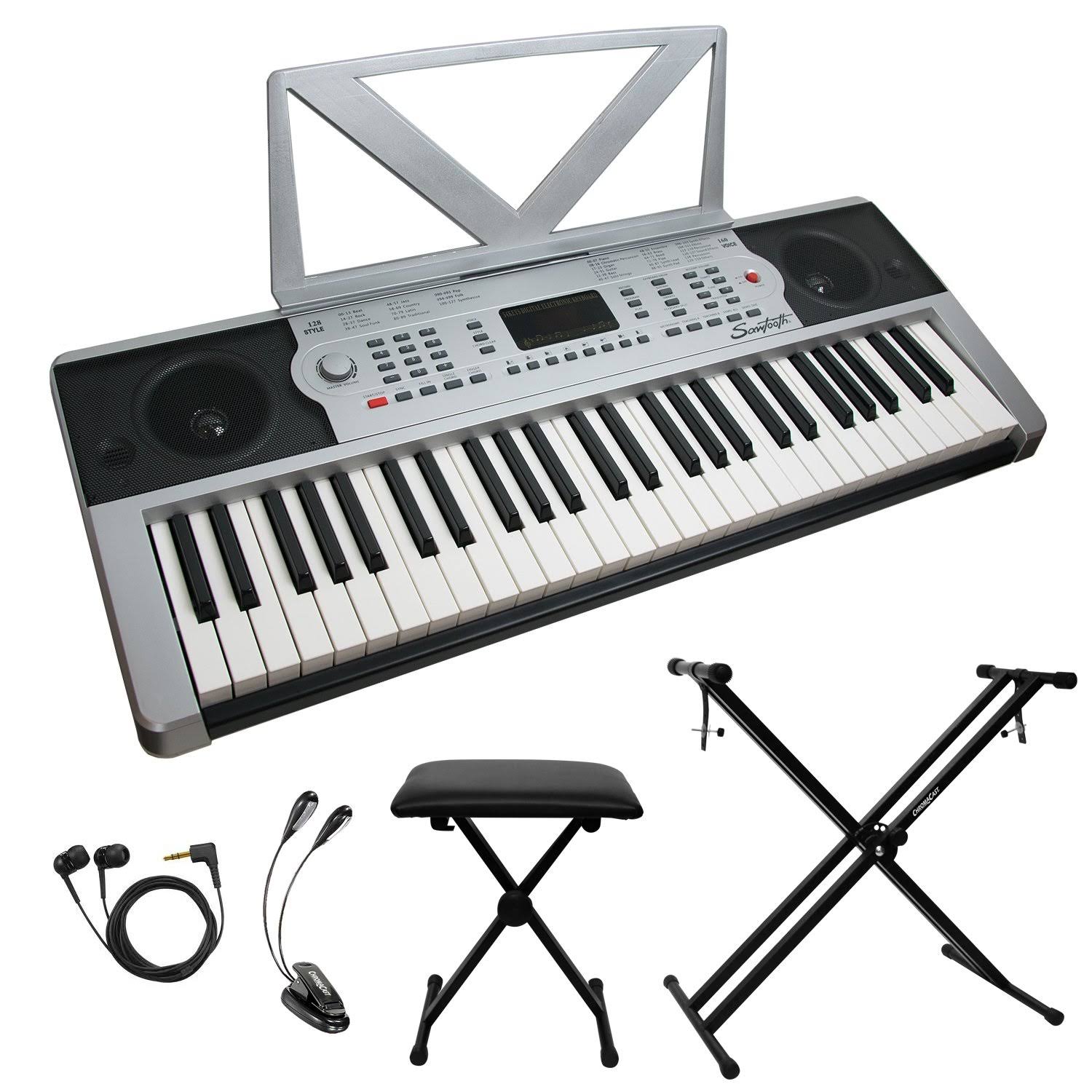 Sawtooth 54-Key Portable Keyboard with Accessories, Silver - Megean