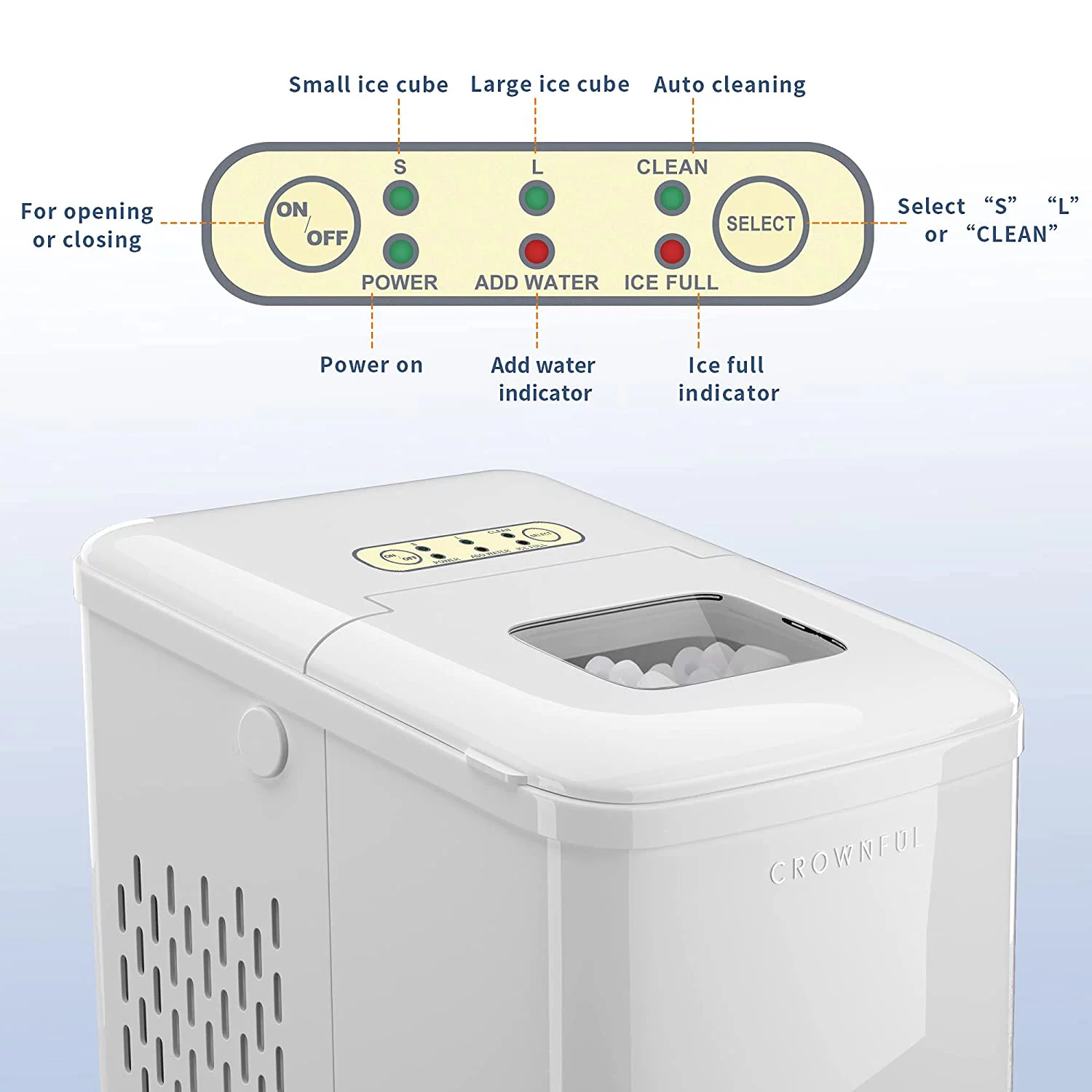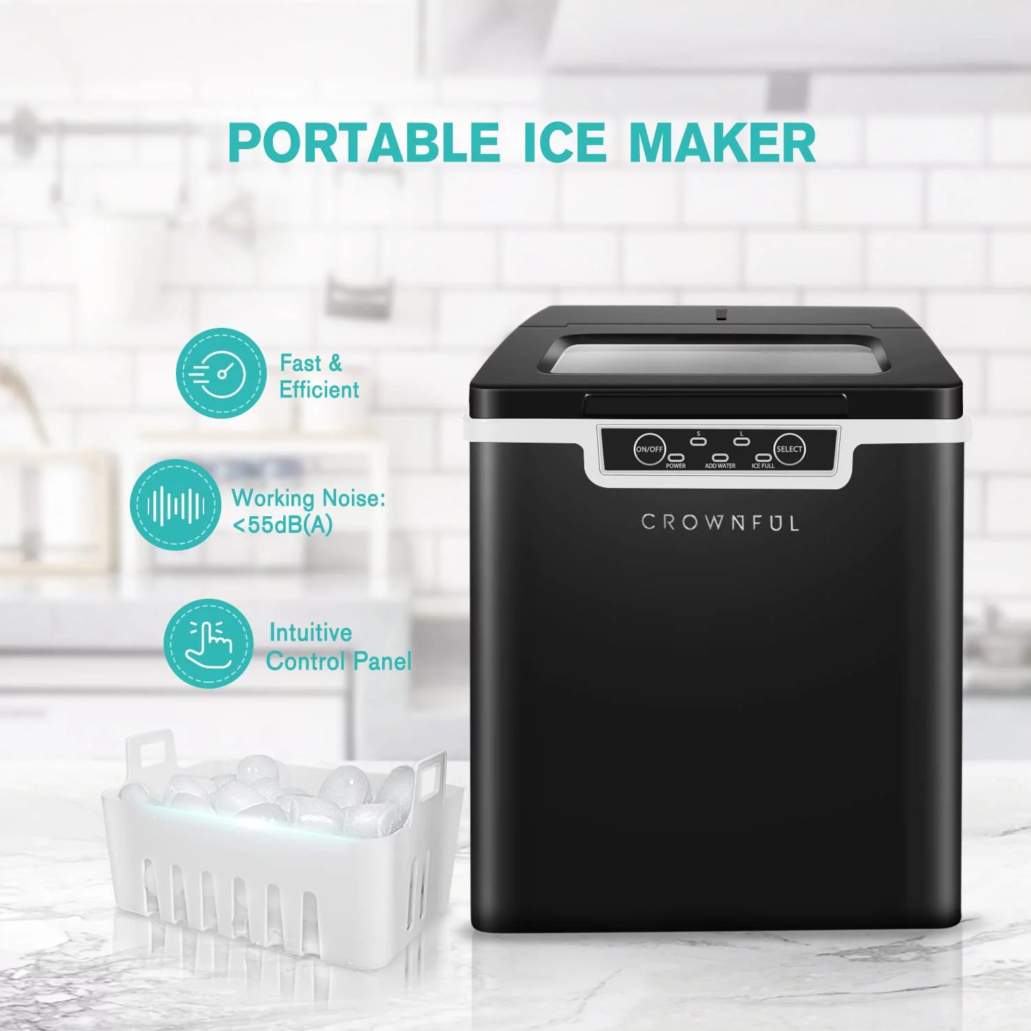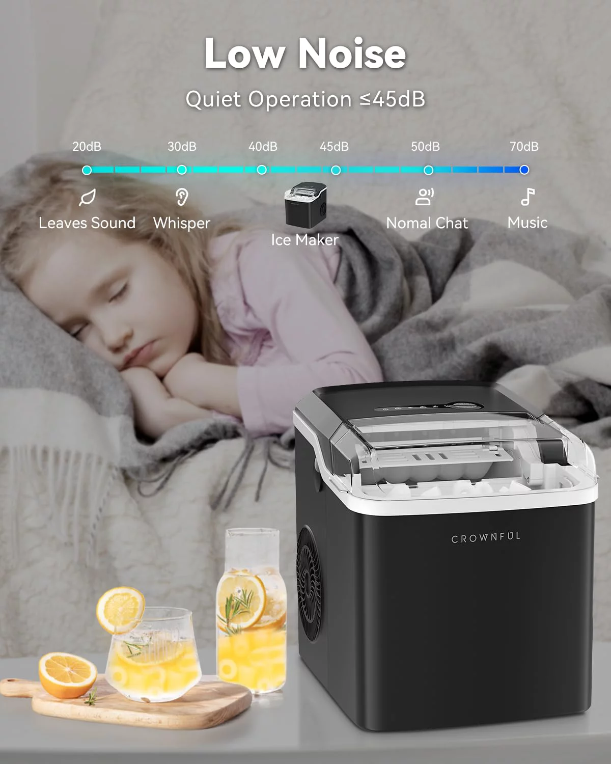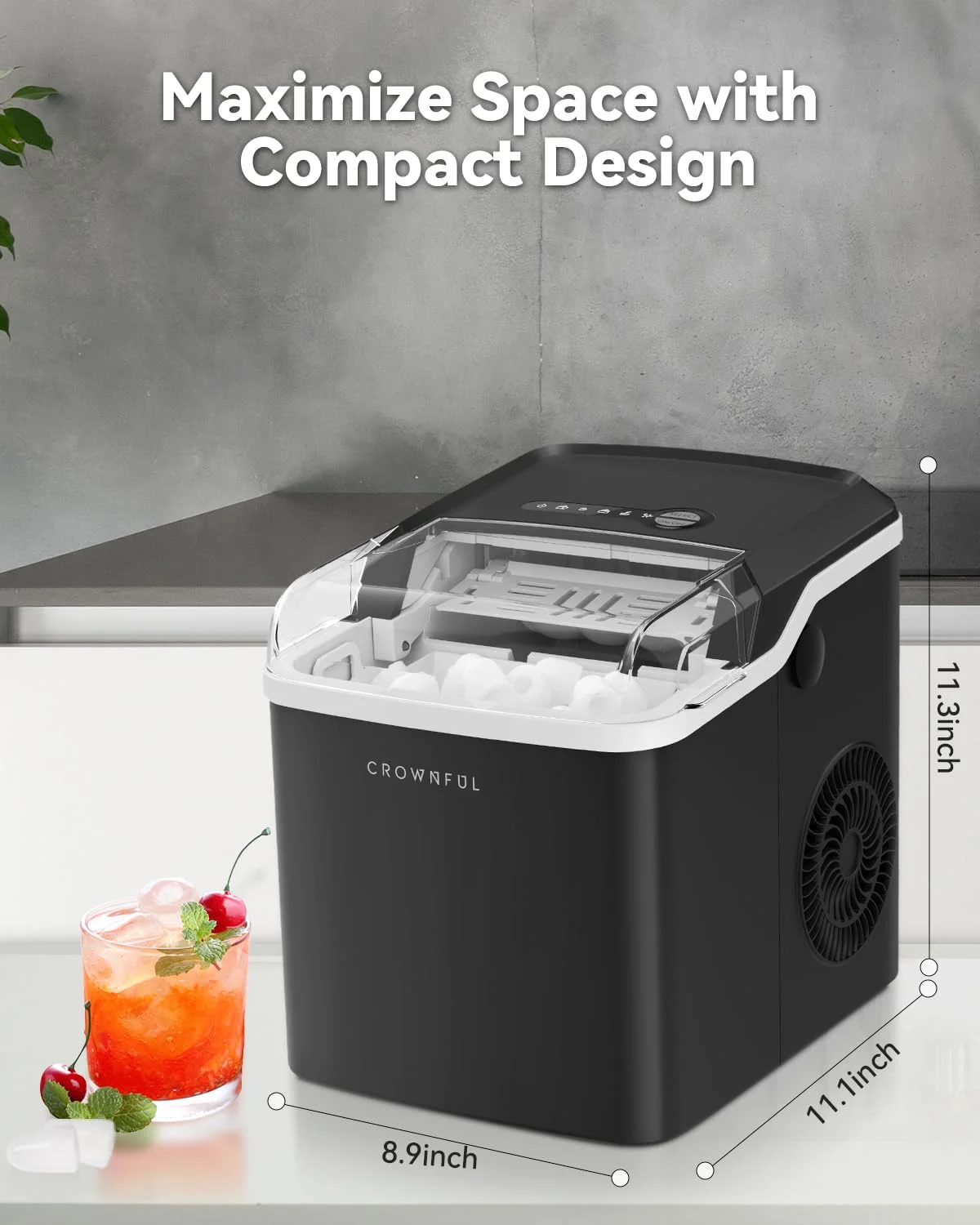 CROWNFUL Ice Makers Countertop, 26lbs/24H, 2 Sizes Bullet Ice, Portable Small Ice Machine with Self-Cleaning