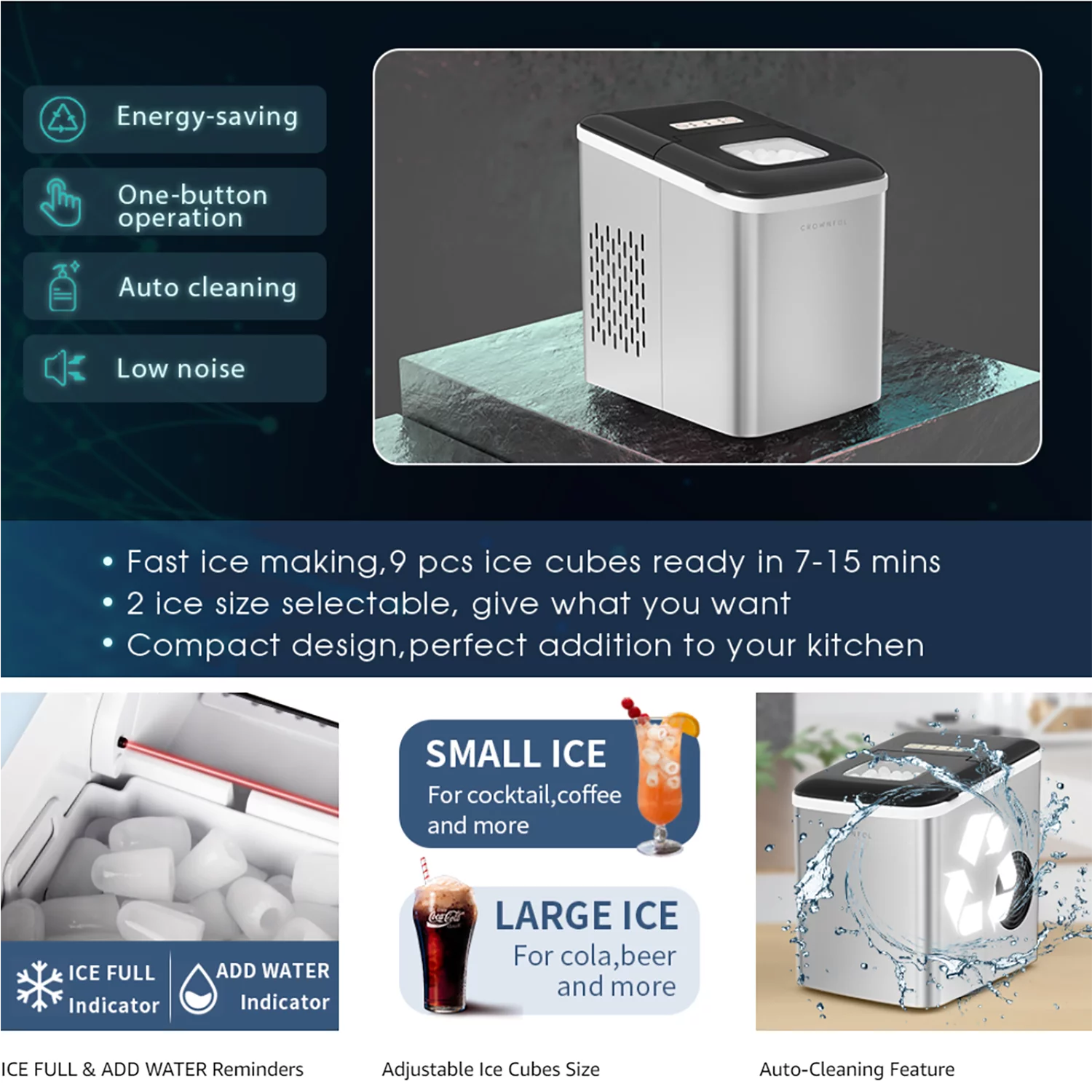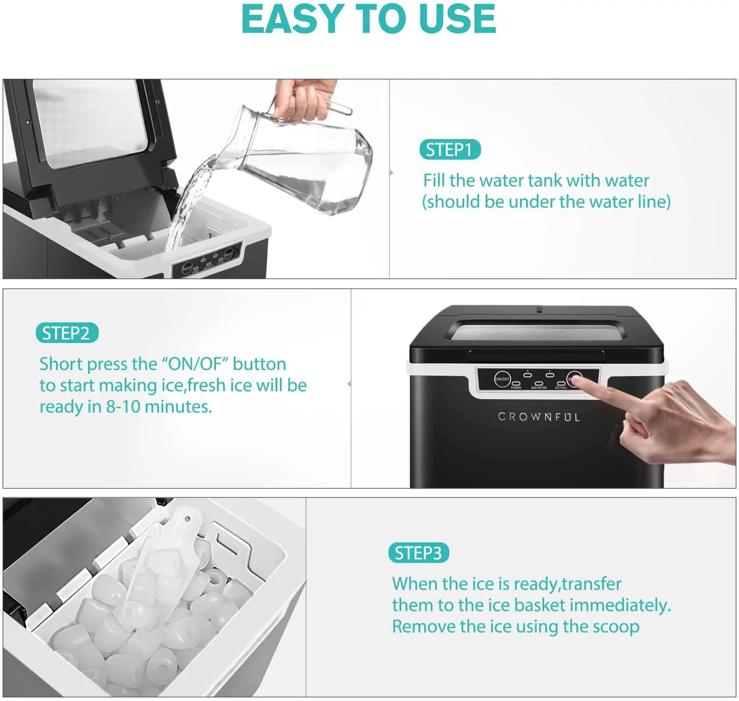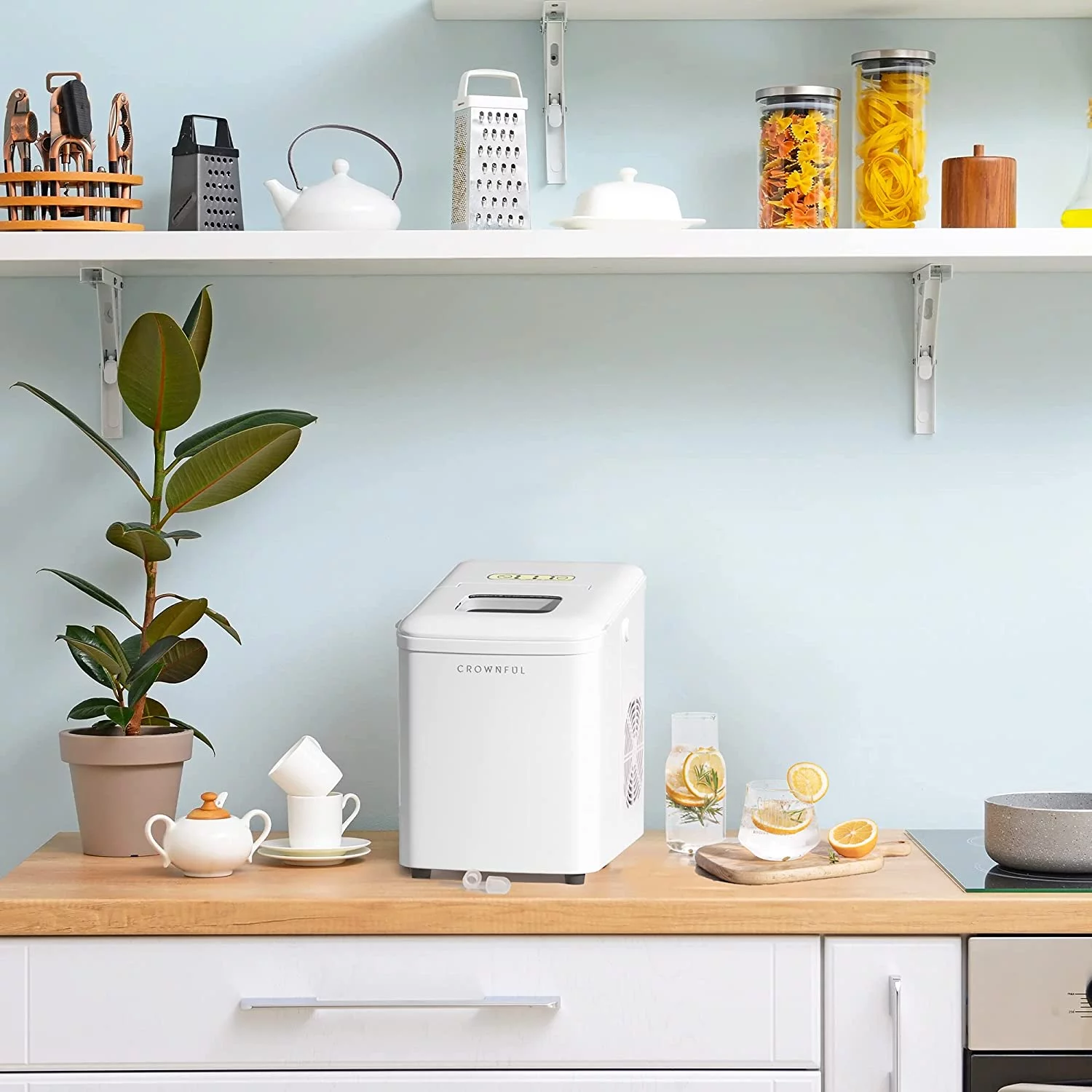 CROWNFUL Ice Makers Countertop, 26lbs/24H, 2 Sizes Bullet Ice, Portable Small Ice Machine with Self-Cleaning