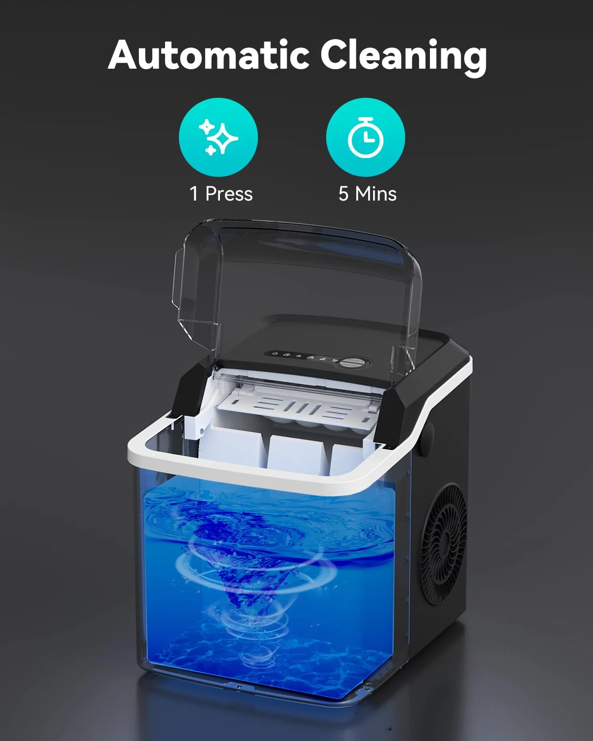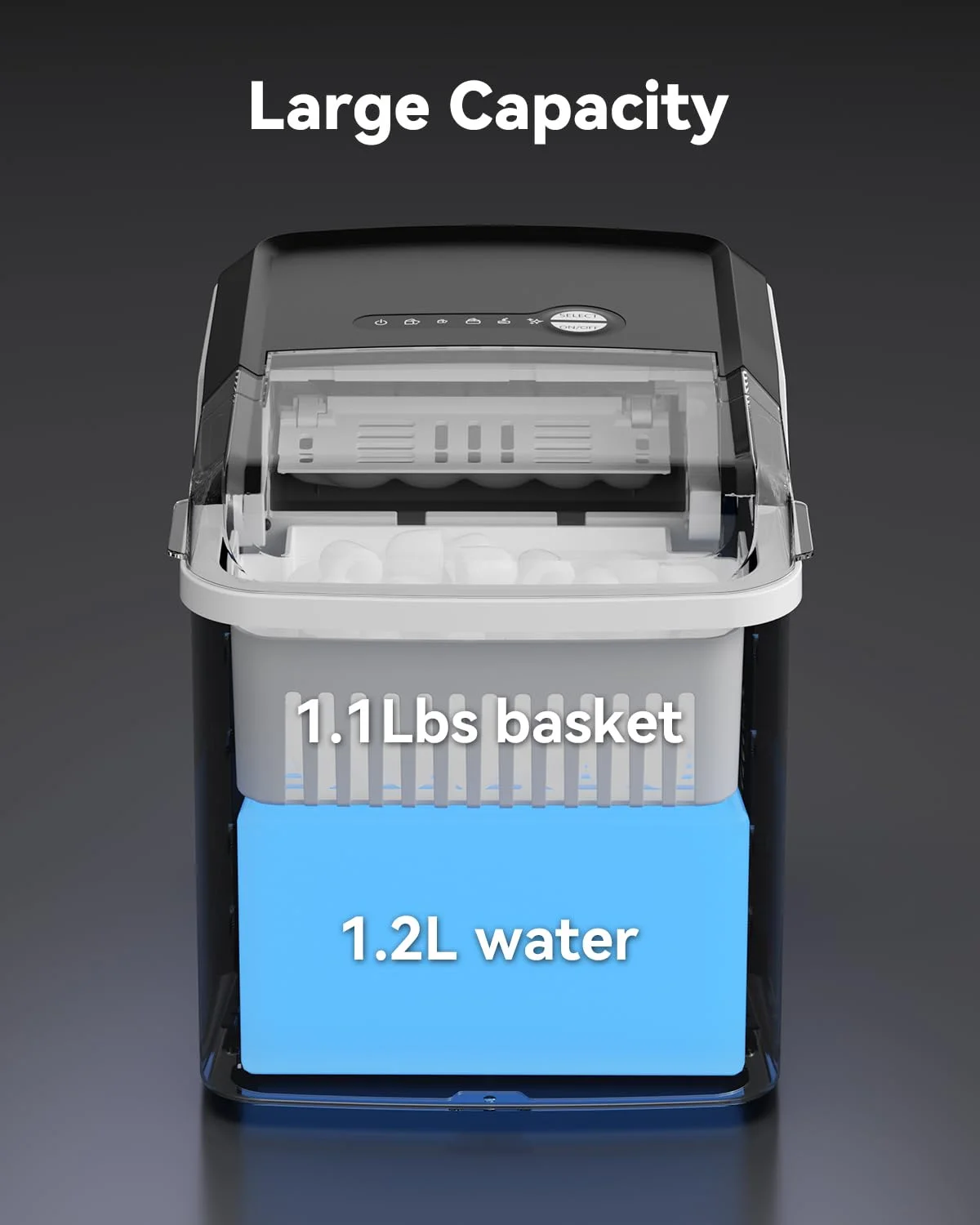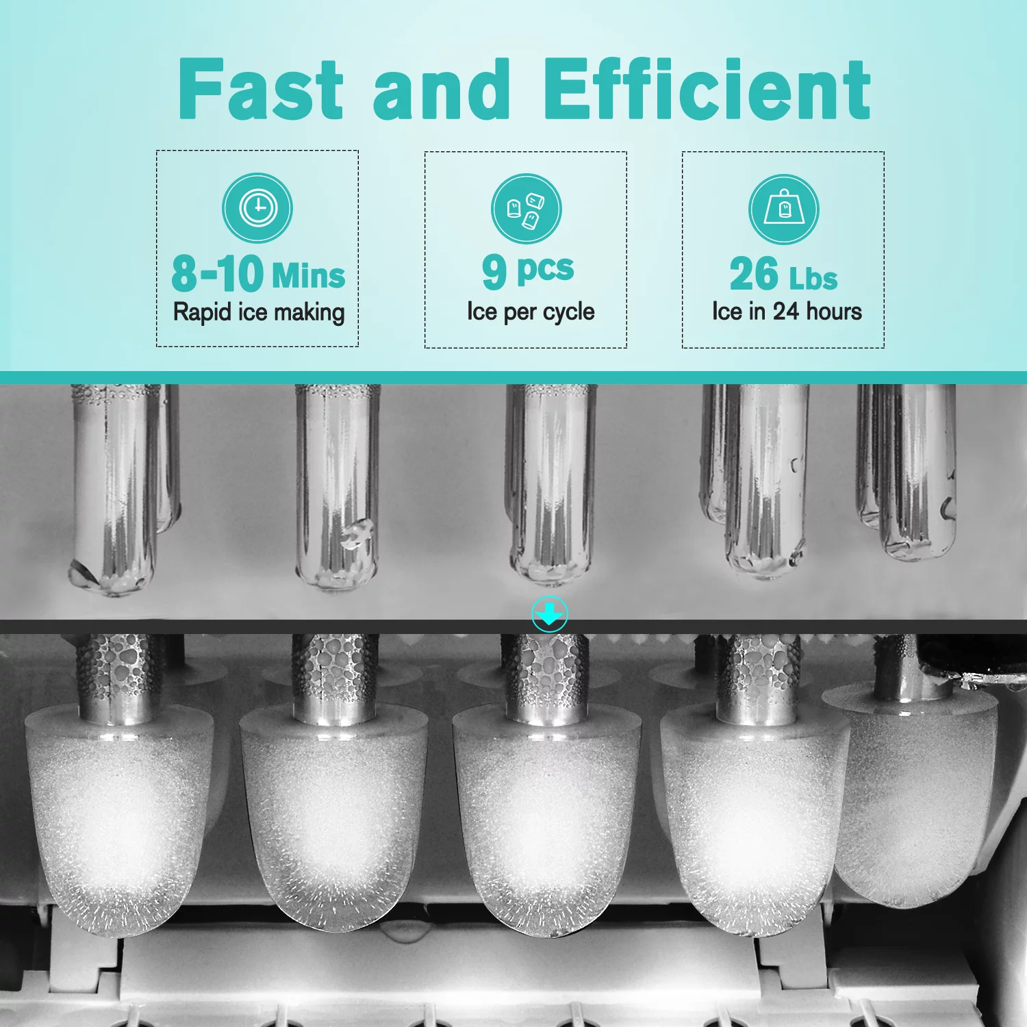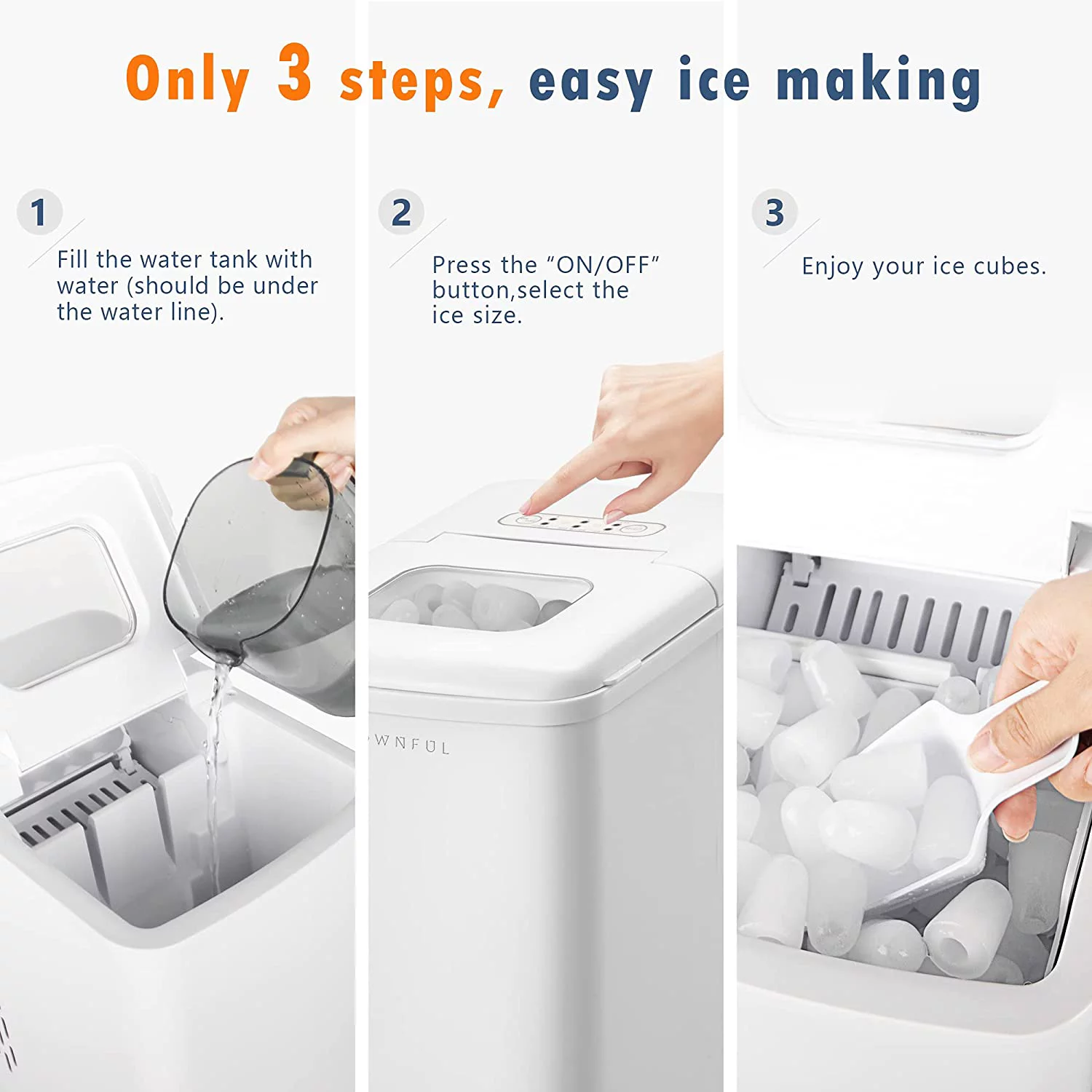 CROWNFUL Ice Makers Countertop, 26lbs/24H, 2 Sizes Bullet Ice, Portable Small Ice Machine with Self-Cleaning