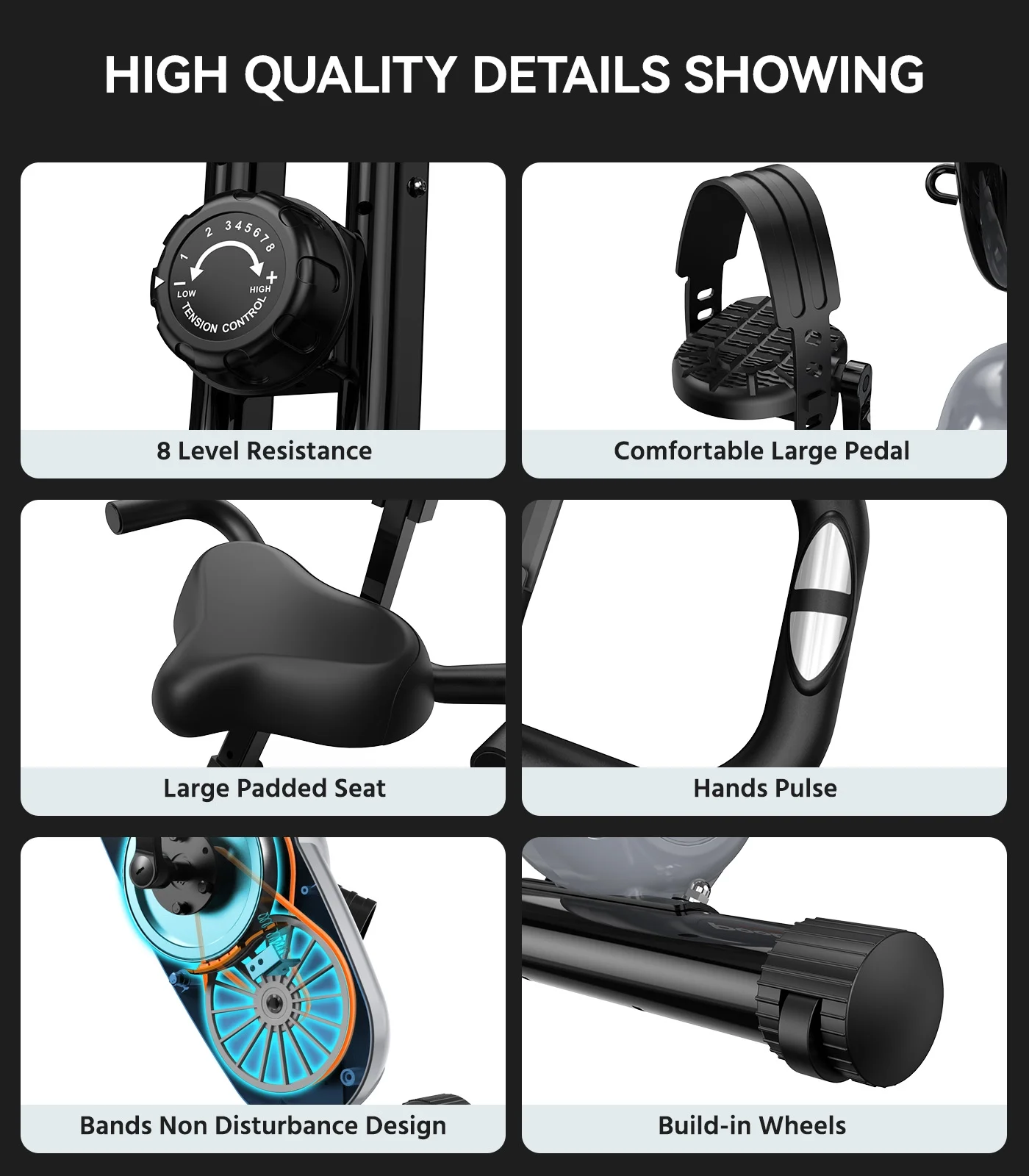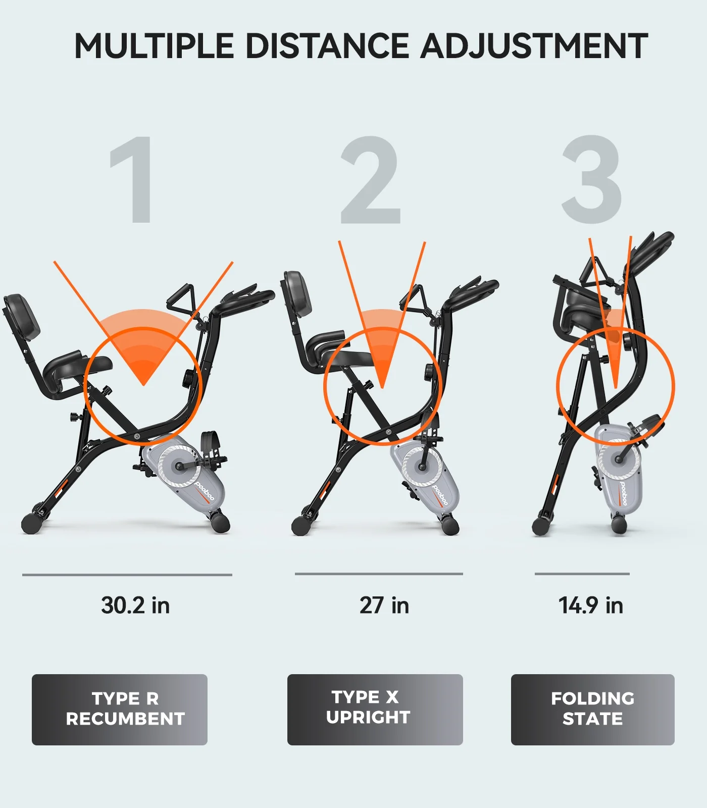 Pooboo 4in1 Folding Exercise Bike Indoor Cycling Bike Stationary Magnetic x Bike Gym Workout 300lb