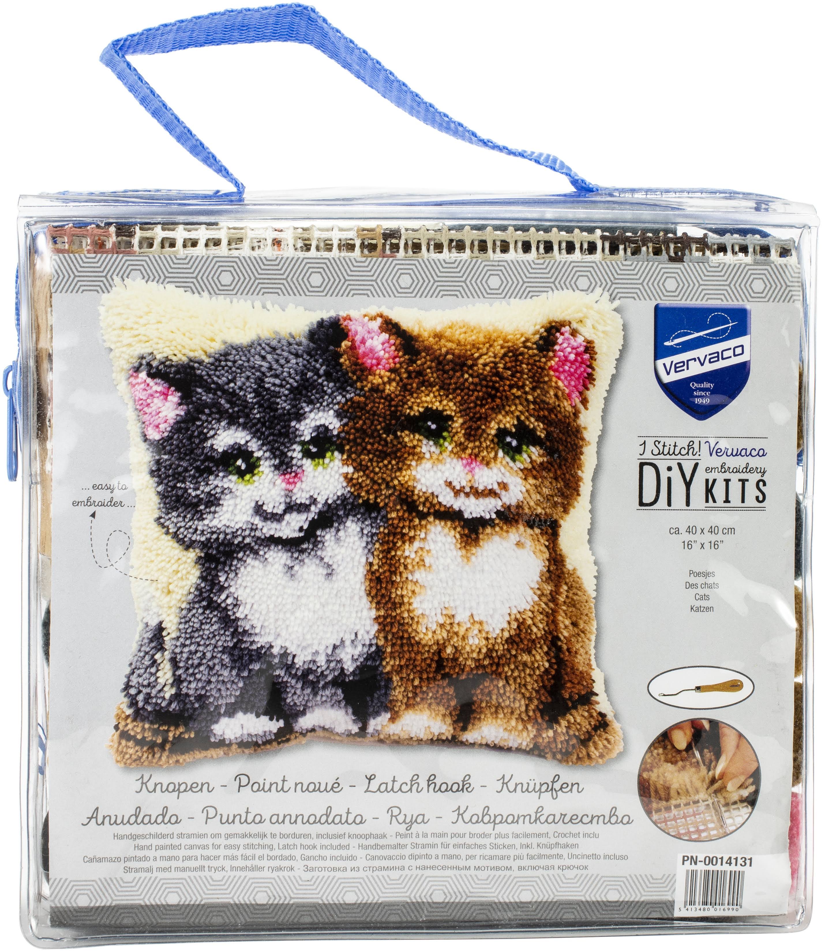 Vervaco Cushion Latch Hook Kit Cats 16inx16in - Megean