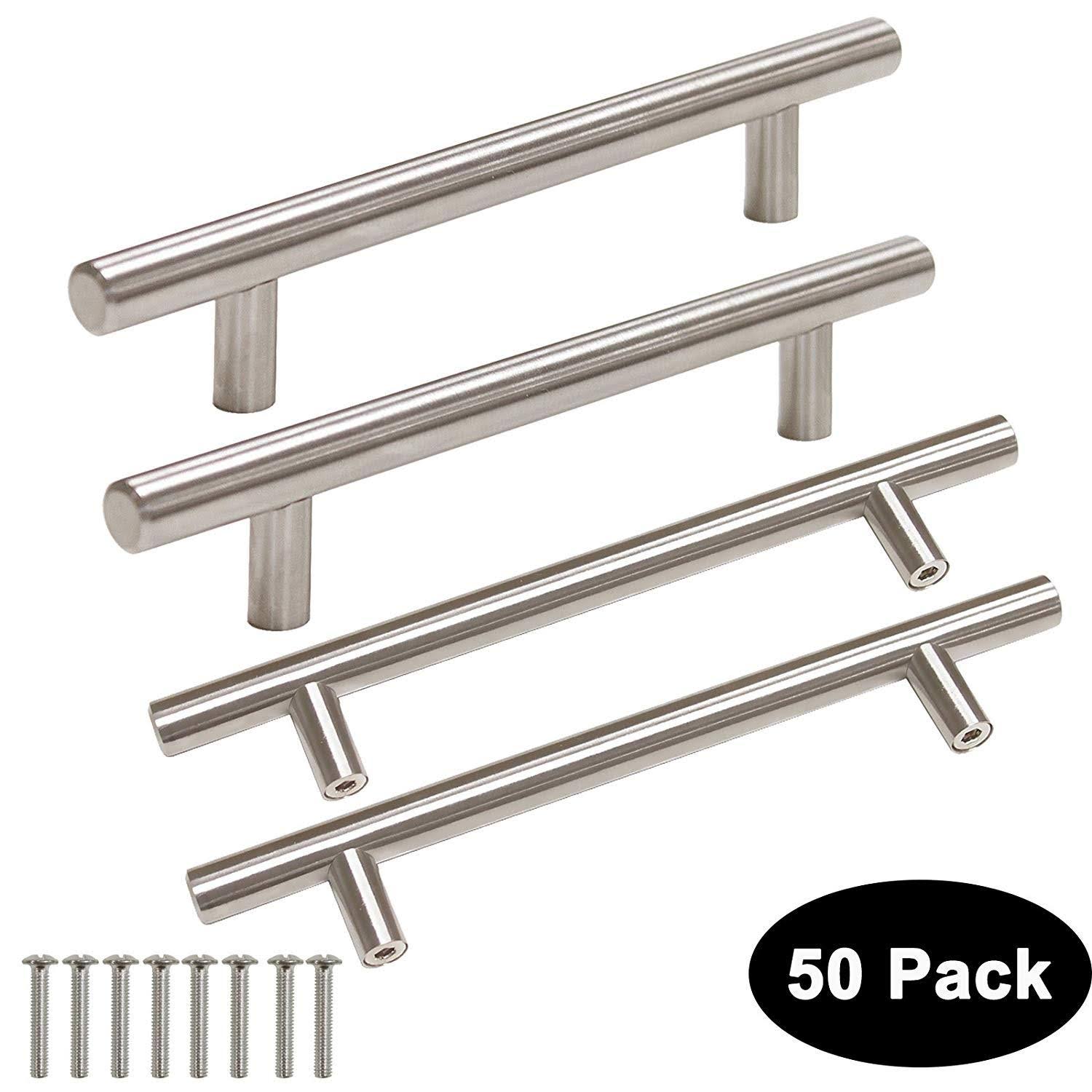 50 Pack 128Mm(5Inch) Hole Centers Stainless Steel Kitchen Cabinet Door Handles and Pulls Cabinet Knobs Length 192Mm(7.5Inch) Brushed Nickel - Megean