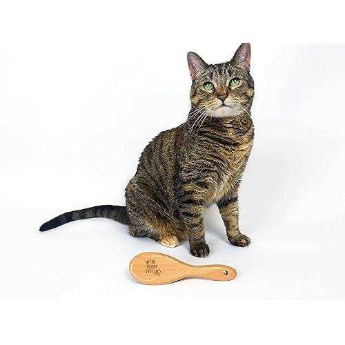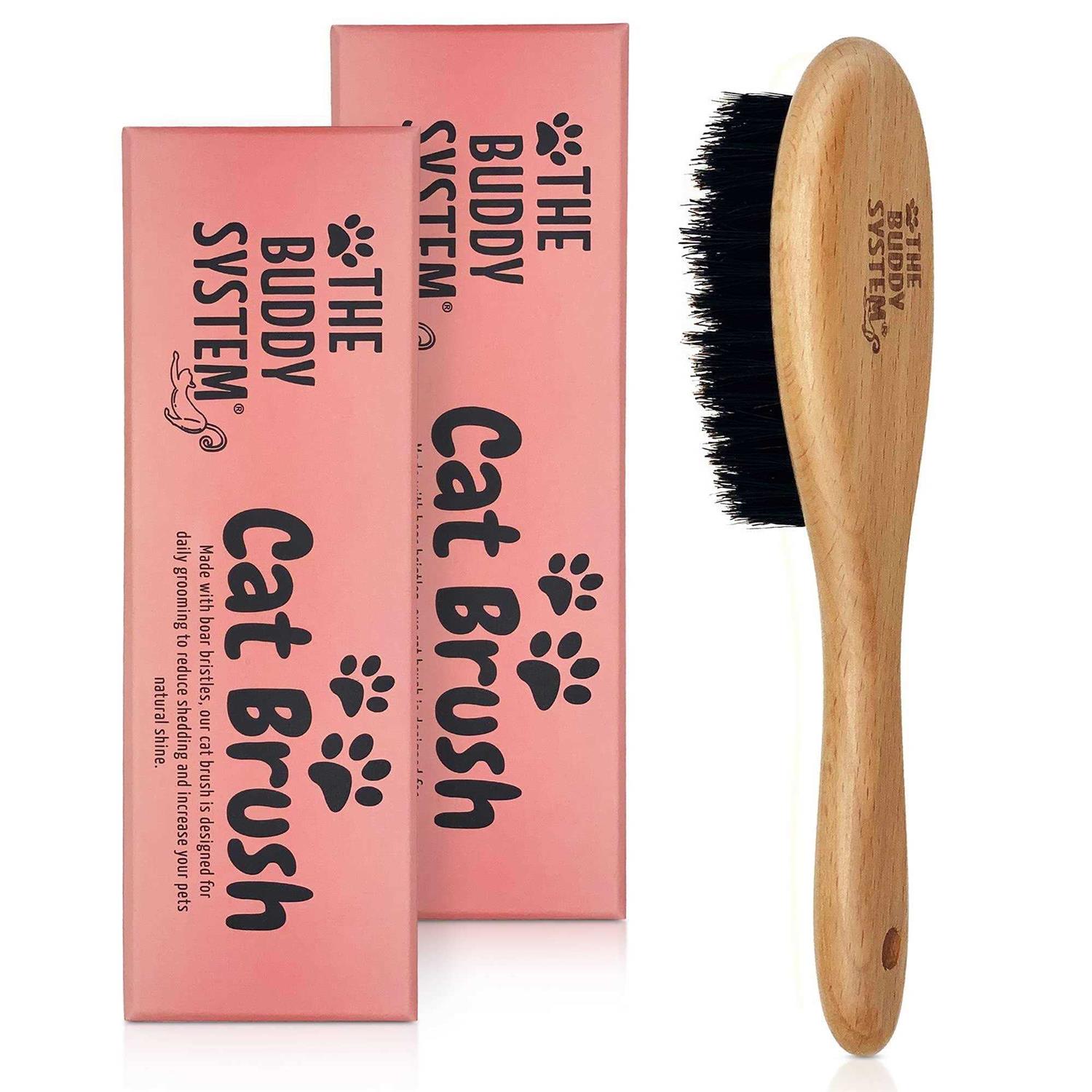 The Buddy System Cat Brush with Boar Bristle and Wooden Handle, Professional Grade Daily Grooming Hairbrush, Reduce Shedding, Soft Hair and Healthy