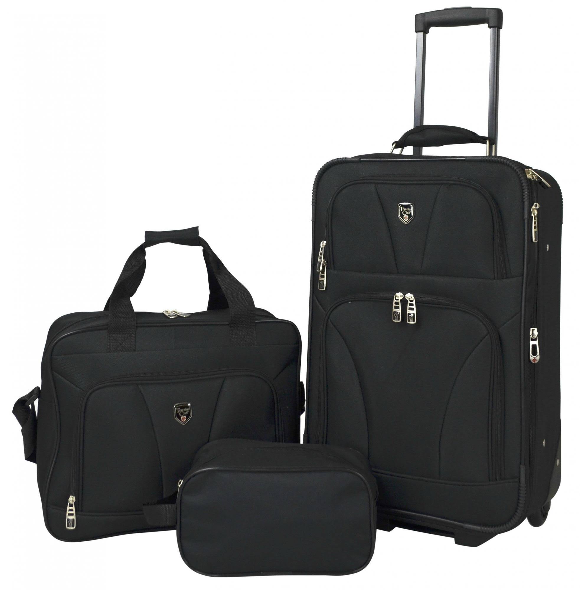 Traveler's Club 3-Piece Expandable Rolling Carry-On Value Set - Black - Megean