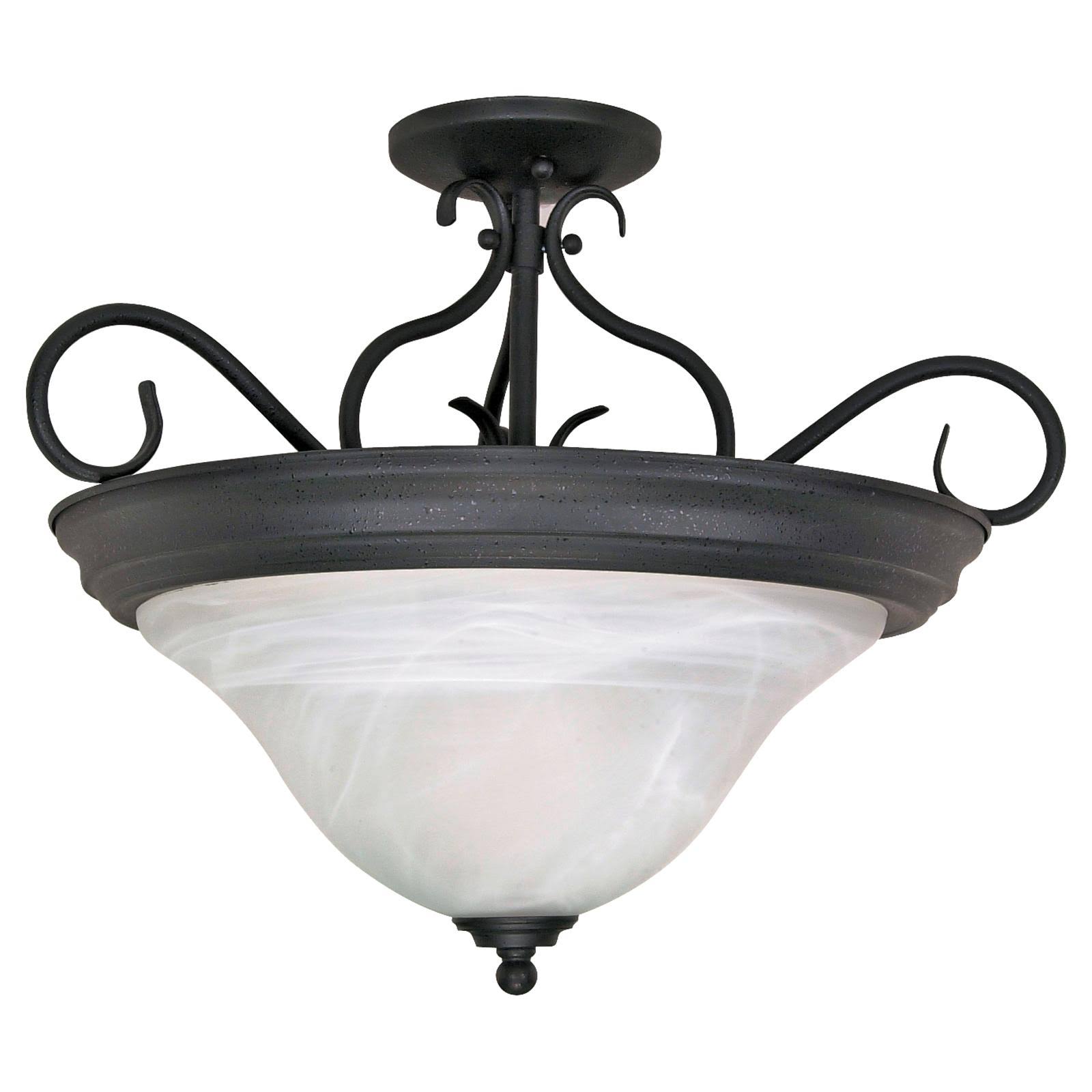 Castillo - 3 Light - 19x22 - Semi-Flush - with Alabaster Swirl Glass (Textured Black), Nuvo Lighting - Megean