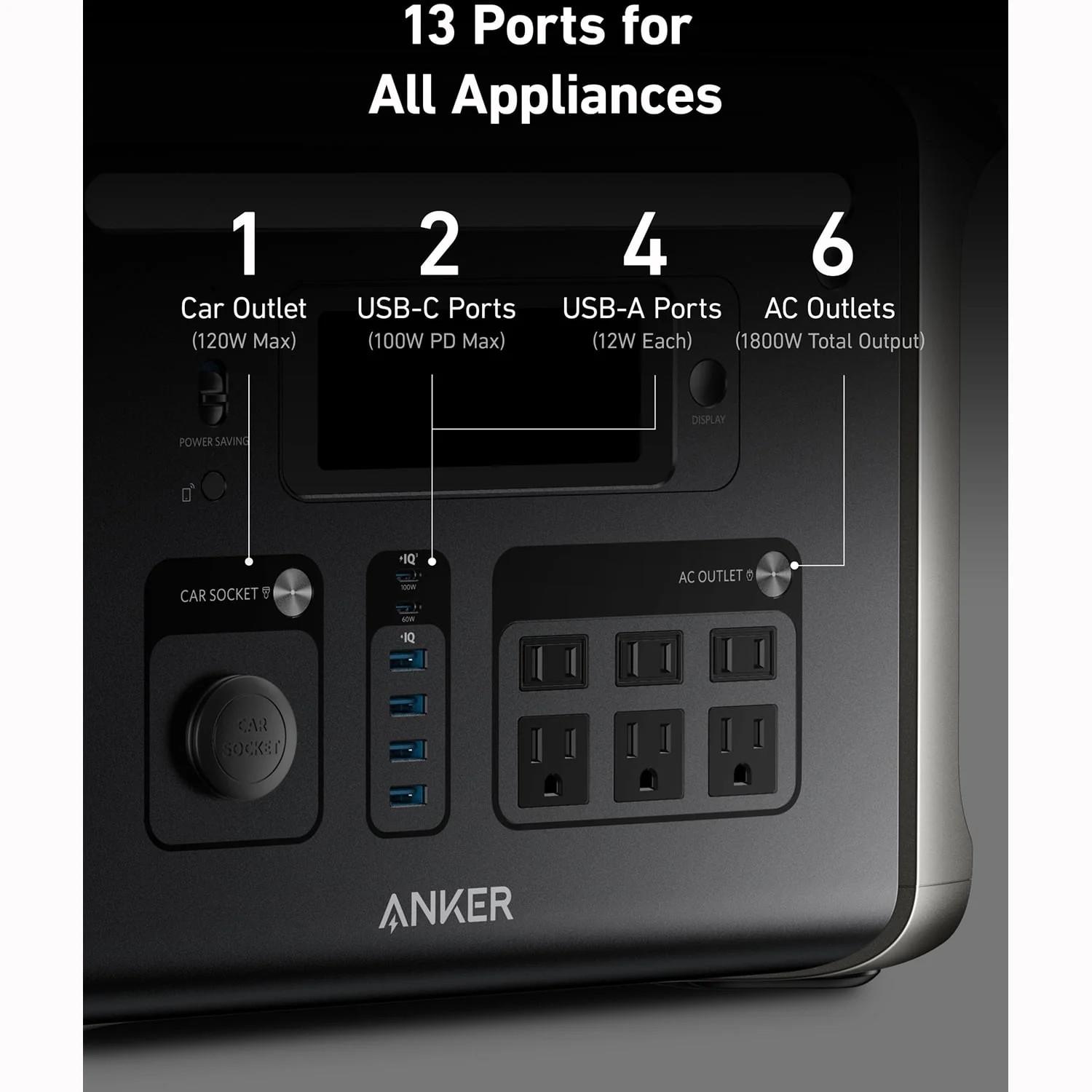 Anker SOLIX F1500 Portable Power Station - 1536Wh|1800W | WiFi Remote Control