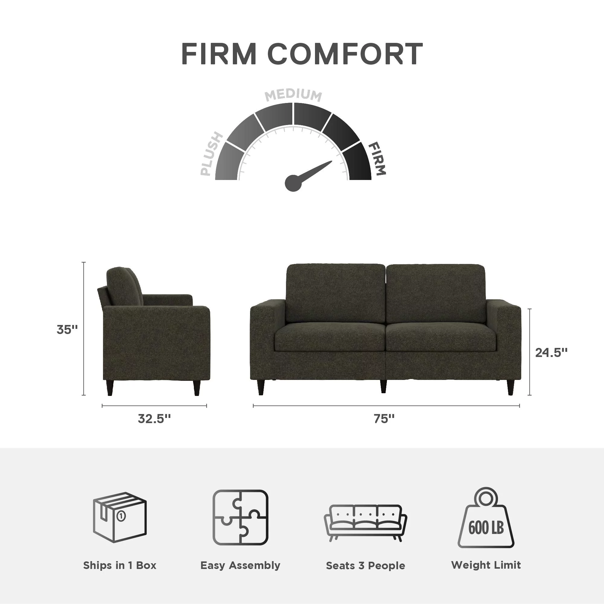 DHP Cooper 3 Seater Sofa, Gray Linen