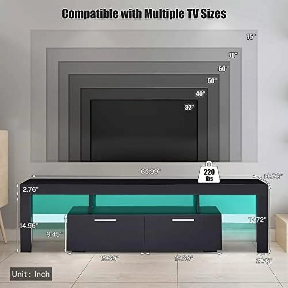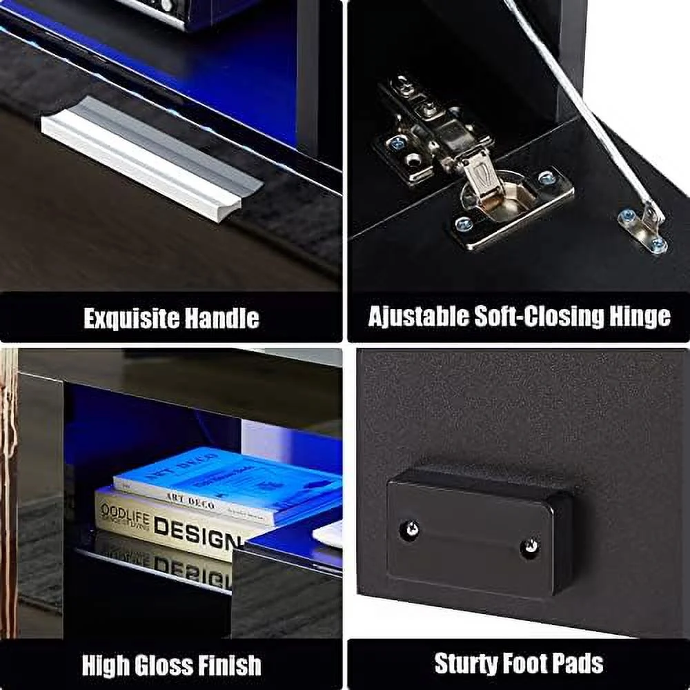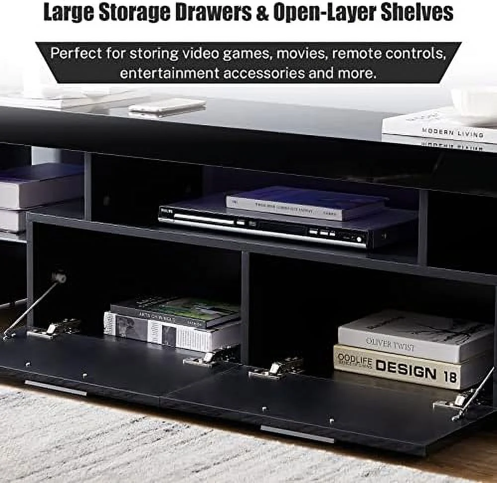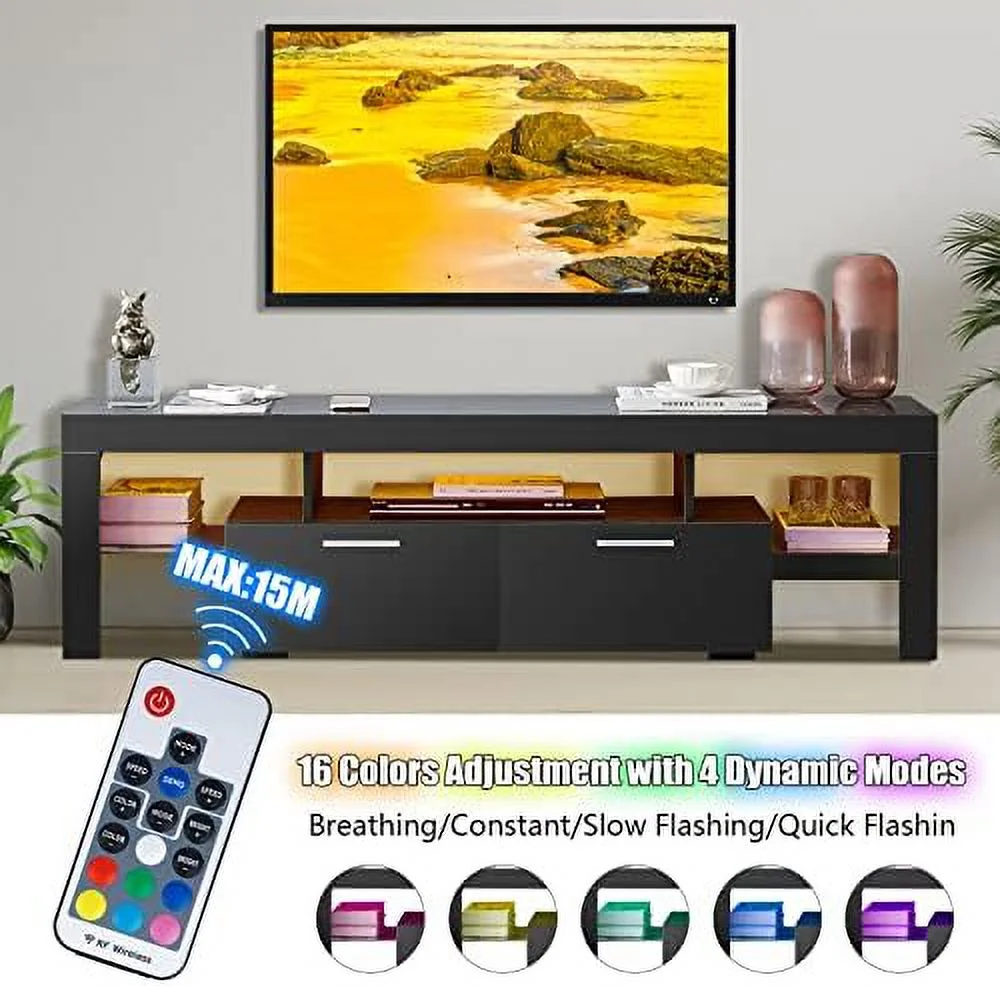 SJOINGB Modern LED TV Stand with and LED Lights for 55/65/70/75 inch TV White TV Console Table with High Glossy Entertainment Center for Gaming Living Room Bedroom - Curated Treasures Market