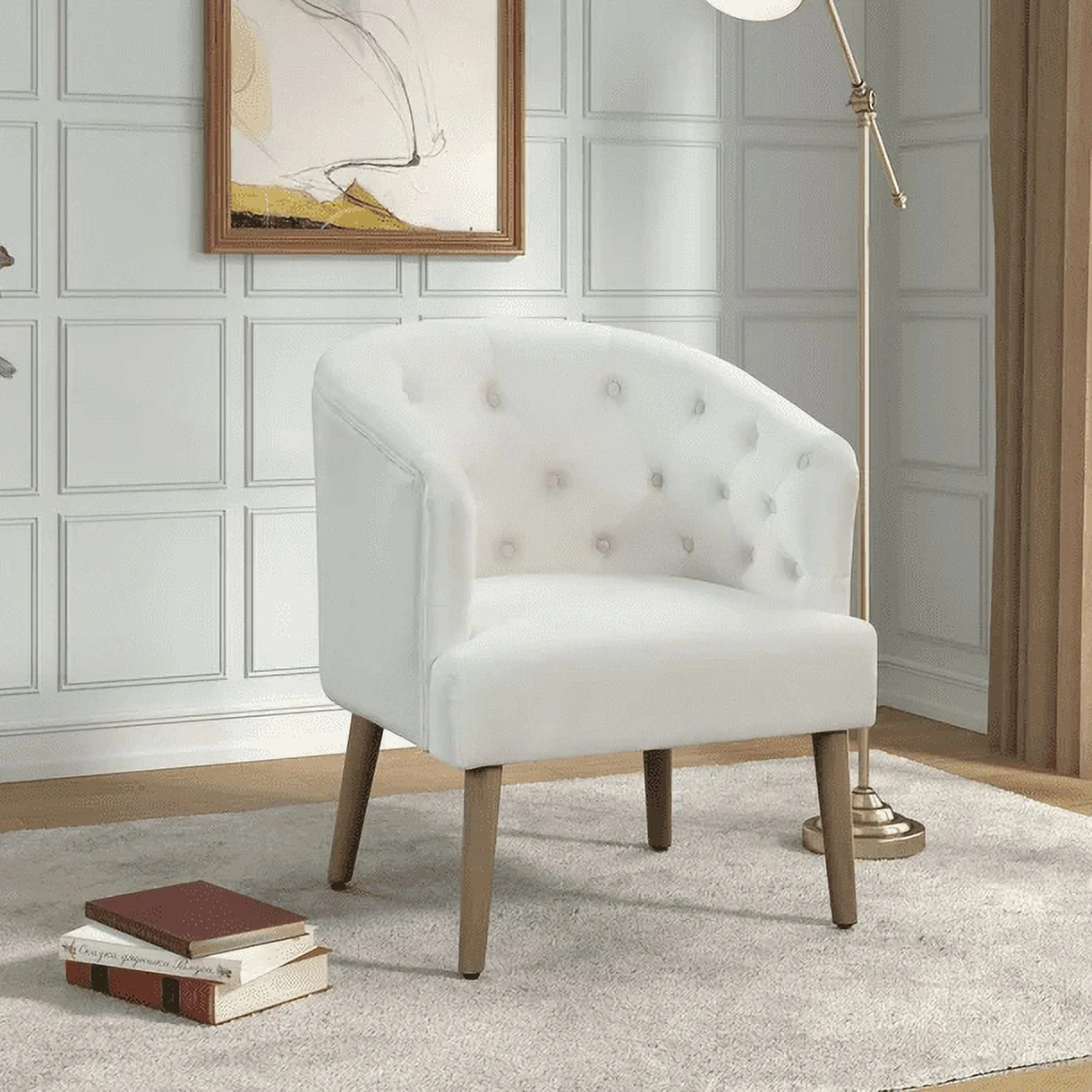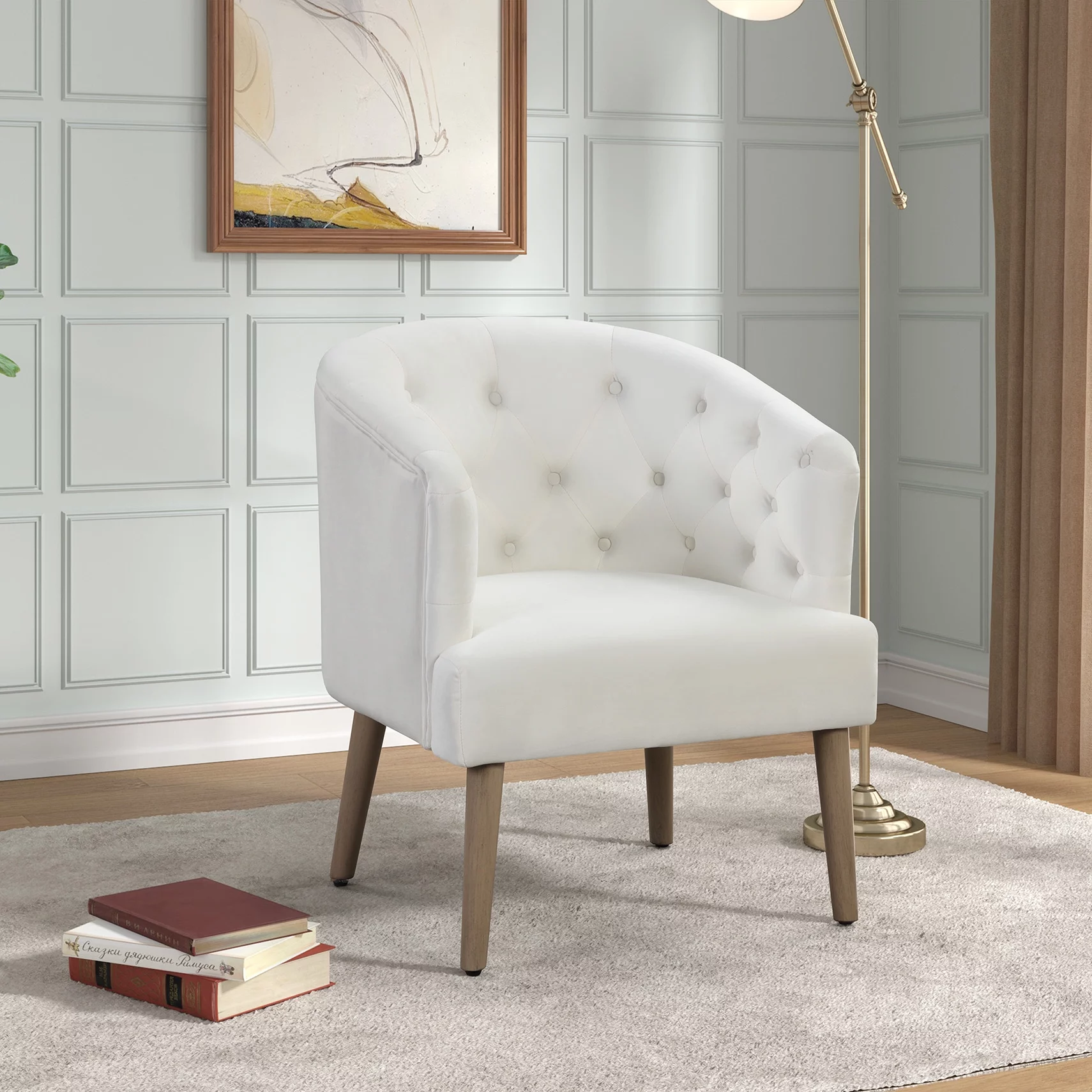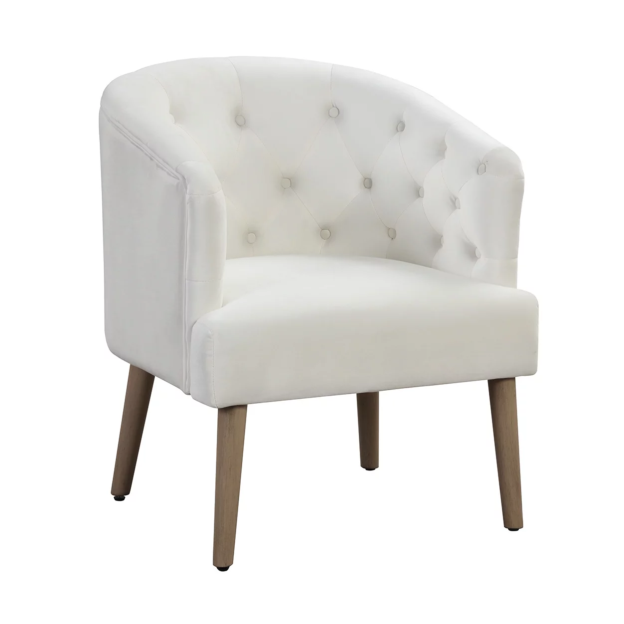 Better Homes & Gardens Barrel Accent Chair, Vanilla Dream Beige, Velvet Upholstery, Adult