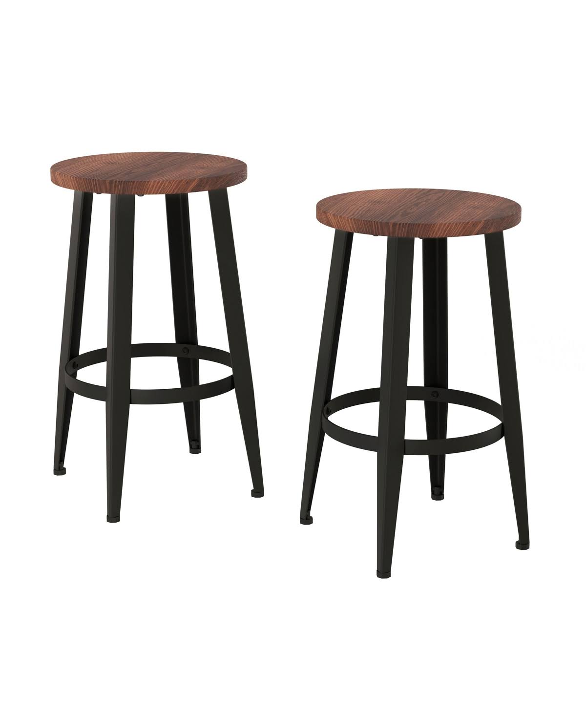Lavish Home 24 in. Vintage Backless Metal Counter Stools with Wooden Seat (Set of 2) - Megean