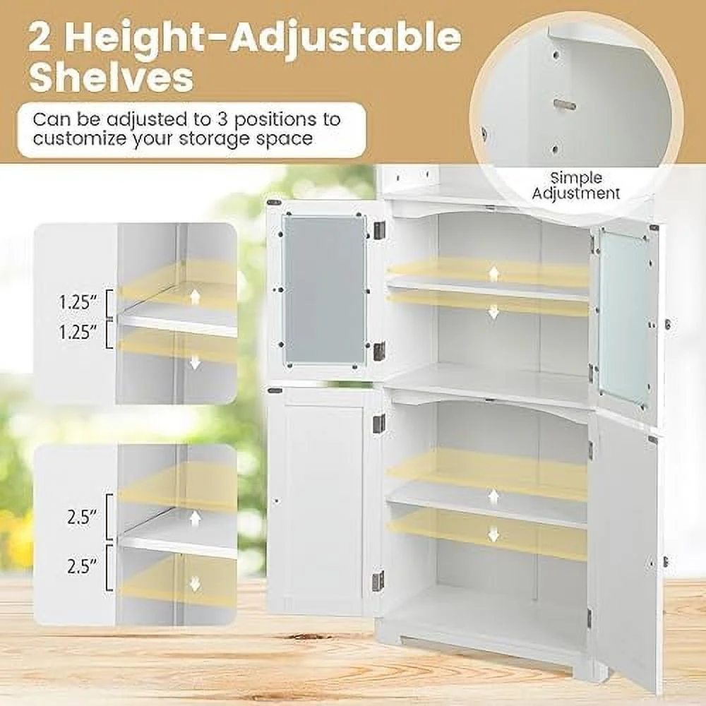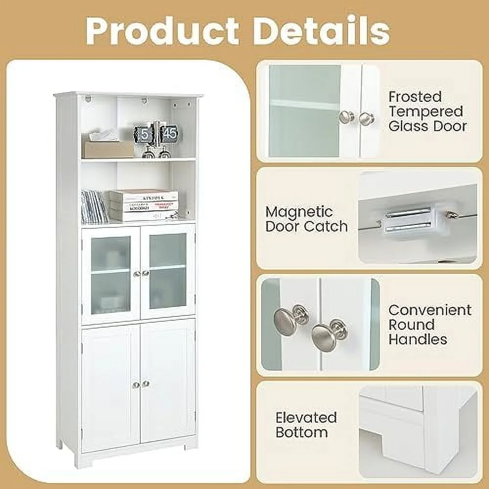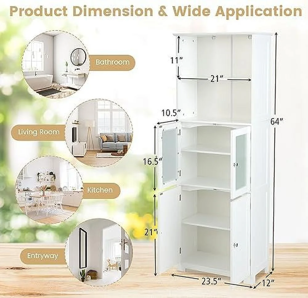 YPDCHB Tall Bathroom Cabinet Freestanding Kitchen Pantry Cabinet with Glass Doors and Adjustable 64\u201D Wooden Linen Floor Cabinet for Bathroom Living Room Kitchen (White) - Curated Treasures Market