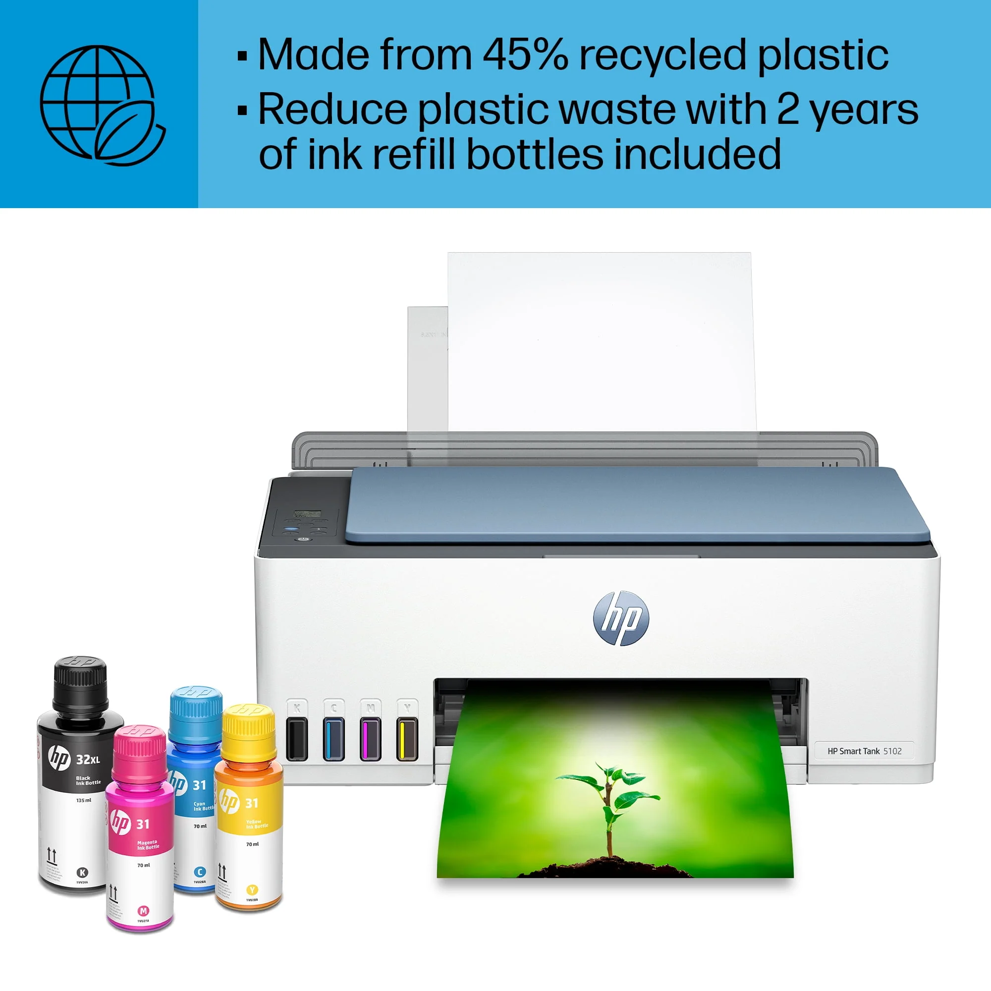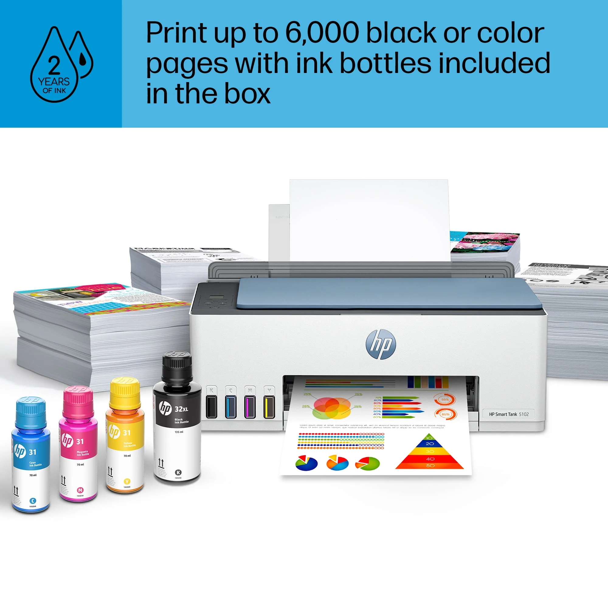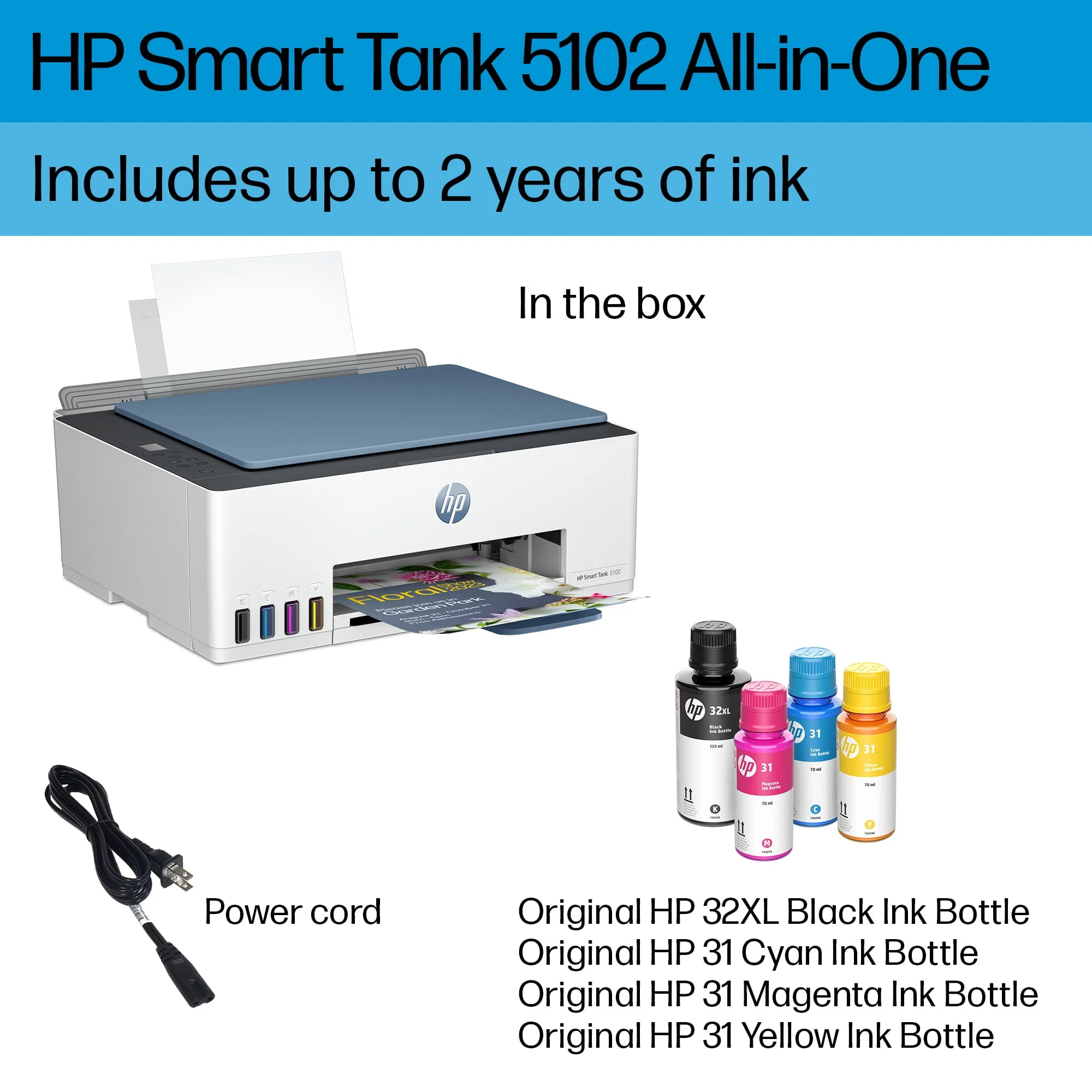 HP Smart Tank 5102 Wireless All-in-One Color Home Inkjet Tank Printer w/up to 2 Yrs of Ink Incl