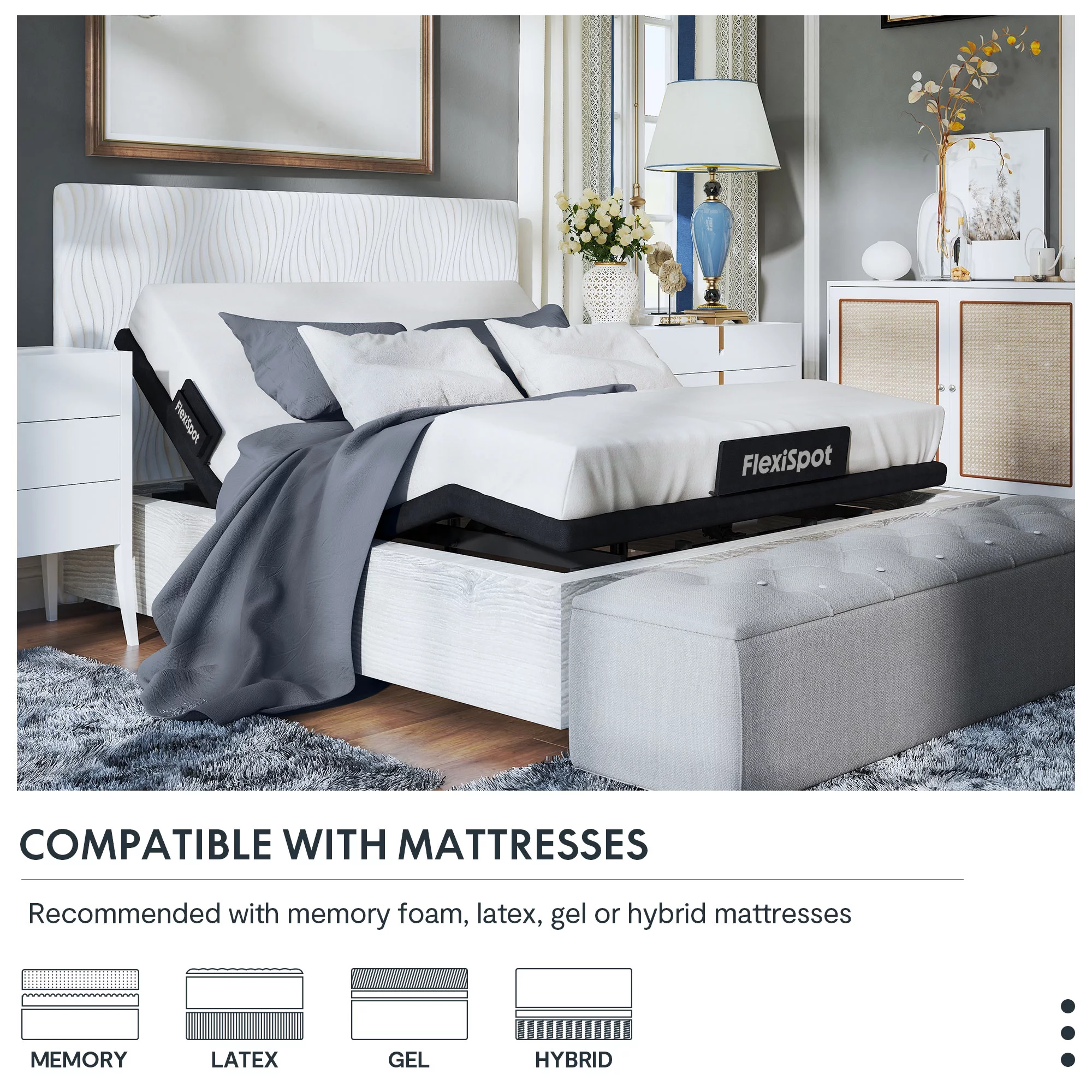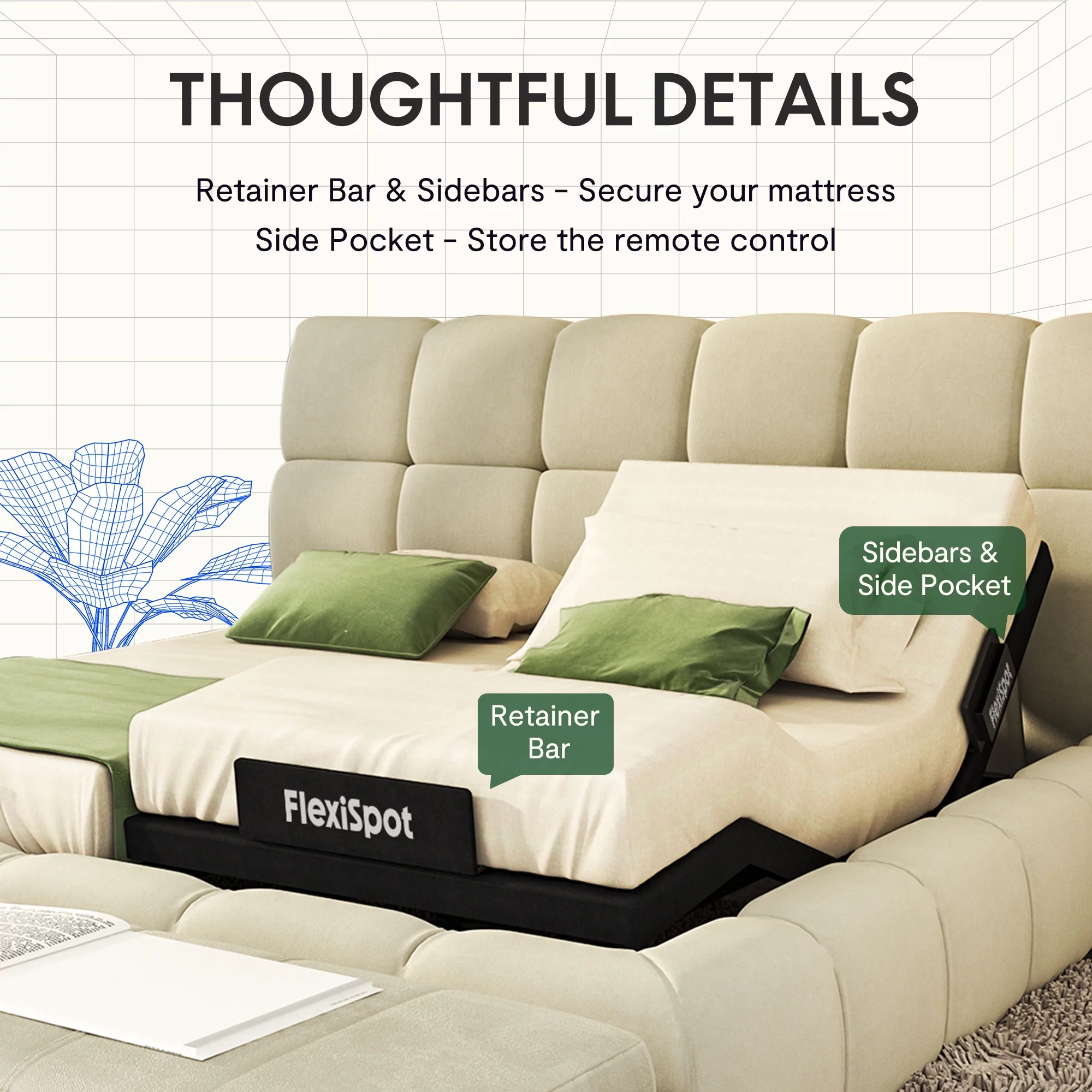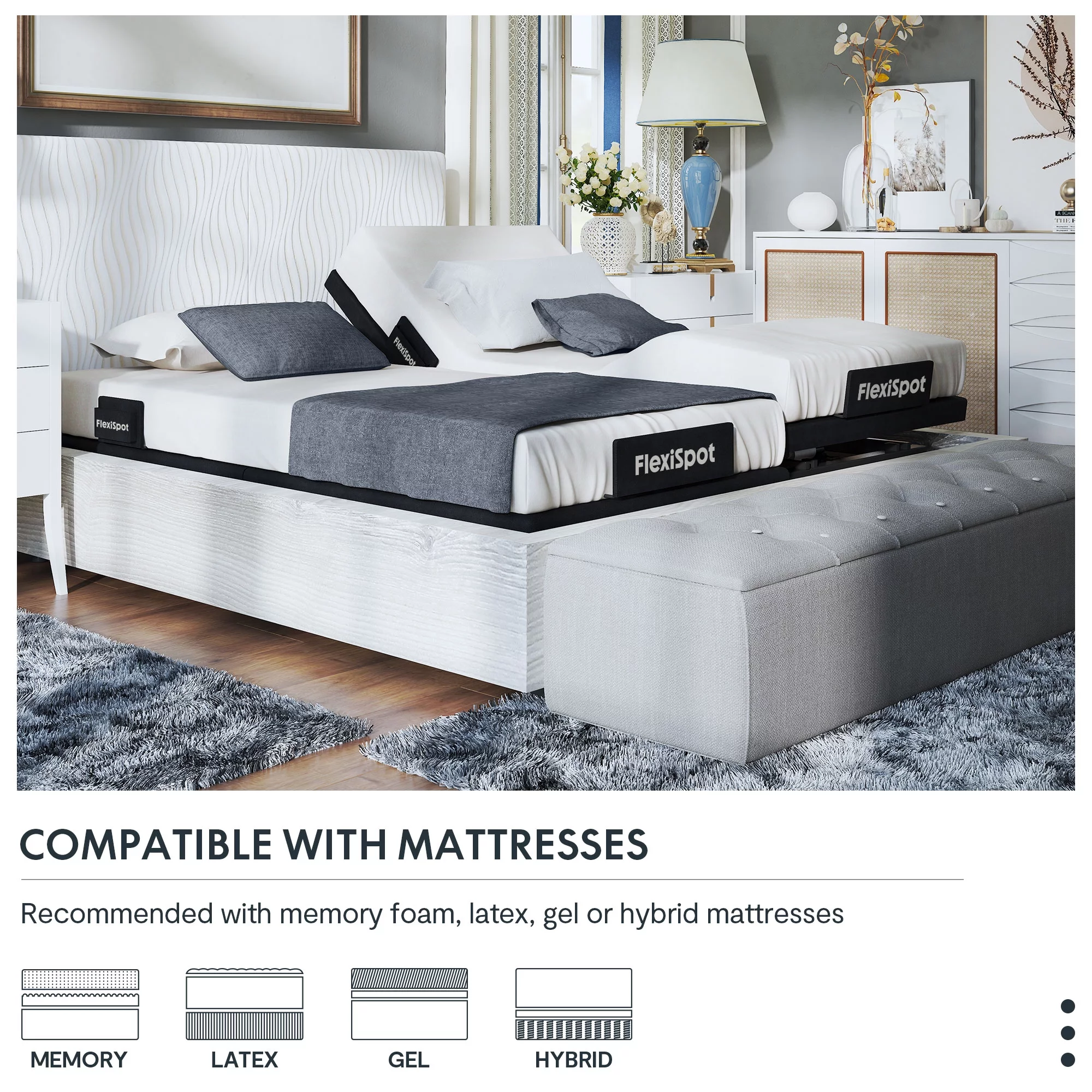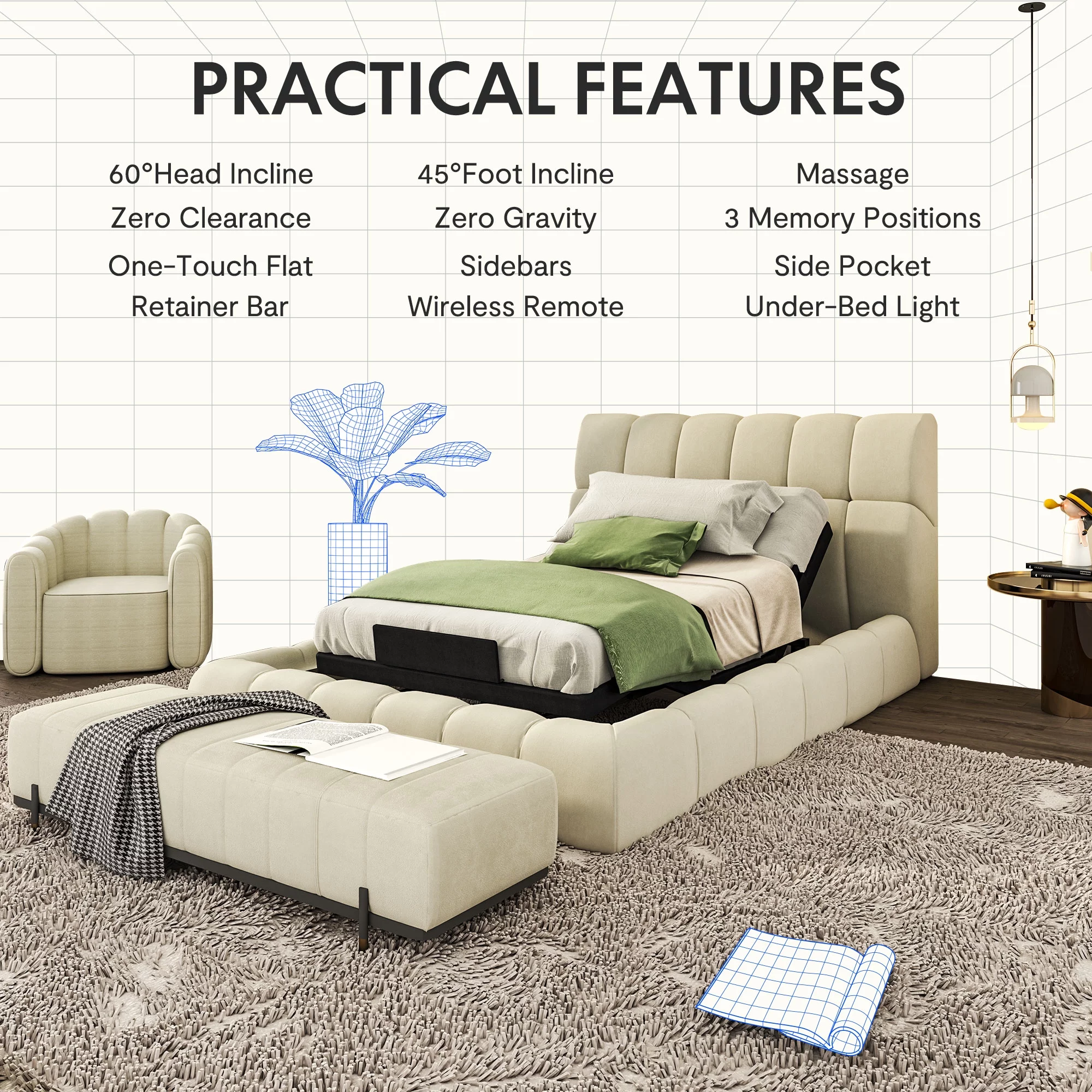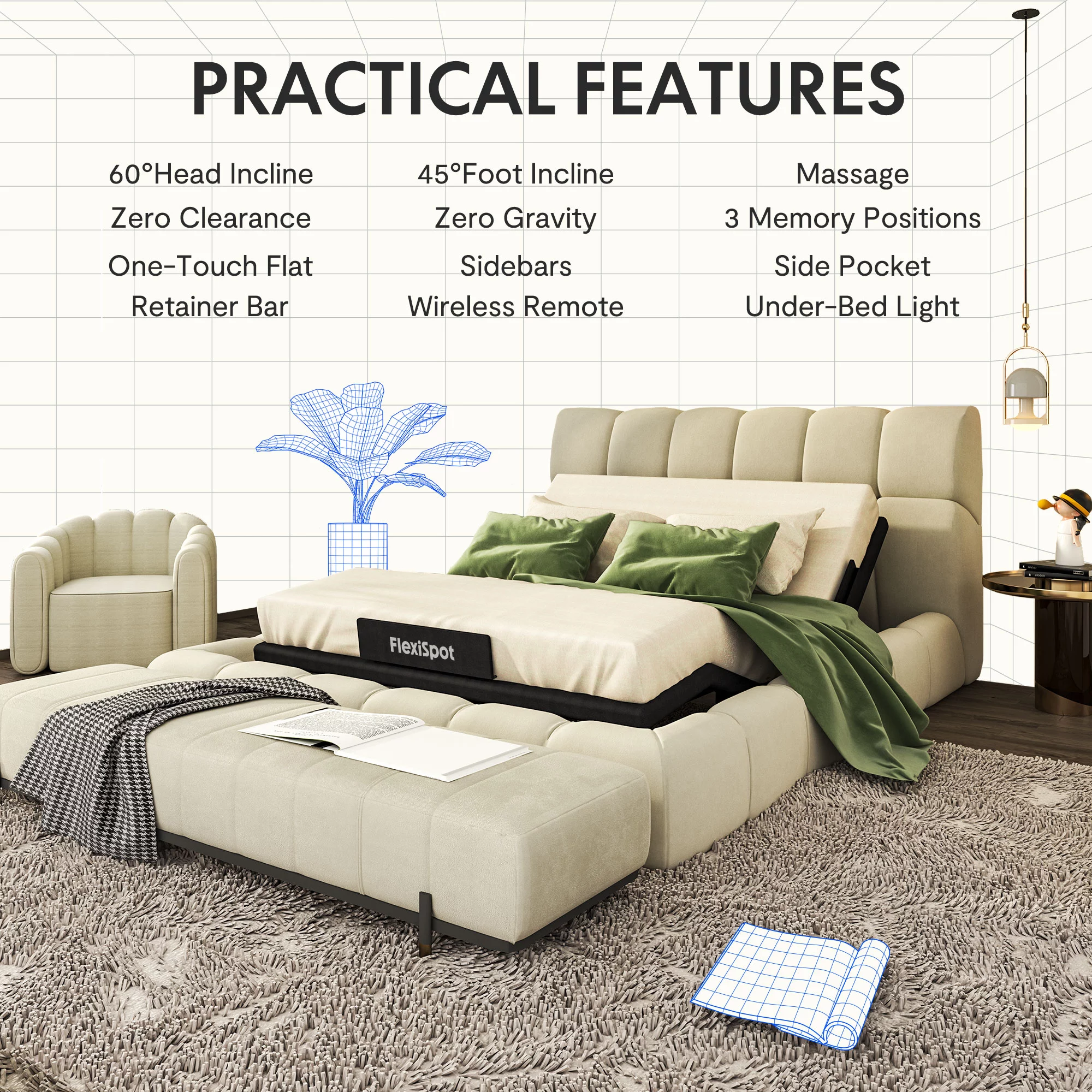 FLEXISPOT Zero Clearance Twin XL Adjustable Bed Frame Base Massage with Wireless Remote, Zero Gravity, Mattress Holder, Anti-Snore