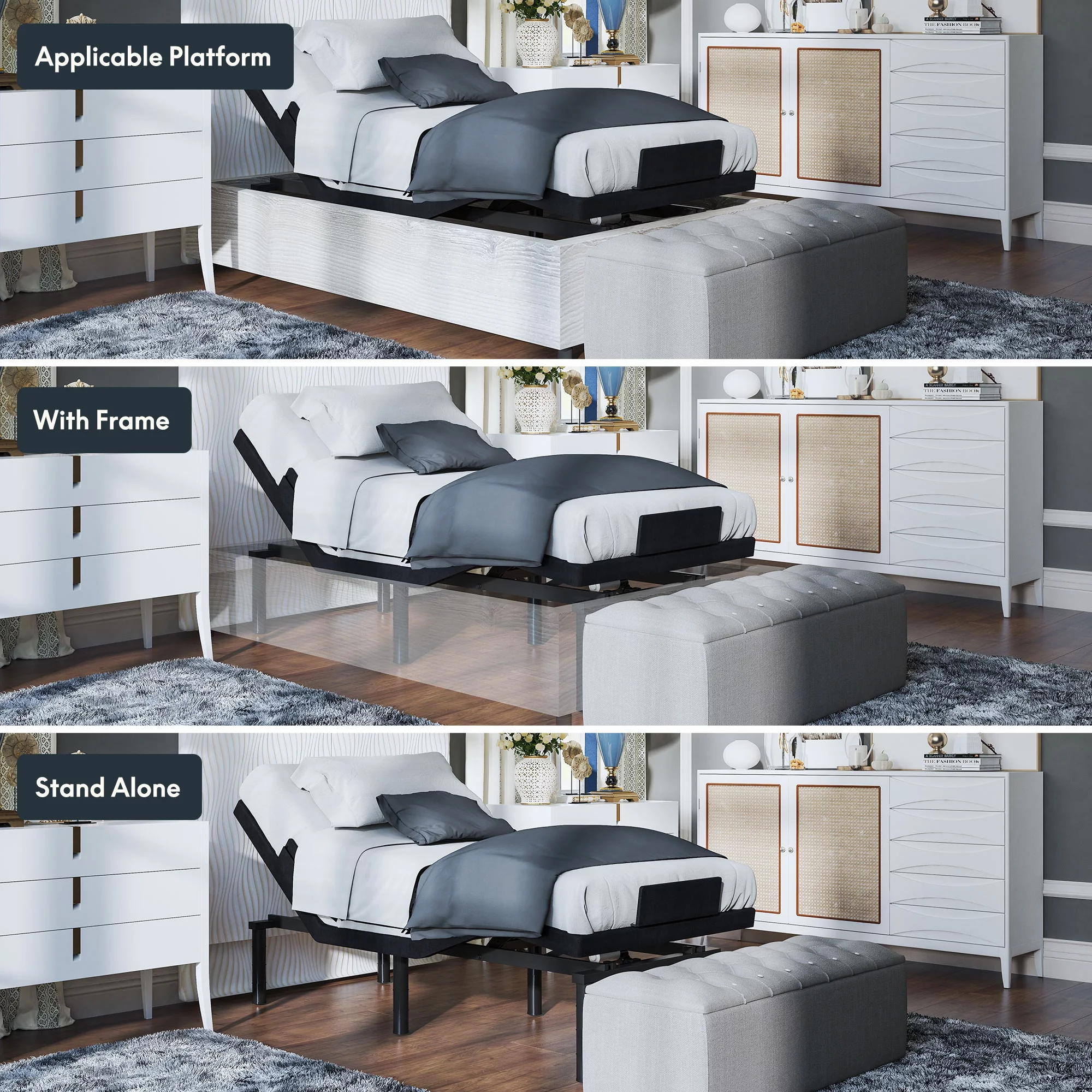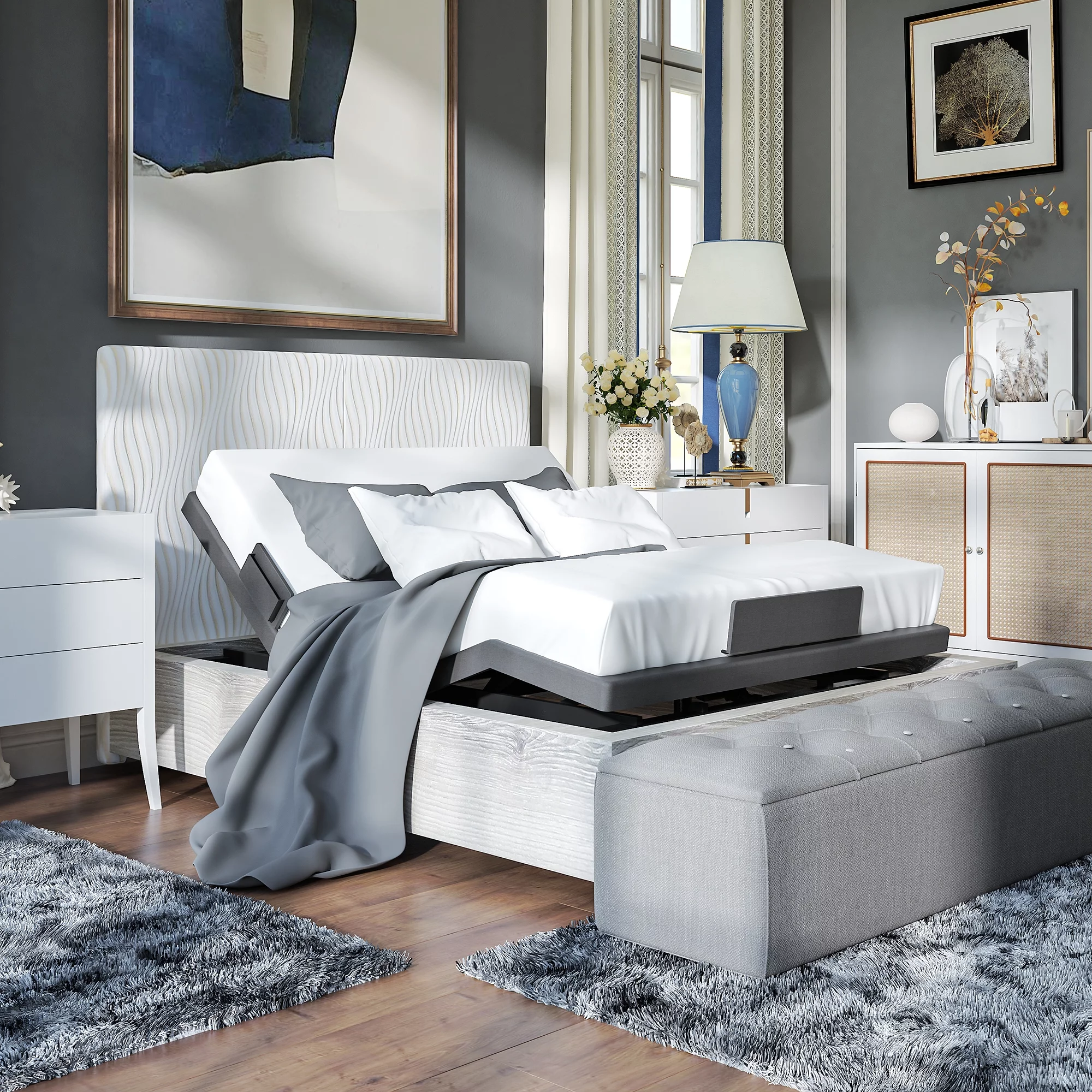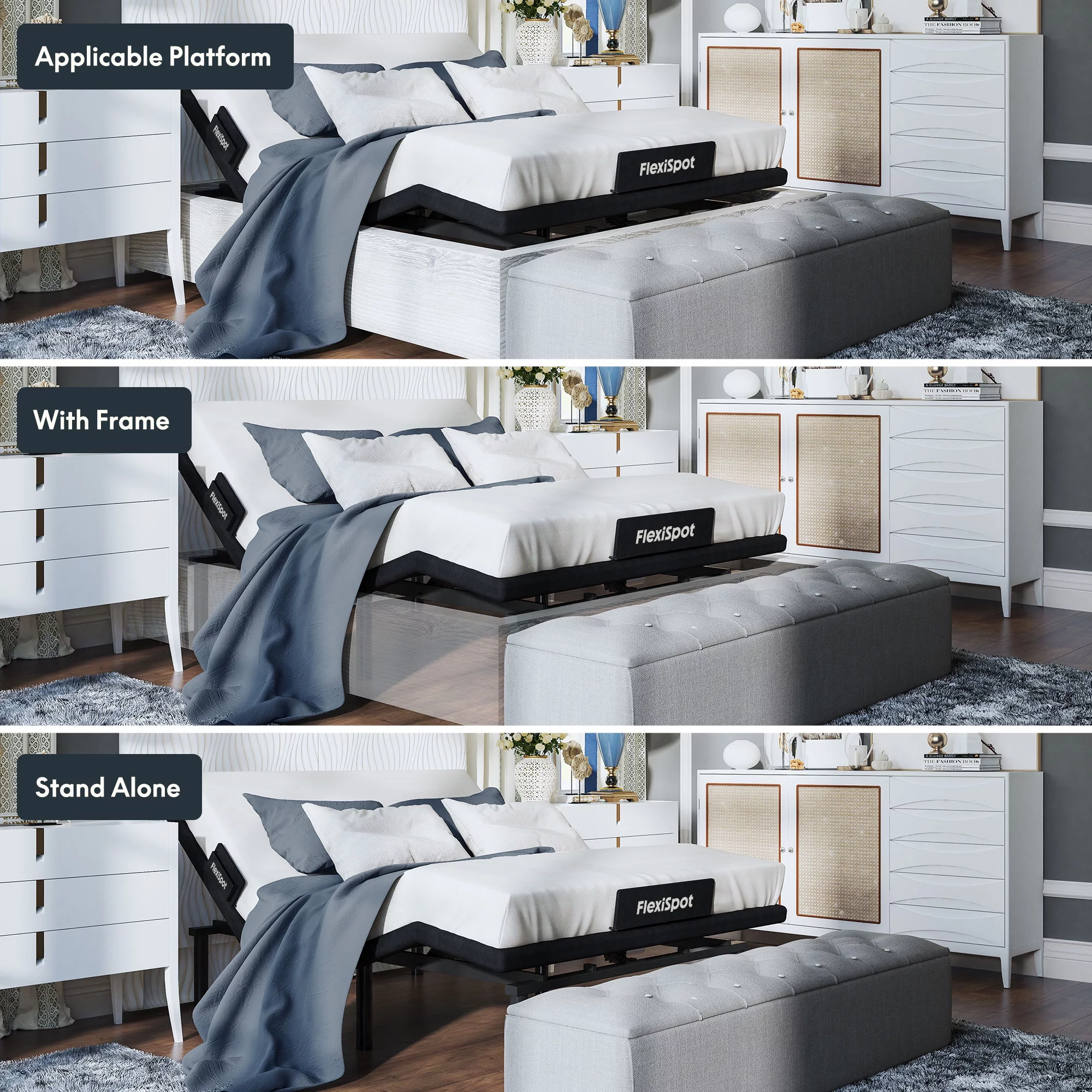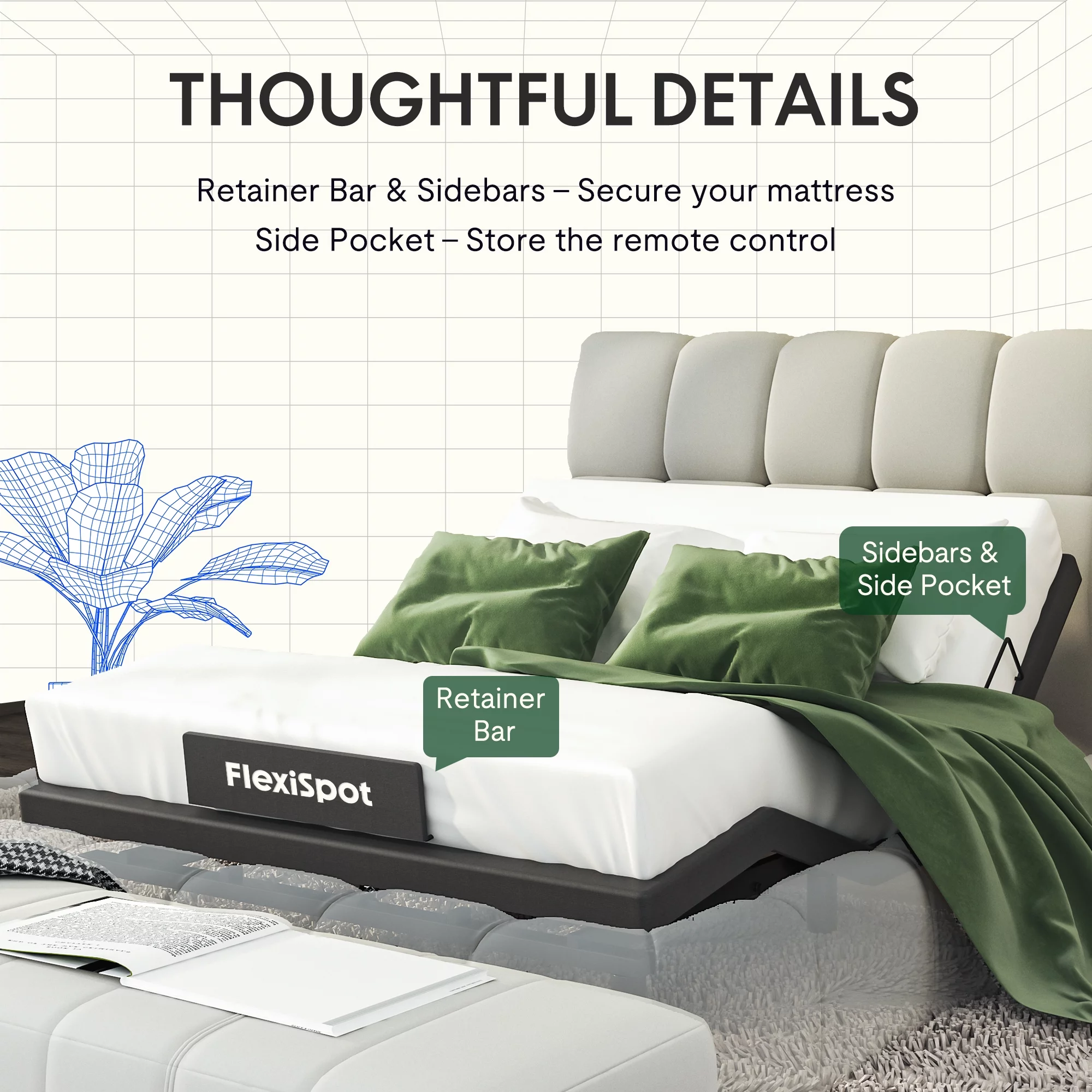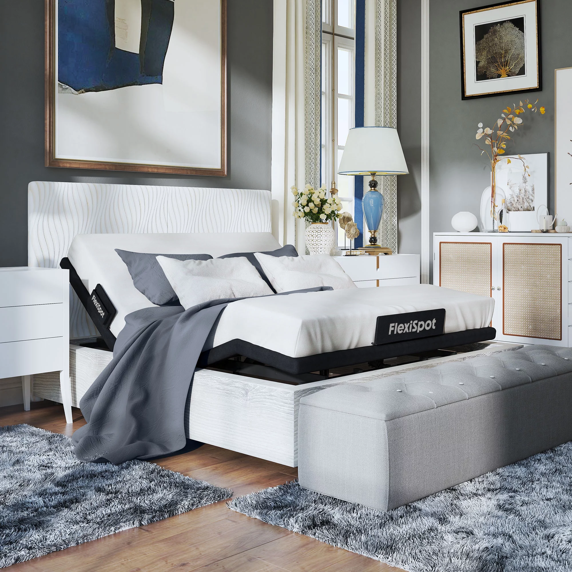 FLEXISPOT Zero Clearance Twin XL Adjustable Bed Frame Base Massage with Wireless Remote, Zero Gravity, Mattress Holder, Anti-Snore