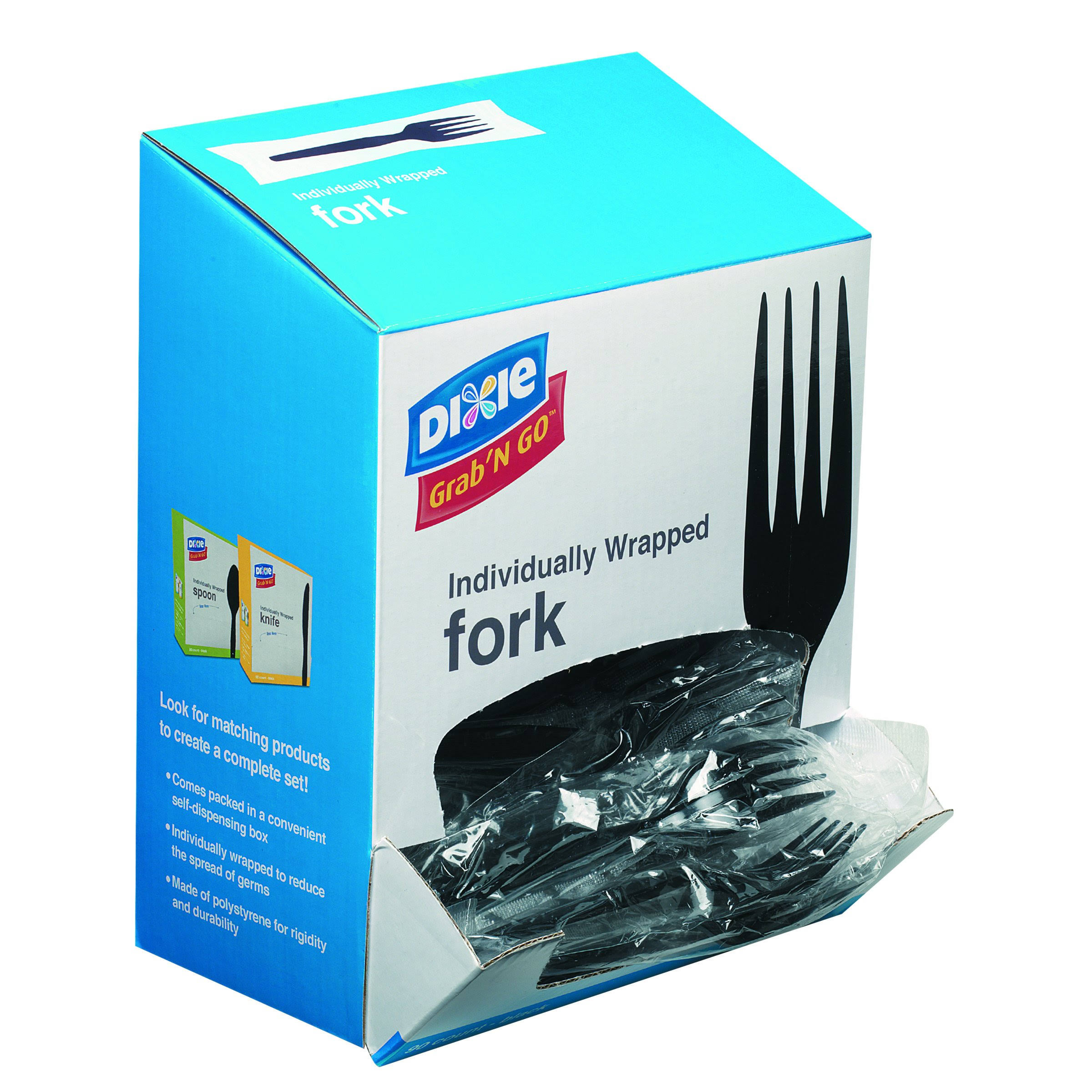 Dixie Grab N Go Wrapped Cutlery, Forks, Black, 90/Box - Megean