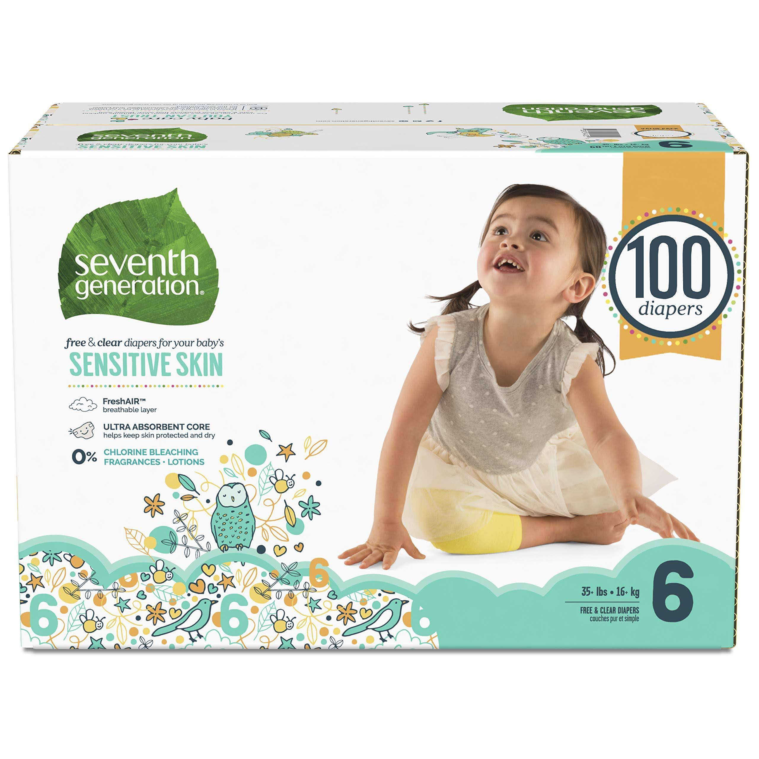 Seventh Generation Baby Diapers, Free & Clear for Sensitive Skin with Animal Prints, Size 6, 100 Count (Packaging May Vary) - Megean