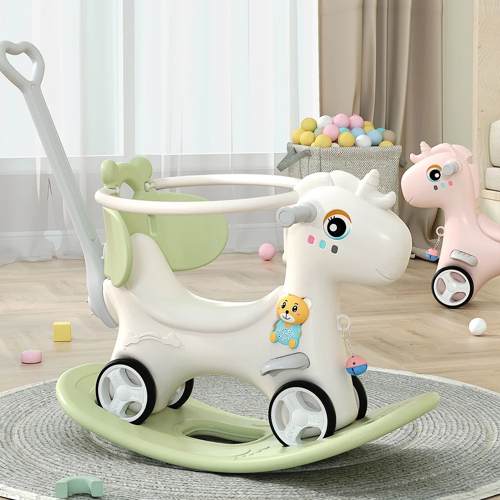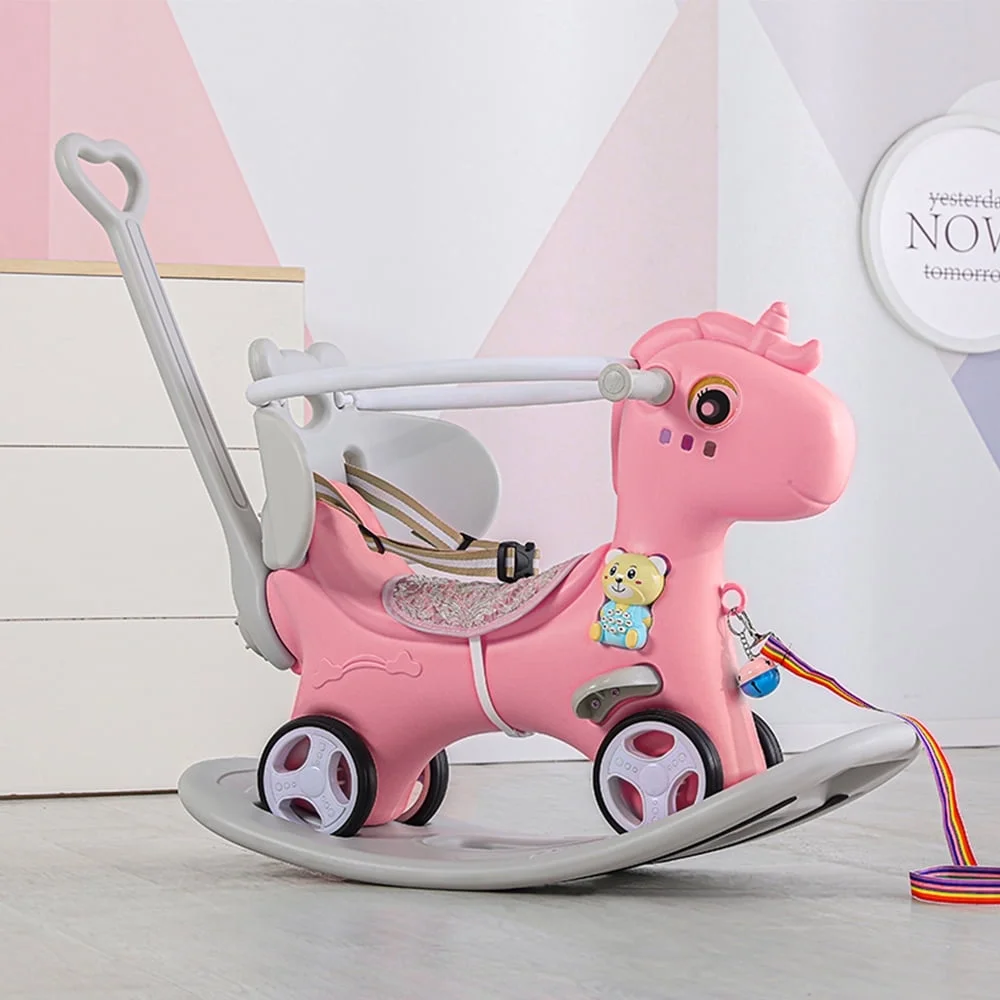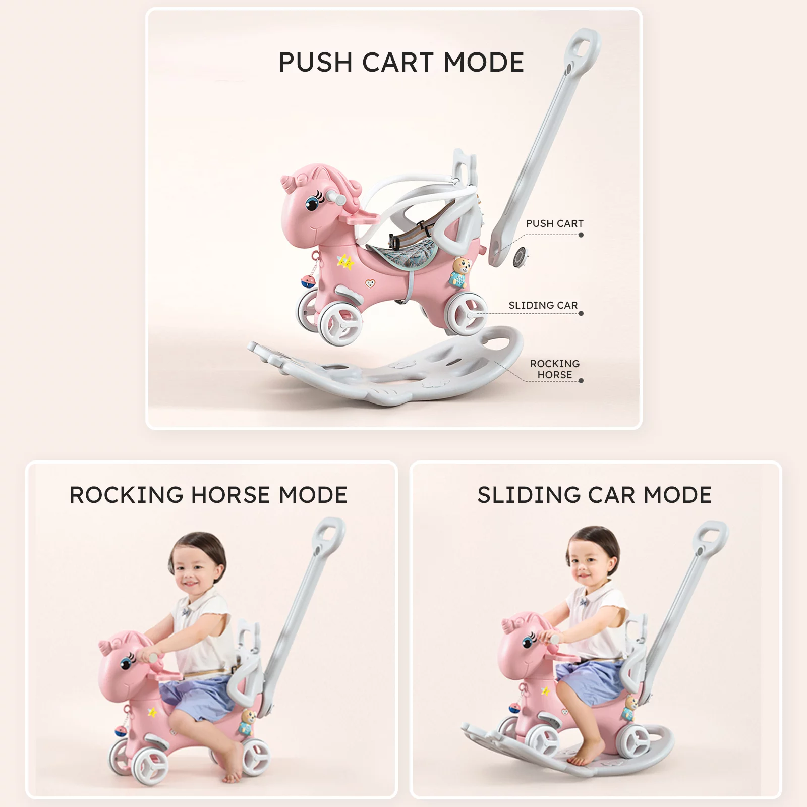 Rocking Horse for Toddlers, Balance Bike Ride On Toys with Push Handle, Backrest and Balance Board for Baby Girl and Boy, Unicorn Kids Pink Color
